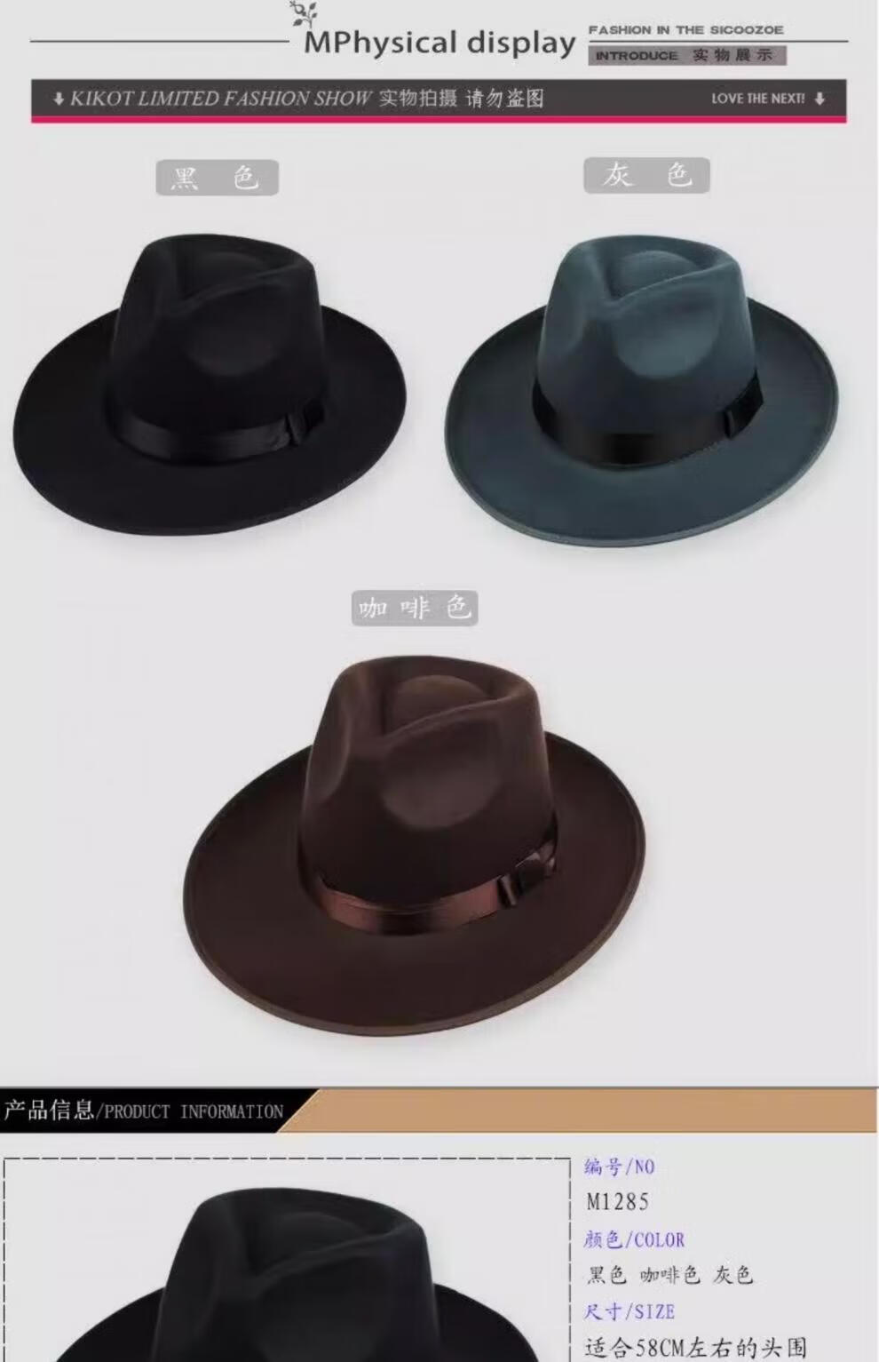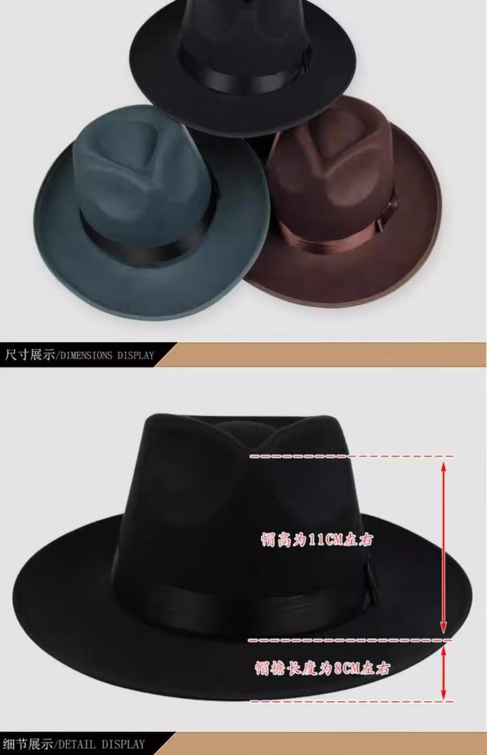 Manlin woolen top hat men's hat Republic of China retro new Shanghai beach Xu Wenqiang Huang Xiaoming's concave style jazz hat trend black