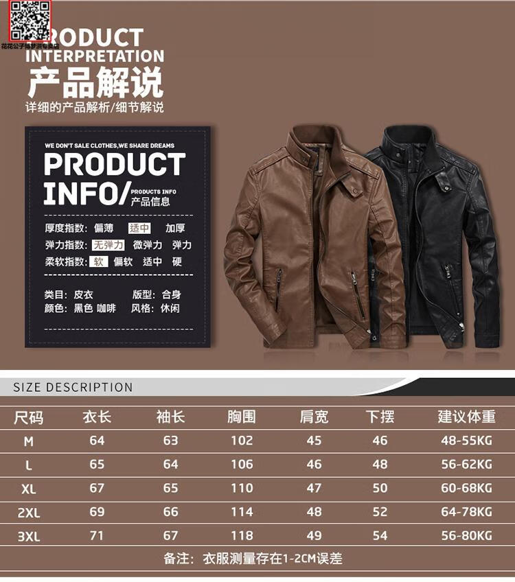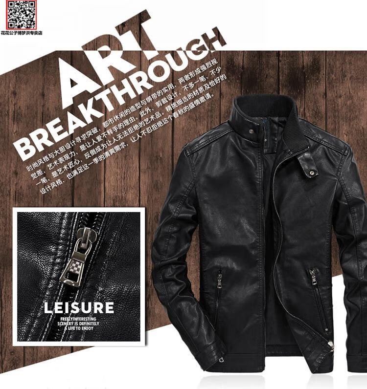 Playboy (PLAYBOY) Leather Jacket Men's Jacket Spring and Autumn Thin PU Leather Jacket Short Stand Collar Leather Jacket Men's Casual Fashion Slim Trend Black Thin XL 125-135Jin Jin is equal to 0.5 kg