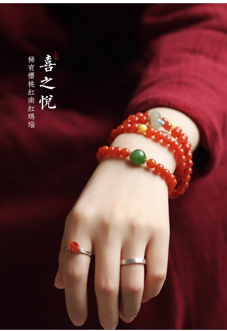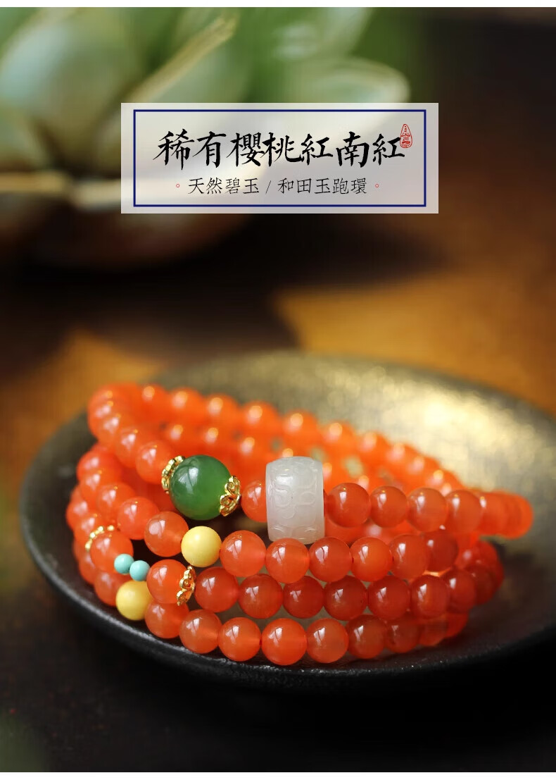 Mai uses natural Liangshan cherry red agate bracelet to design a 108-bead bracelet as a light luxury jewelry gift for girls.
