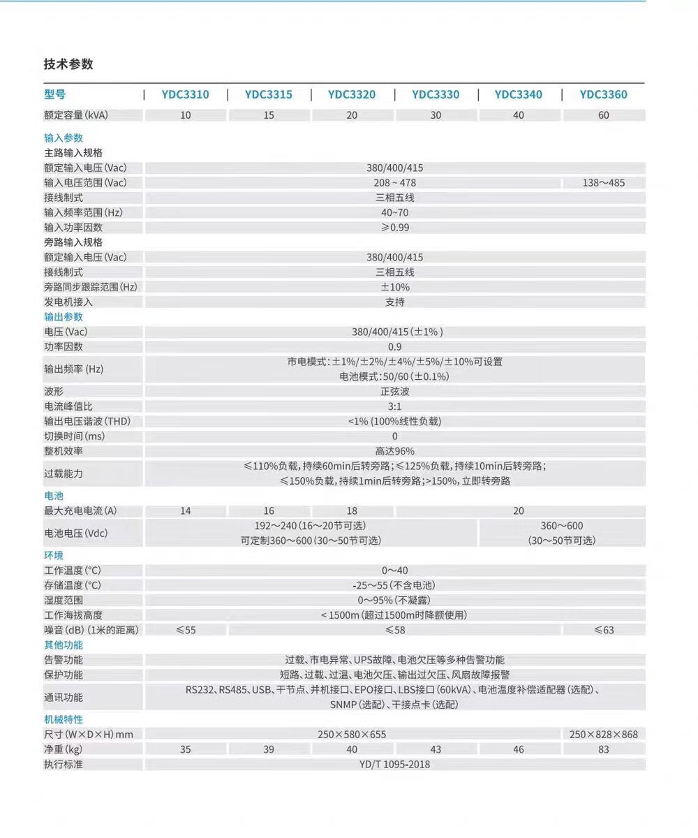 科士达UPS不间断电源YDC3360长效大功率60KVA负载54KW外接蓄电池