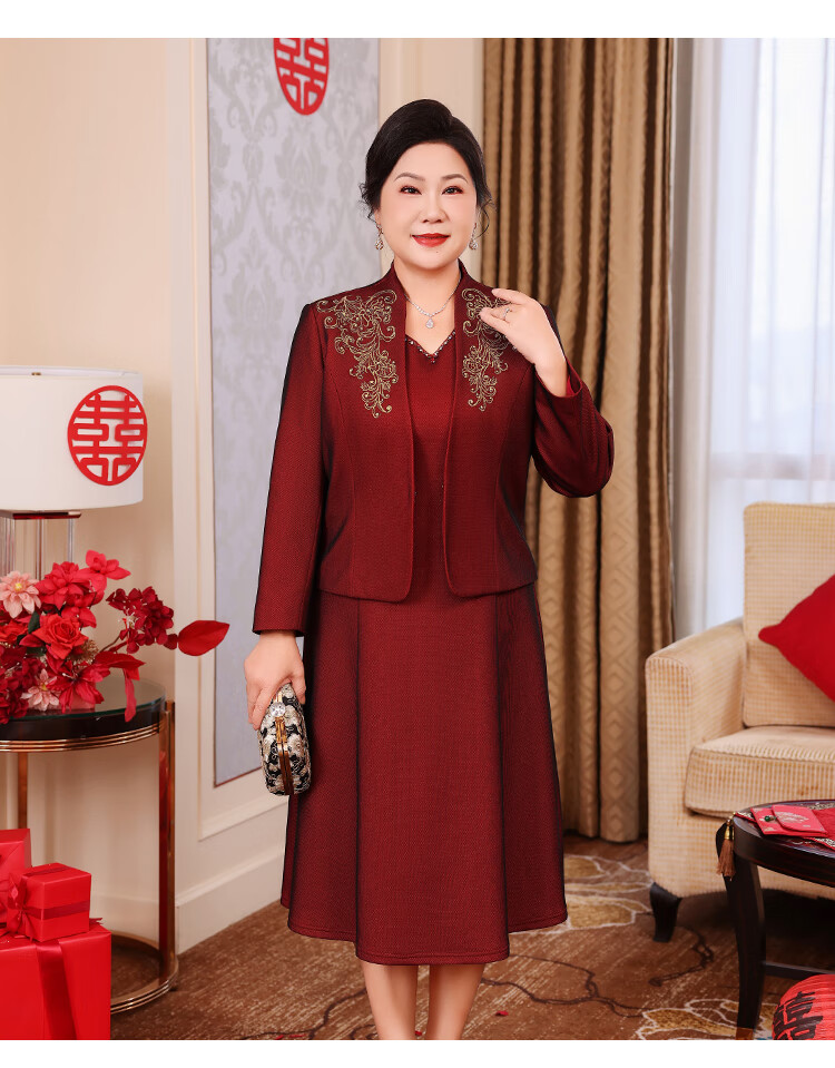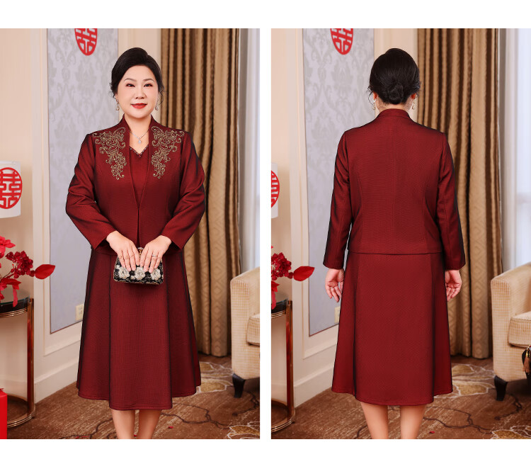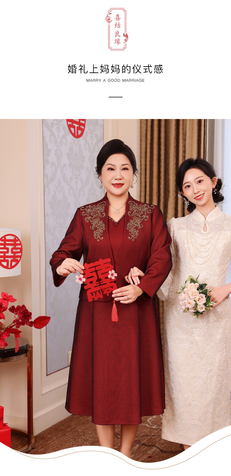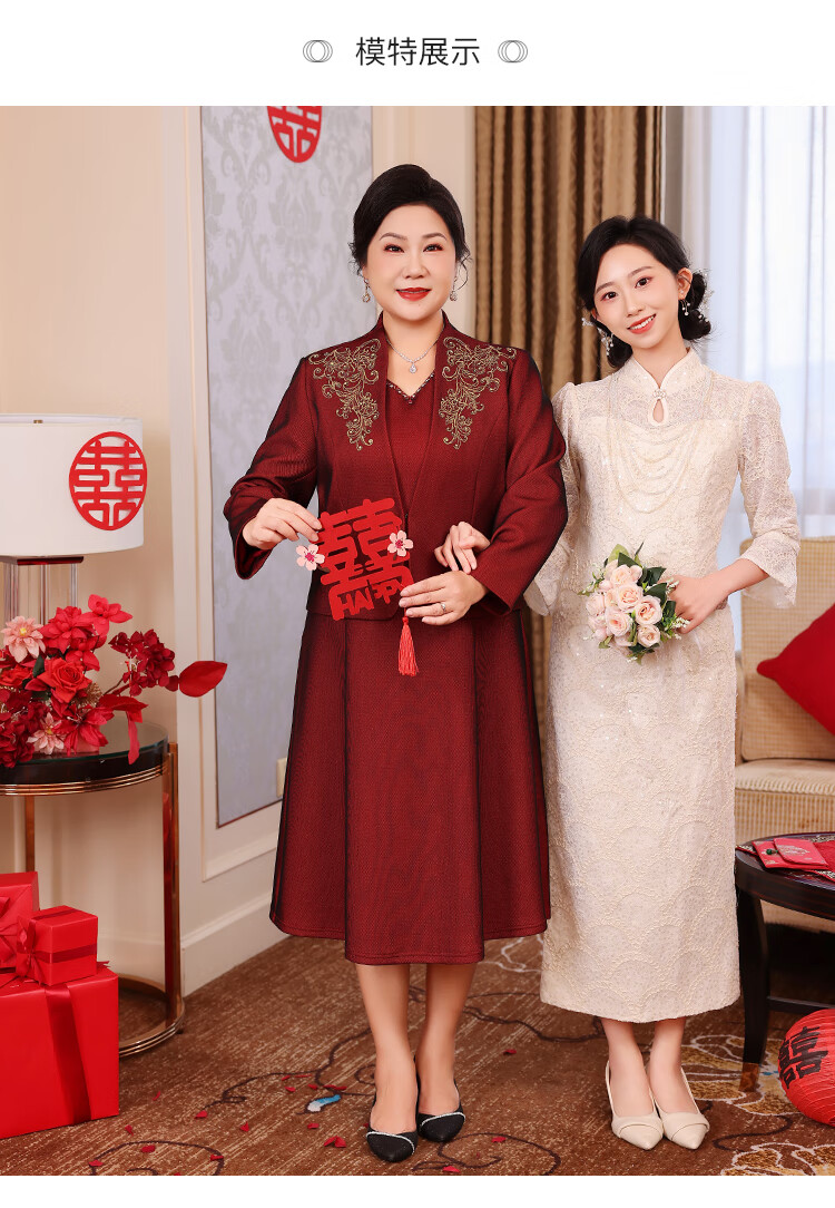 Saiman Die Fat Mom Wedding Banquet Outfit Extra Large Size Noble Dress Female Xi Mother-in-Law Western Style Wedding Banquet Dress Set High-end Two-piece Set Maroon Jacket + Vest Skirt 3XL