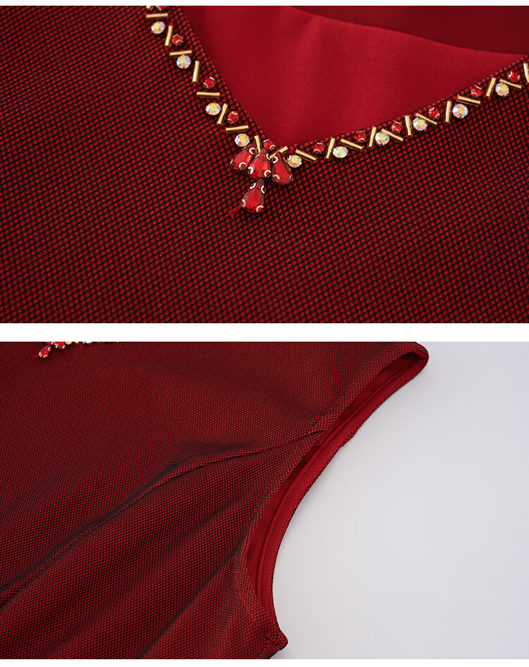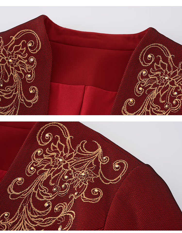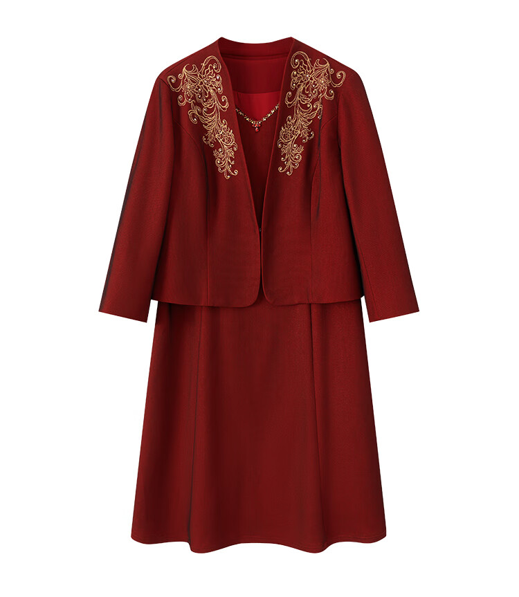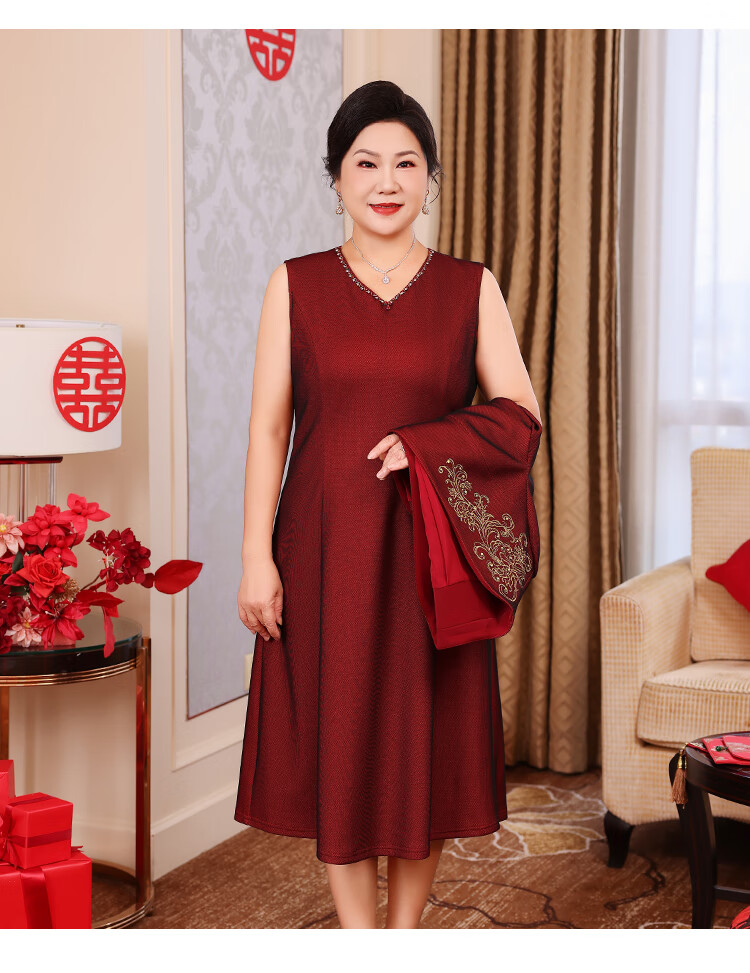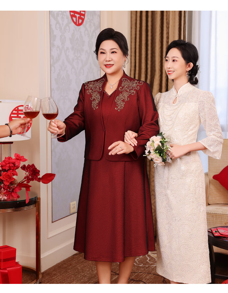 Saiman Die Fat Mom Wedding Banquet Outfit Extra Large Size Noble Dress Female Xi Mother-in-Law Western Style Wedding Banquet Dress Set High-end Two-piece Set Maroon Jacket + Vest Skirt 3XL