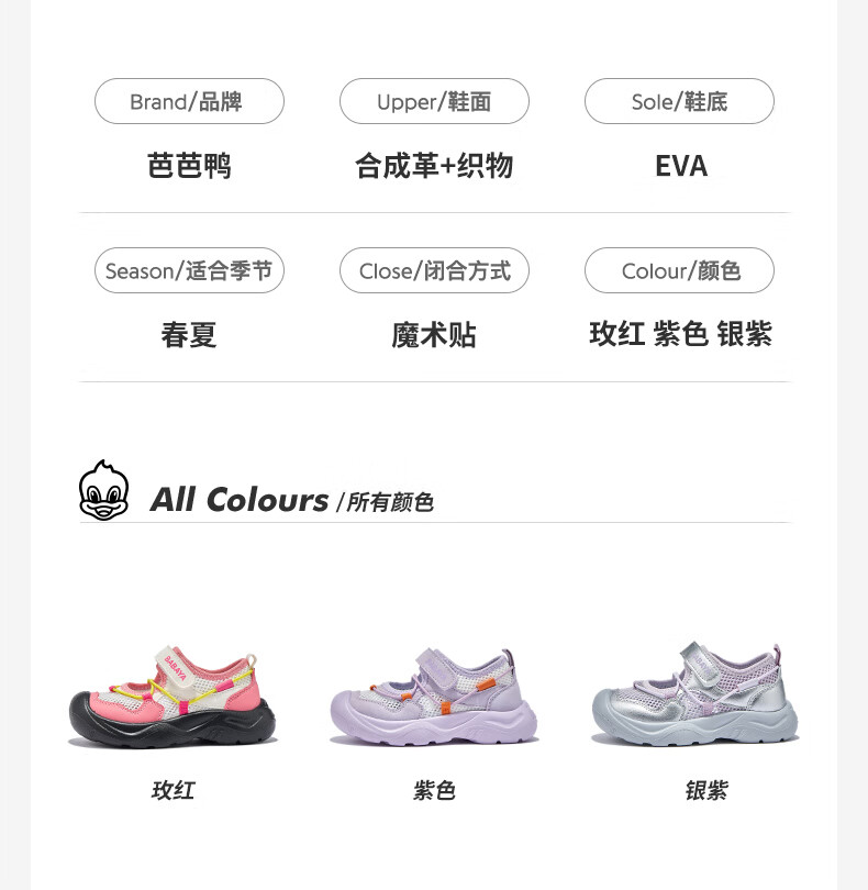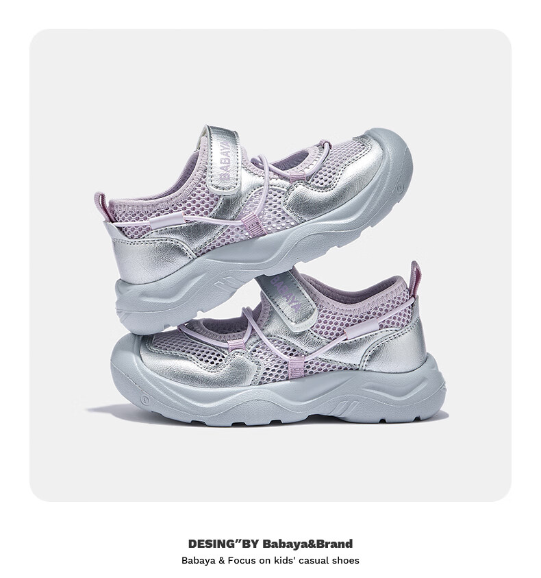 Baba Duck Children's Sandals 2026 New Girls and Children's Shoes Versatile Beach Shoes Summer Boys Sports and Leisure River Walking Silver Purple 28 Suitable for Feet Length 17.7cm