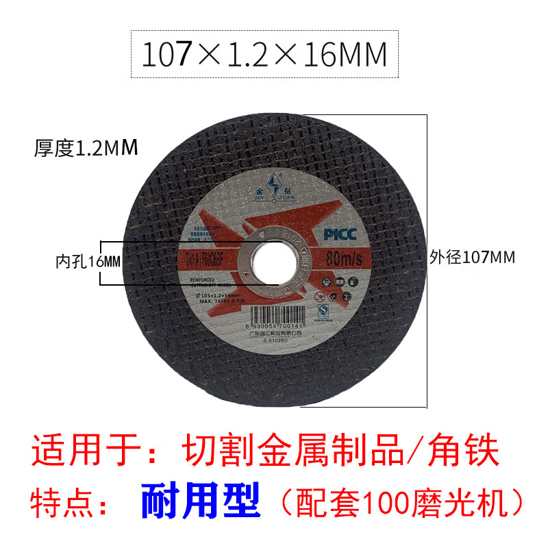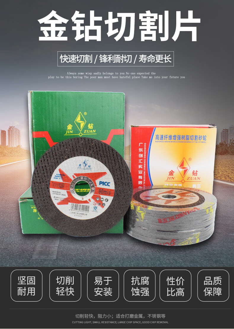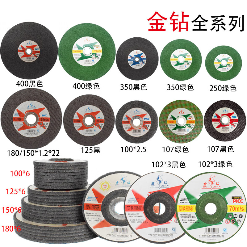 FHJQB cutting disc 100 grinding wheel disc hand grinder grinding wheel angle grinder polishing disc metal slice small cutting disc Golden Diamond 107 black double mesh 1 box (800 pieces)