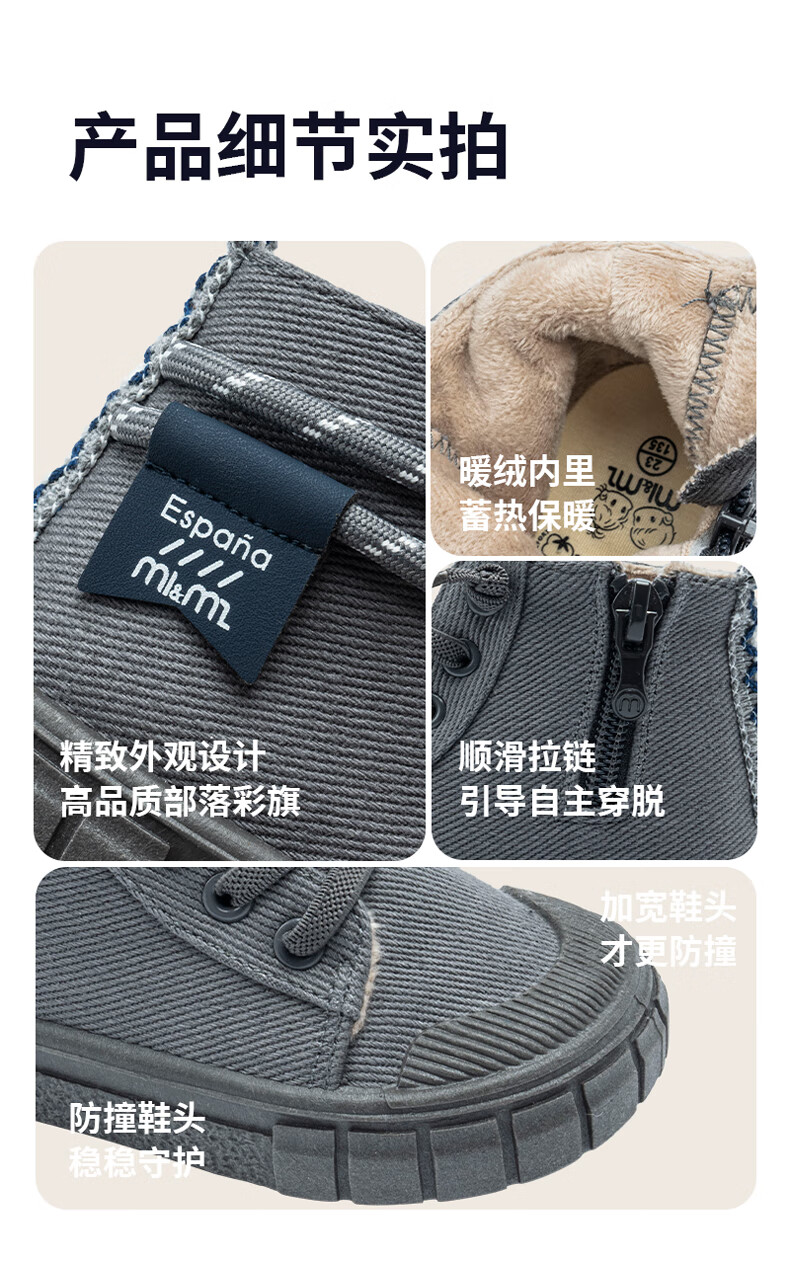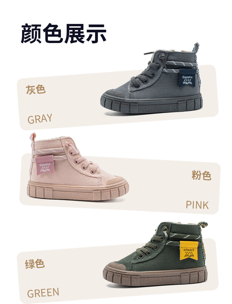M1&M2 Spanish children's shoes, children's canvas shoes, boys' autumn and winter velvet soft-soled cotton shoes, girls' warm functional casual shoes, pink size 27, suitable for feet 15.5~16cm long