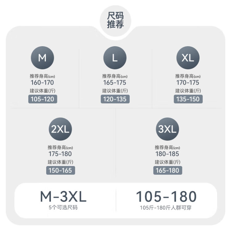 China (cm) 165 / 88-90 170 / 96-98 175 / 108-110 180 / 118-122 185 / 126-130