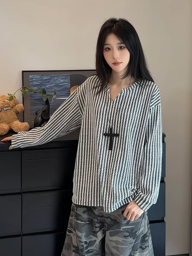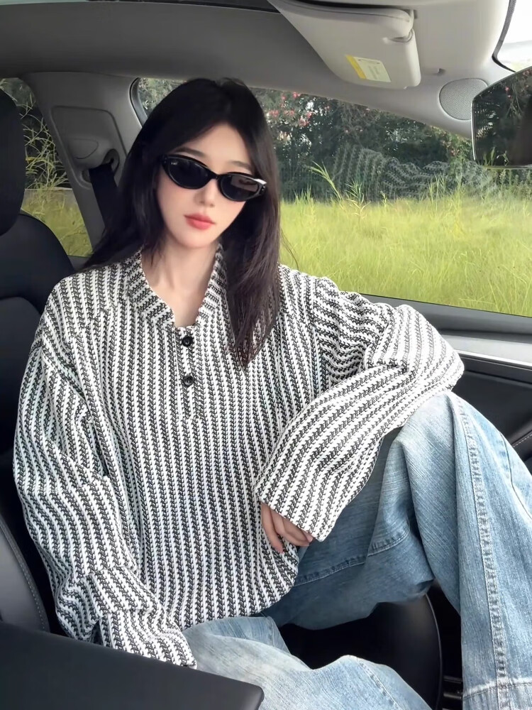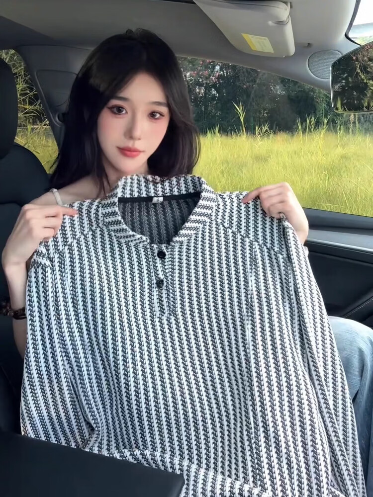 Yiran presents herringbone pattern American Henry collar sweatshirt for men in autumn, heavyweight houndstooth long-sleeved T-shirt with bottoming shirt for men, gray 3XL, recommended 165-180Jin Jin is equal to 0.5 kg