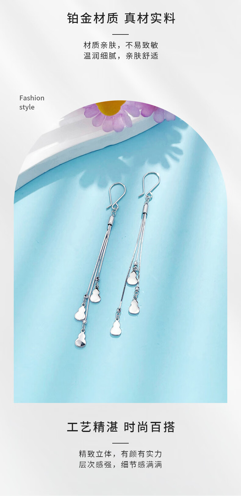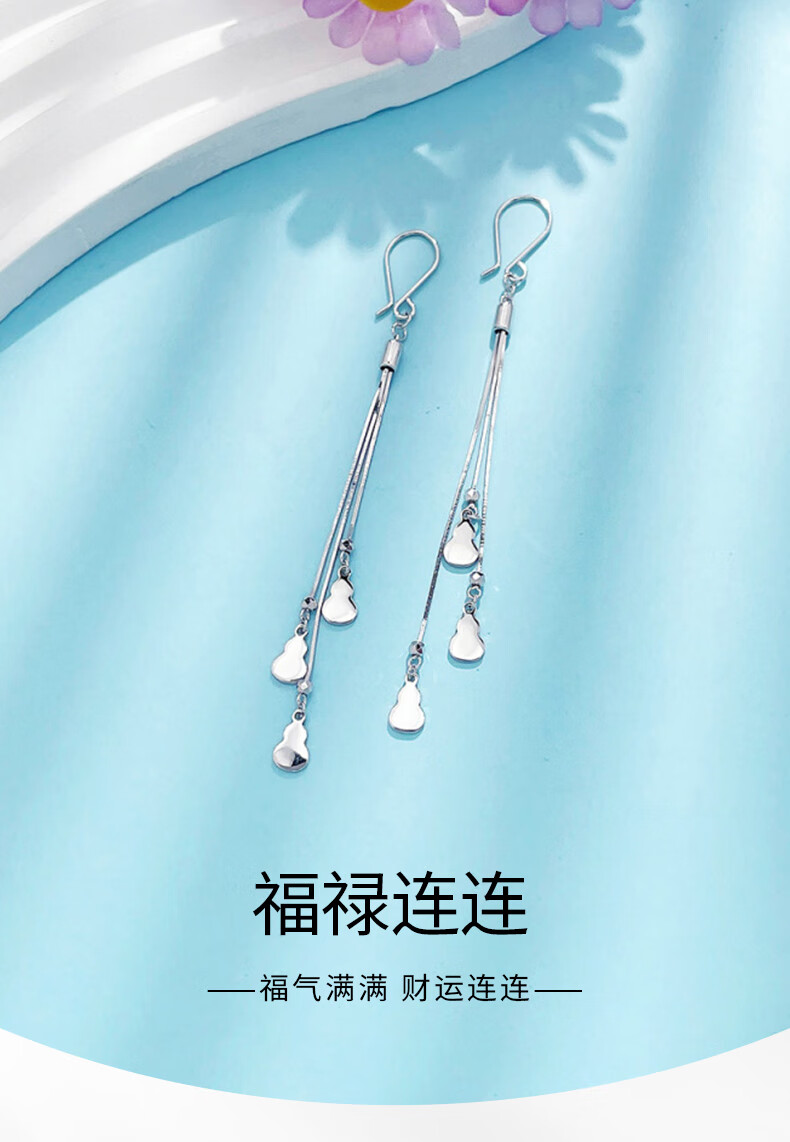 Laofu gold platinum earrings tassel lucky gourd earrings as gifts for girlfriends as gifts, about 4.40g
