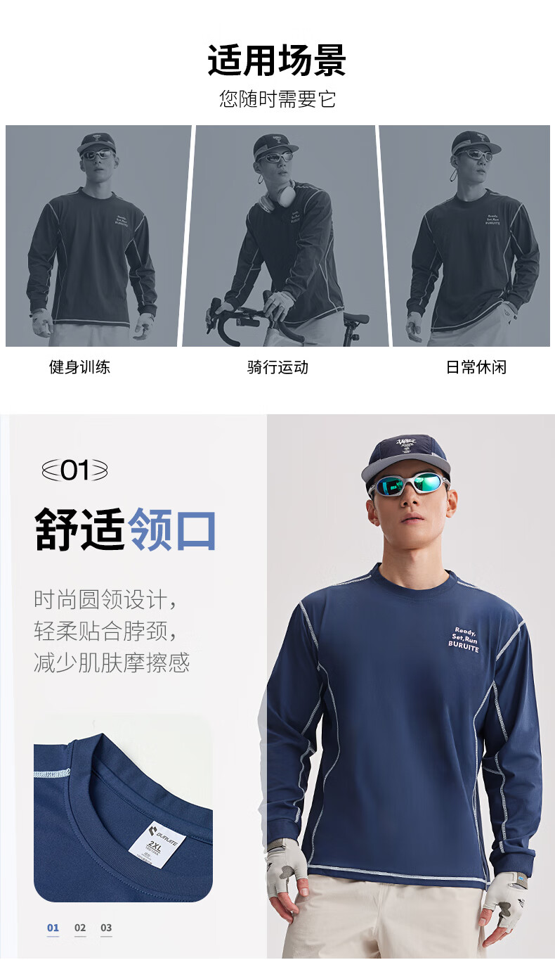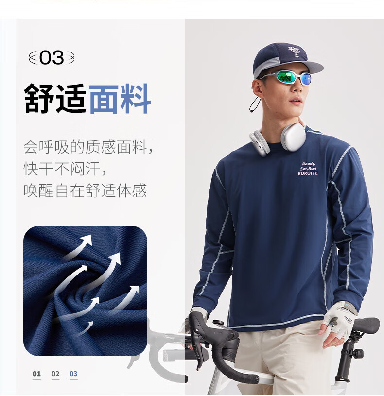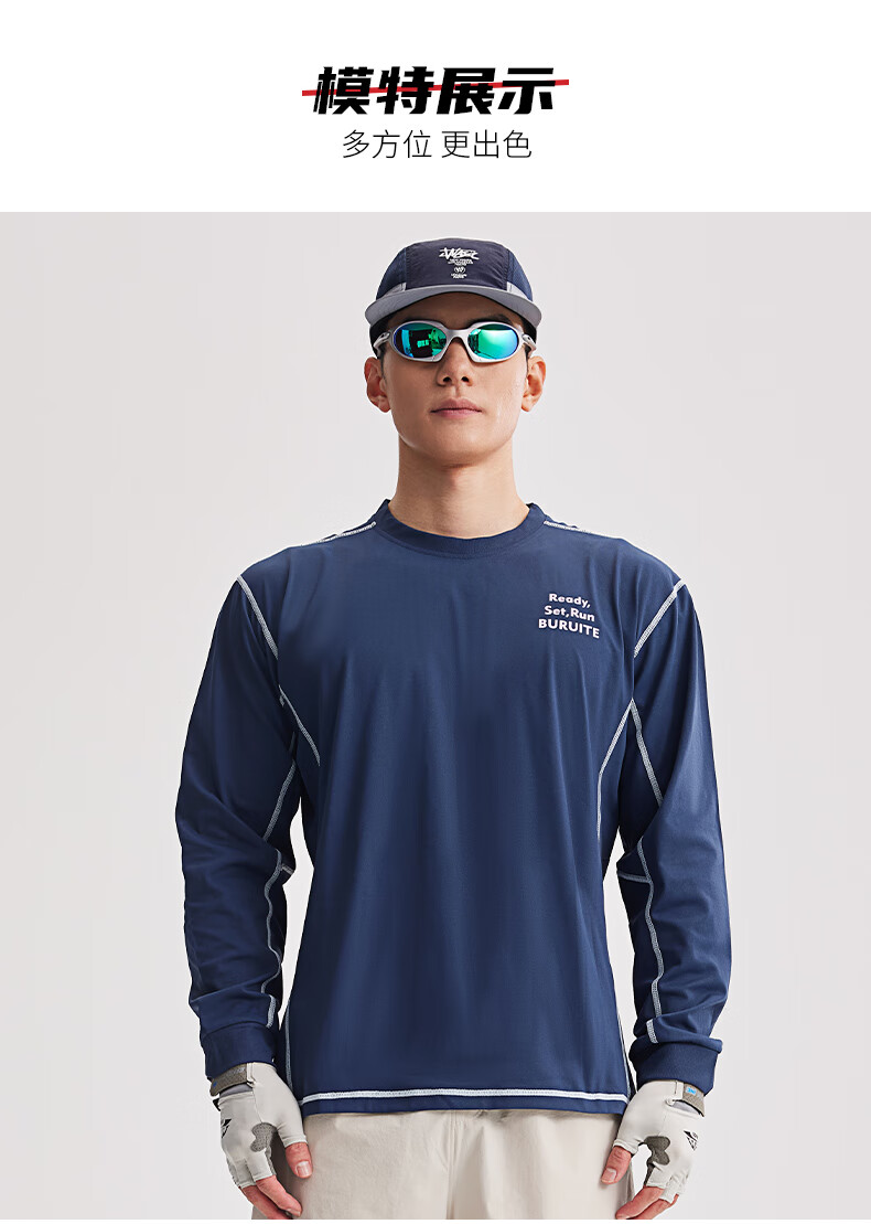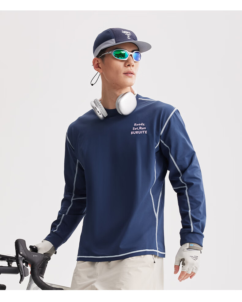 BURUITE cycling clothing men's spring and autumn 2025 new long-sleeved T-shirt running sportswear quick-drying cycling clothing jacket navy blue M recommended weight 100-120Jin Jin equals 0.5 kg