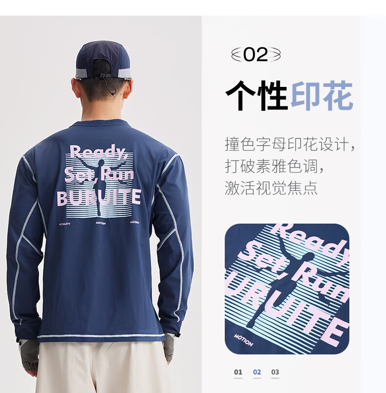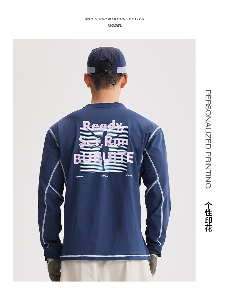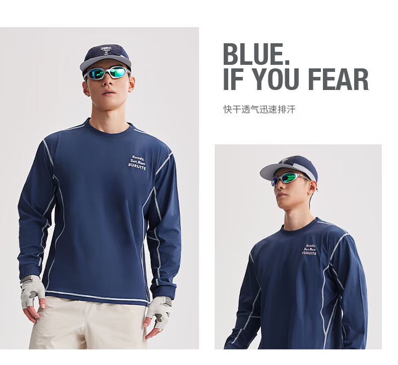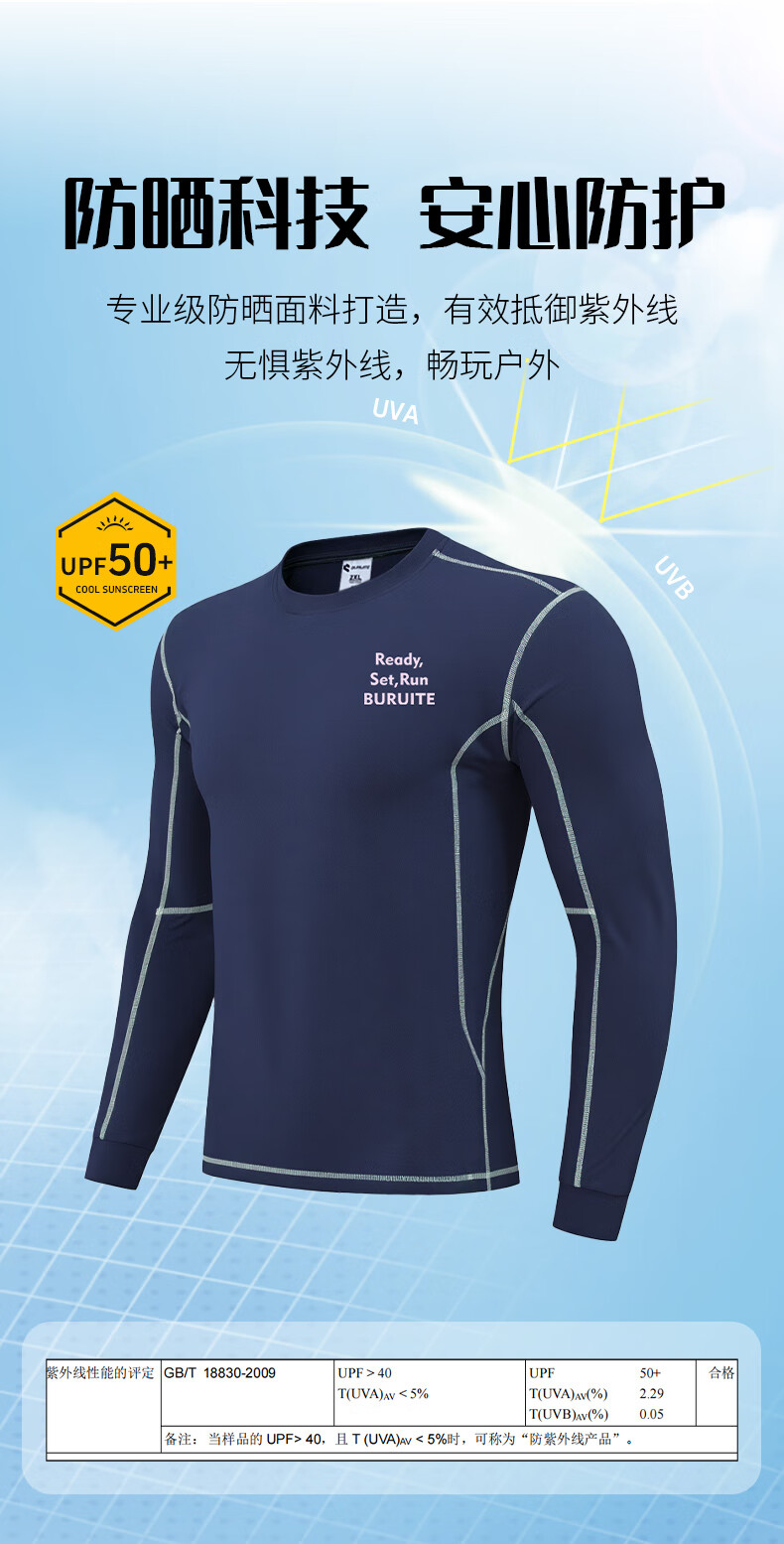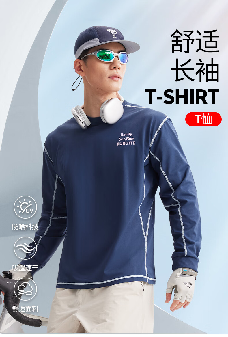 BURUITE cycling clothing men's spring and autumn 2025 new long-sleeved T-shirt running sportswear quick-drying cycling clothing jacket navy blue M recommended weight 100-120Jin Jin equals 0.5 kg