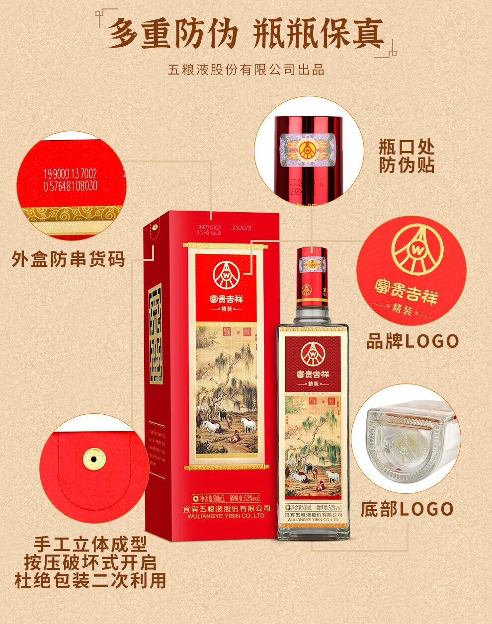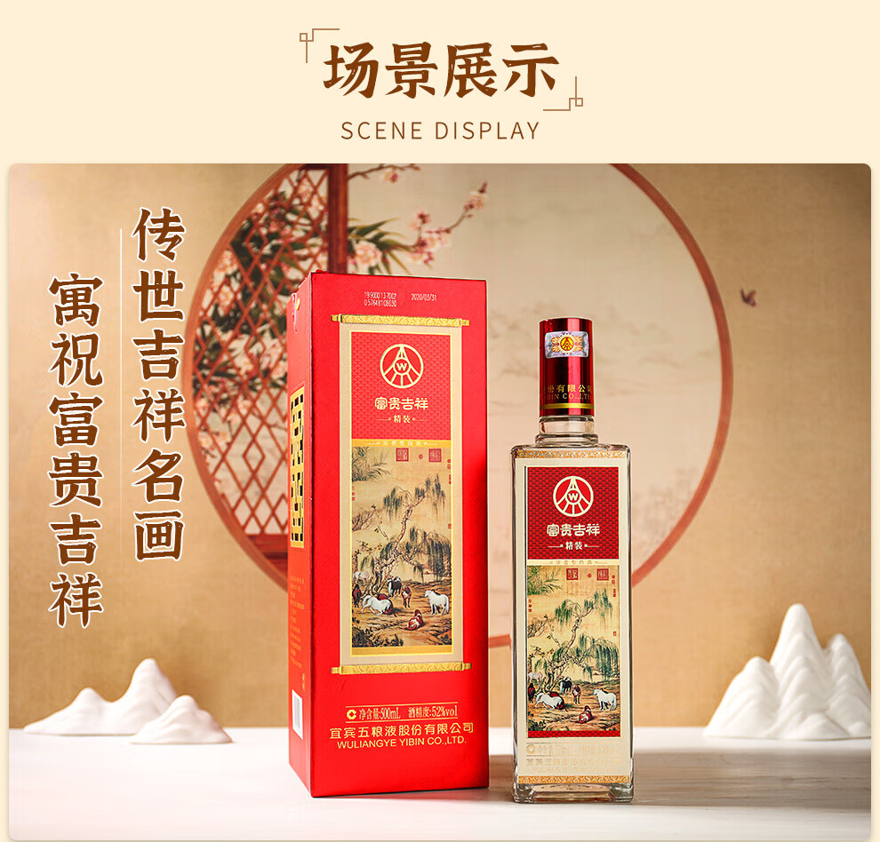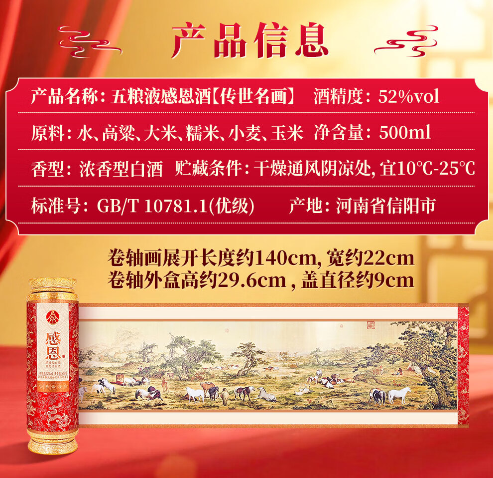 Luzhou-flavor liquor produced by Wuliangye Wuliangye Co., Ltd. Self-drinking ration liquor Engagement wedding banquet gift boxed liquor 52% 500mL 1 bottle Gratitude Scroll Culture Liquor Tasting Business Gift