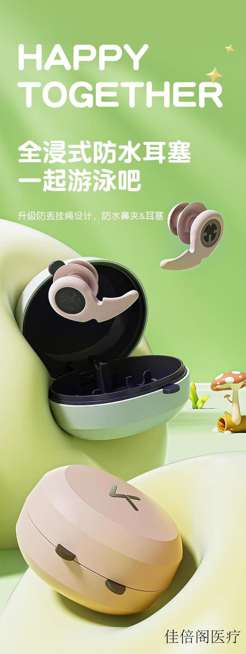 Swimming earplugs, waterproof and non-soundproof, adult style German children's swimming earplugs, waterproof for adults, no need to wash hair, nose clip + detachable lanyard earplugs, jet black - swimming coach