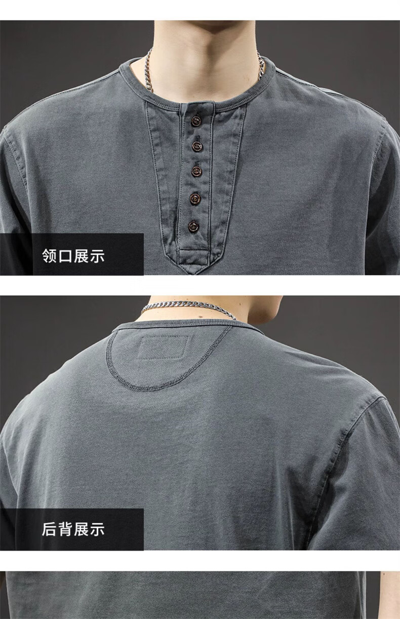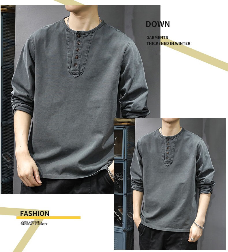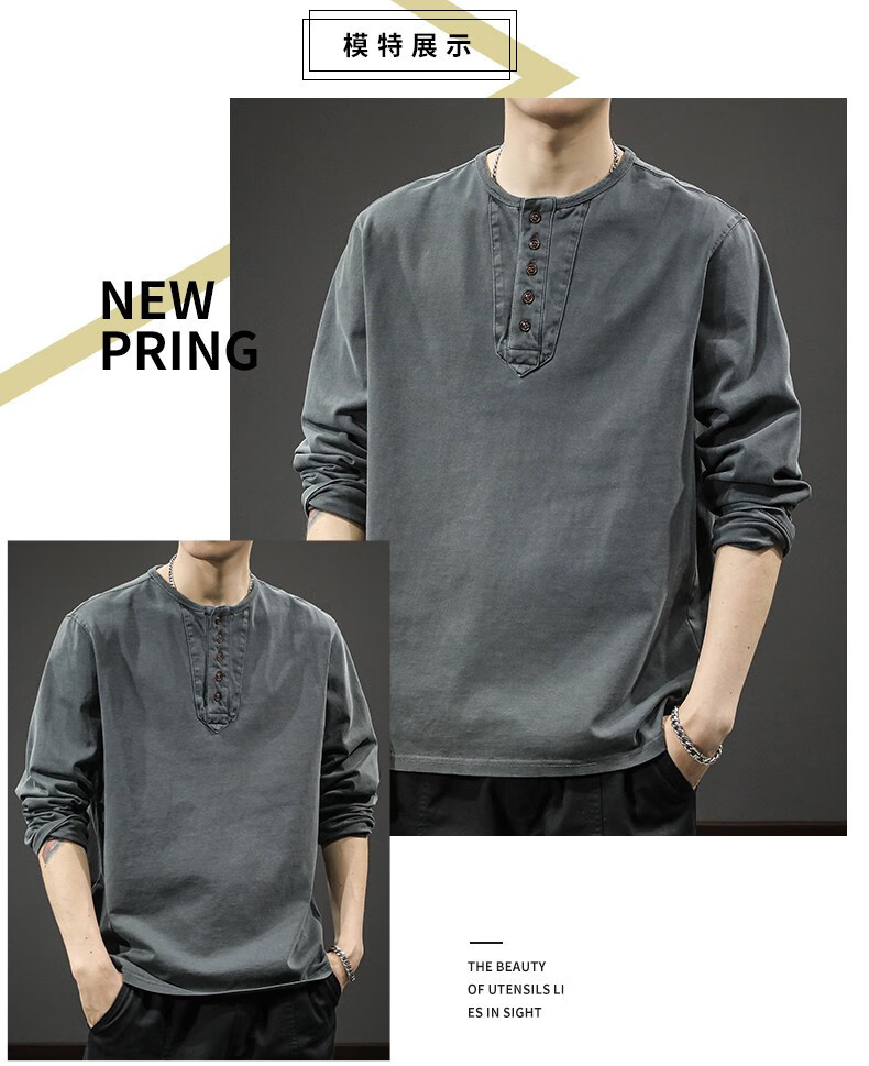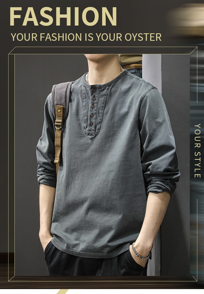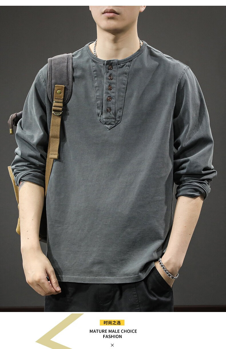 JEEP SPIRIT2025 new casual men's pure cotton long-sleeved T-shirt loose and thin spring and autumn trendy brand Henry collar bottoming shirt sweatshirt 2315 charcoal gray sweatshirt XL suitable weight 145-160Jin Jin equals 0.5 kg