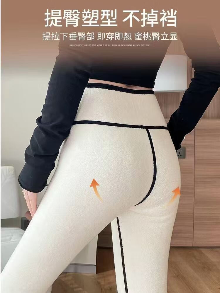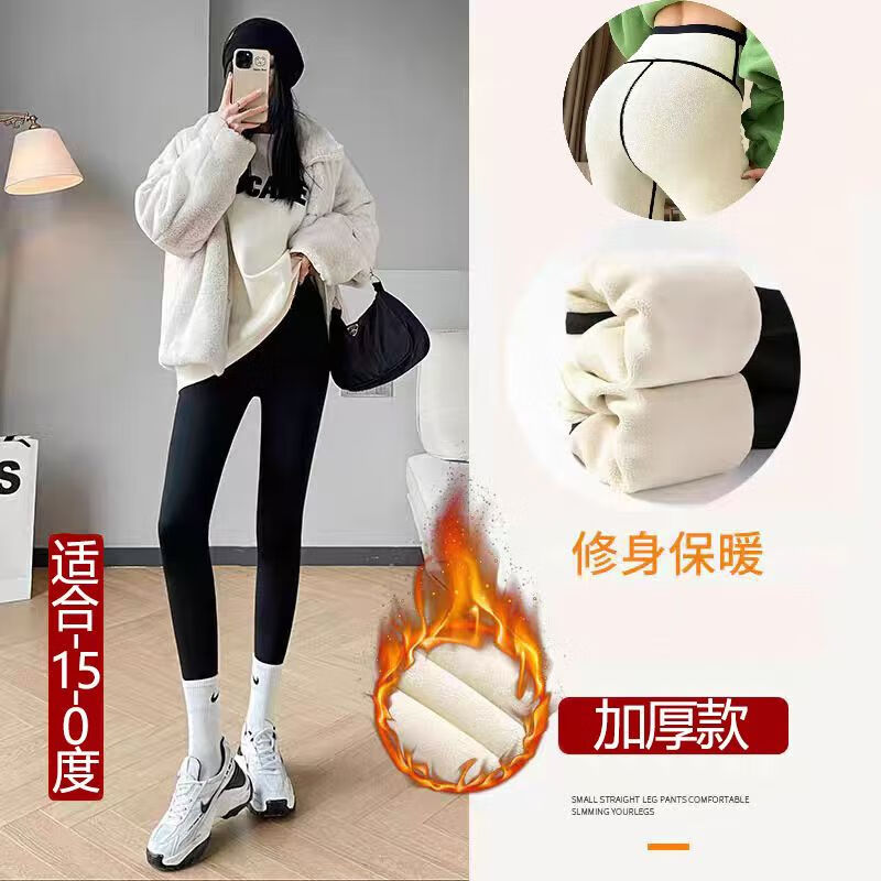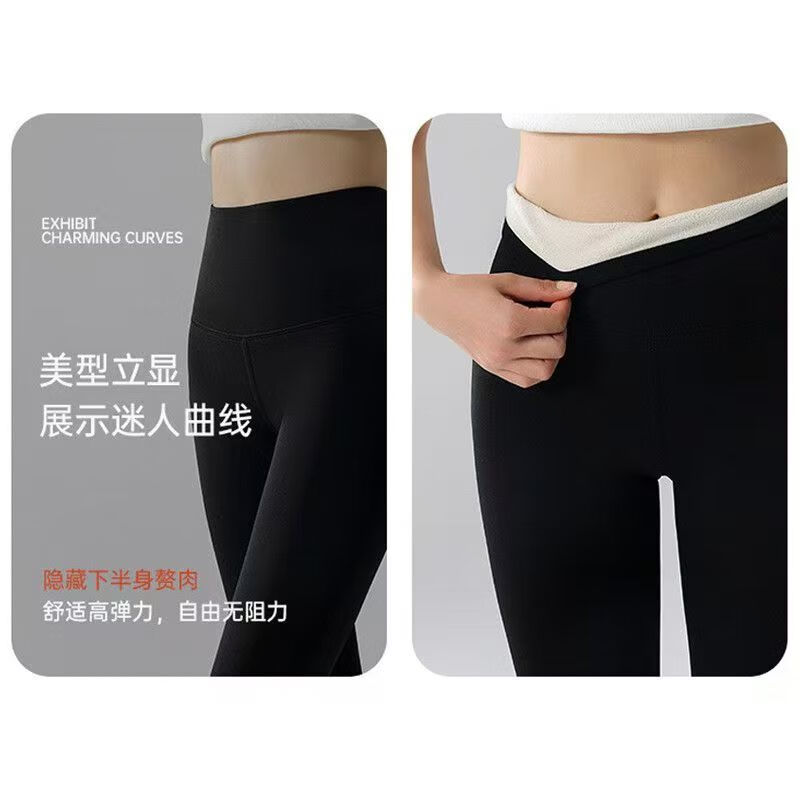Thickened and Velvet Shaping Yoga Pants Shark Pants Sports Fitness Wear Barbie Pants High Waist Slimming Warm Autumn and Winter Black-Regular XL Recommended 120-140Jin Jin equals 0.5kg