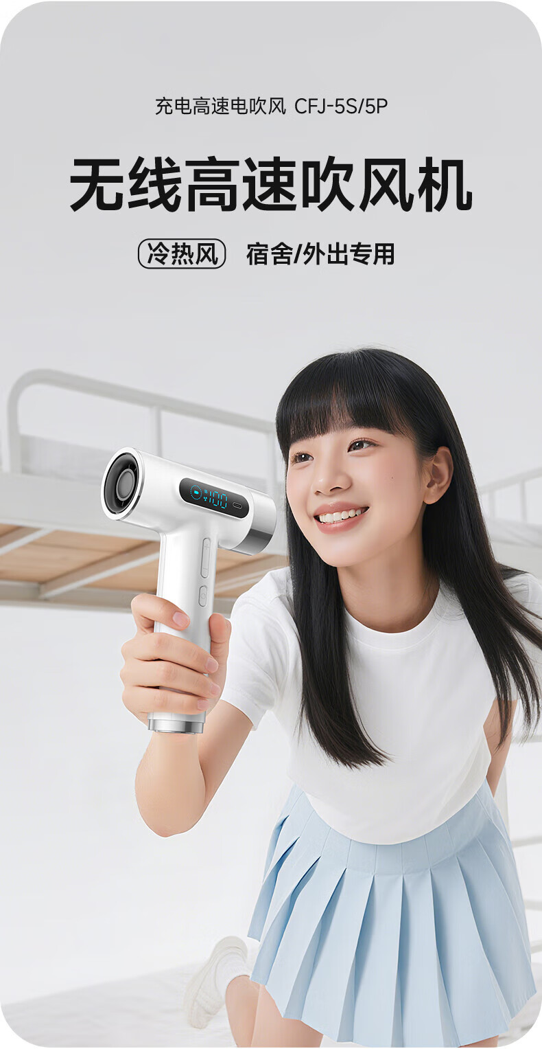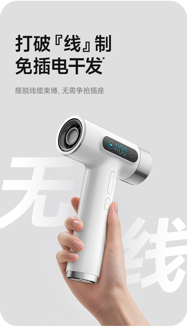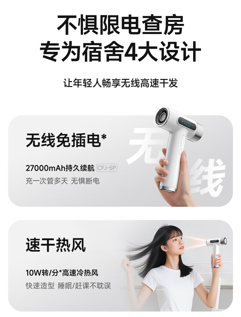 Xiaomi Rechargeable Wireless Hair Dryer for Dormitories Unplugged USB Low Power High Speed Ultra Long Life Battery Hair Dryer Second Generation Upgraded White 30000 mAh Battery Life 150,000 RPM + Original Charging Head
