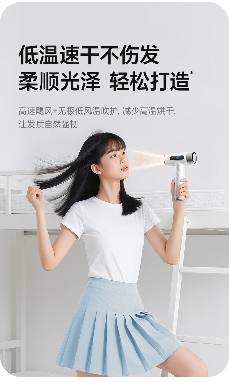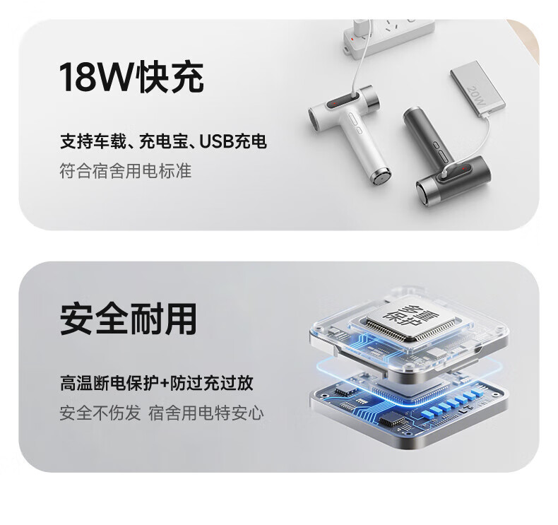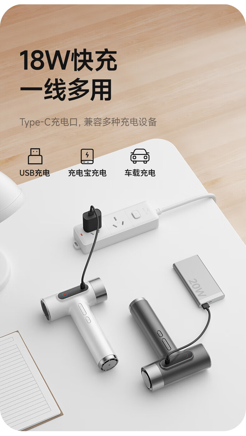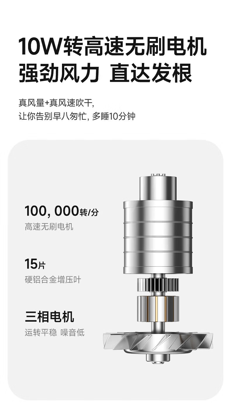 Xiaomi Rechargeable Wireless Hair Dryer for Dormitories Unplugged USB Low Power High Speed Ultra Long Life Battery Hair Dryer Second Generation Upgraded White 30000 mAh Battery Life 150,000 RPM + Original Charging Head