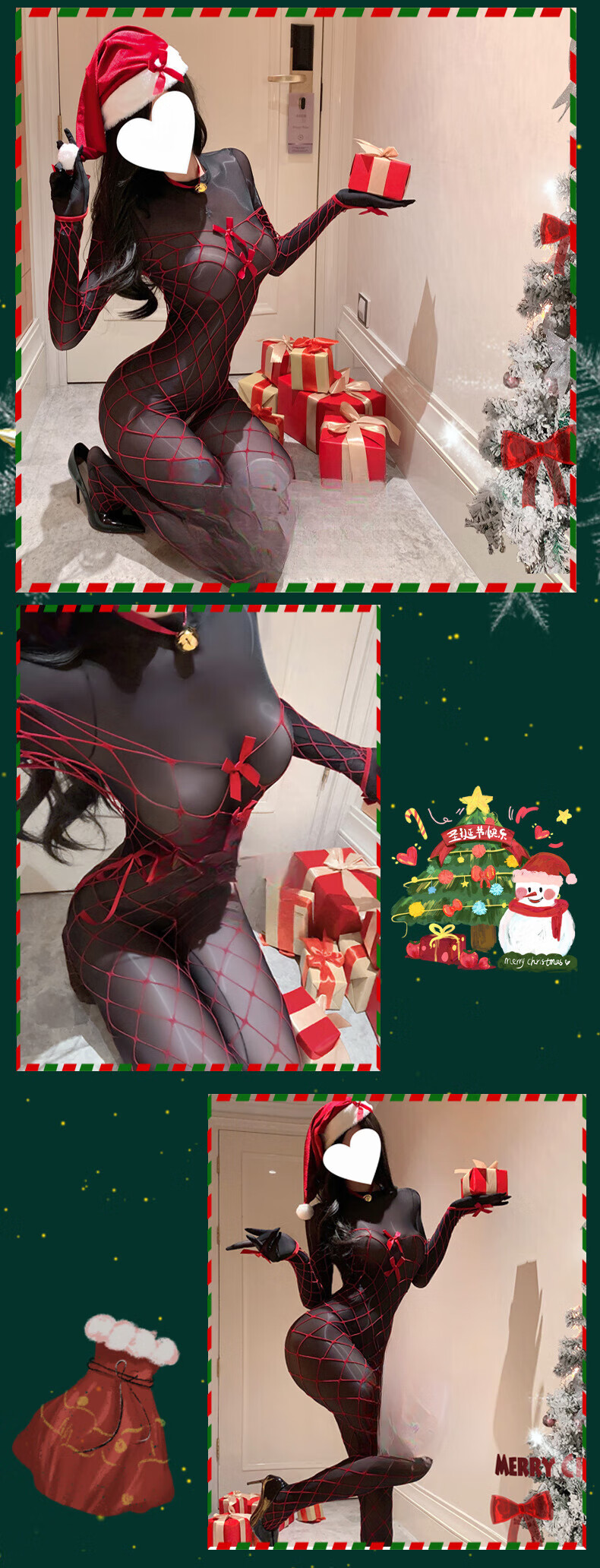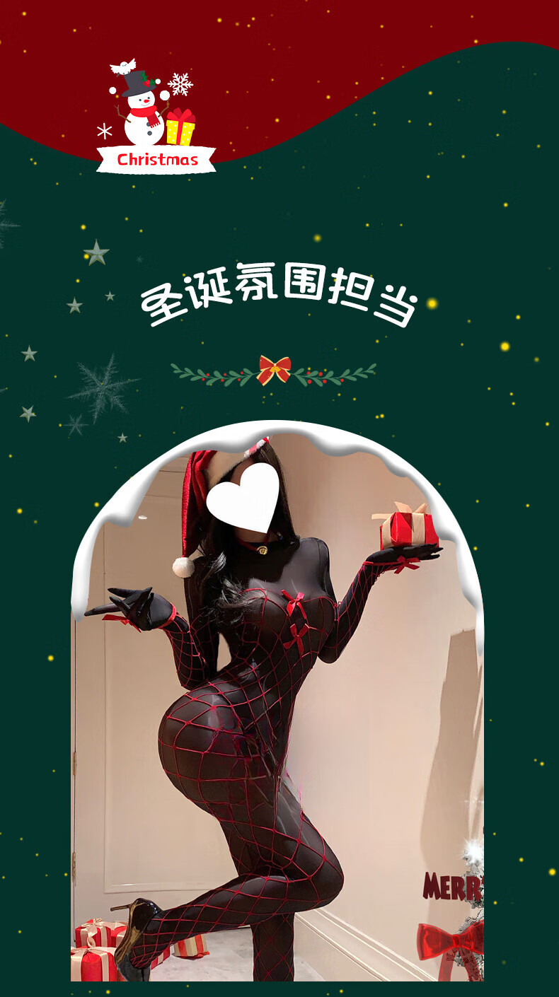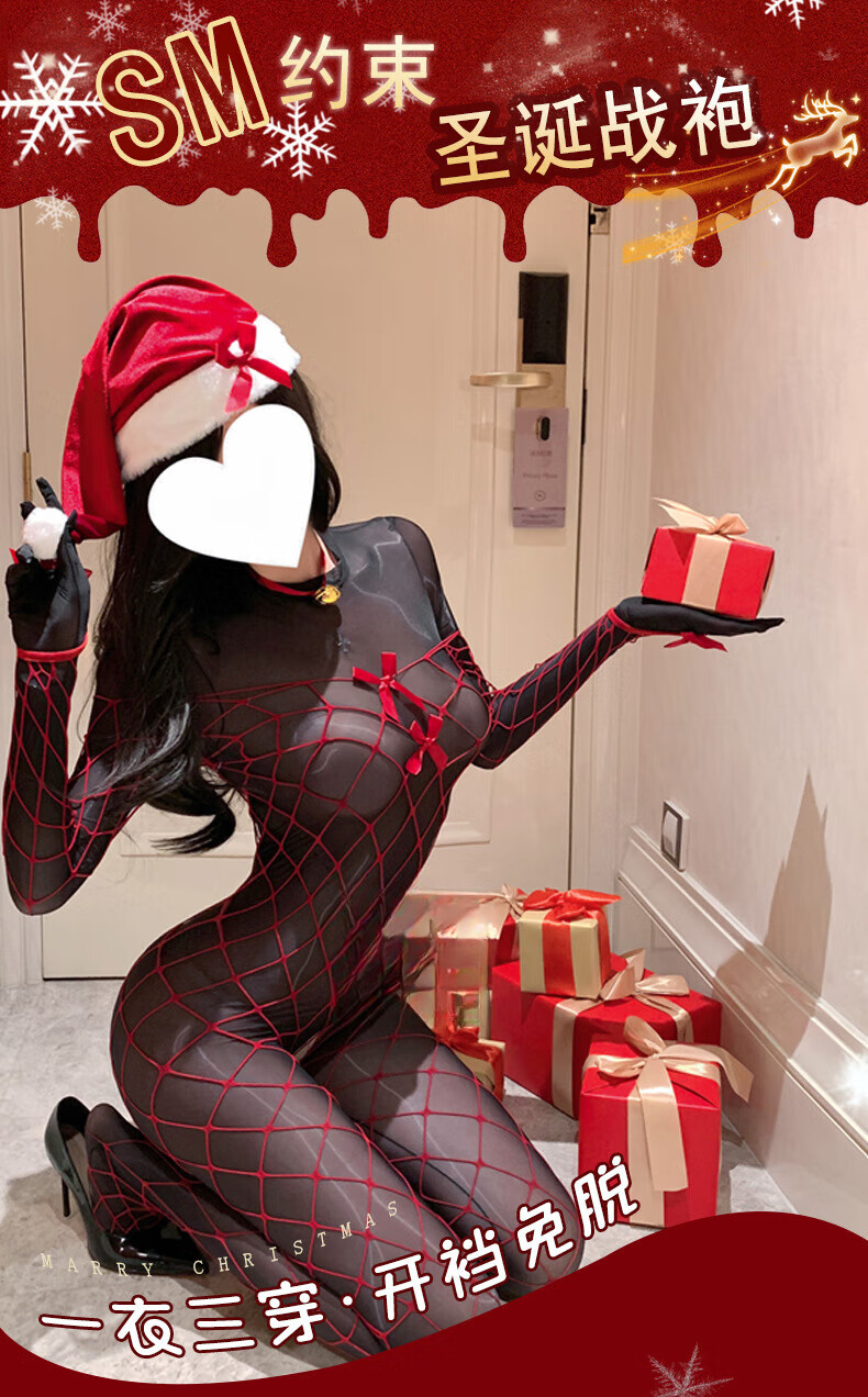 New Year's shiny one-piece stockings sexy open-stock Christmas one-piece fishnet sexy lingerie for women black thin sexy sexy panties bra set random