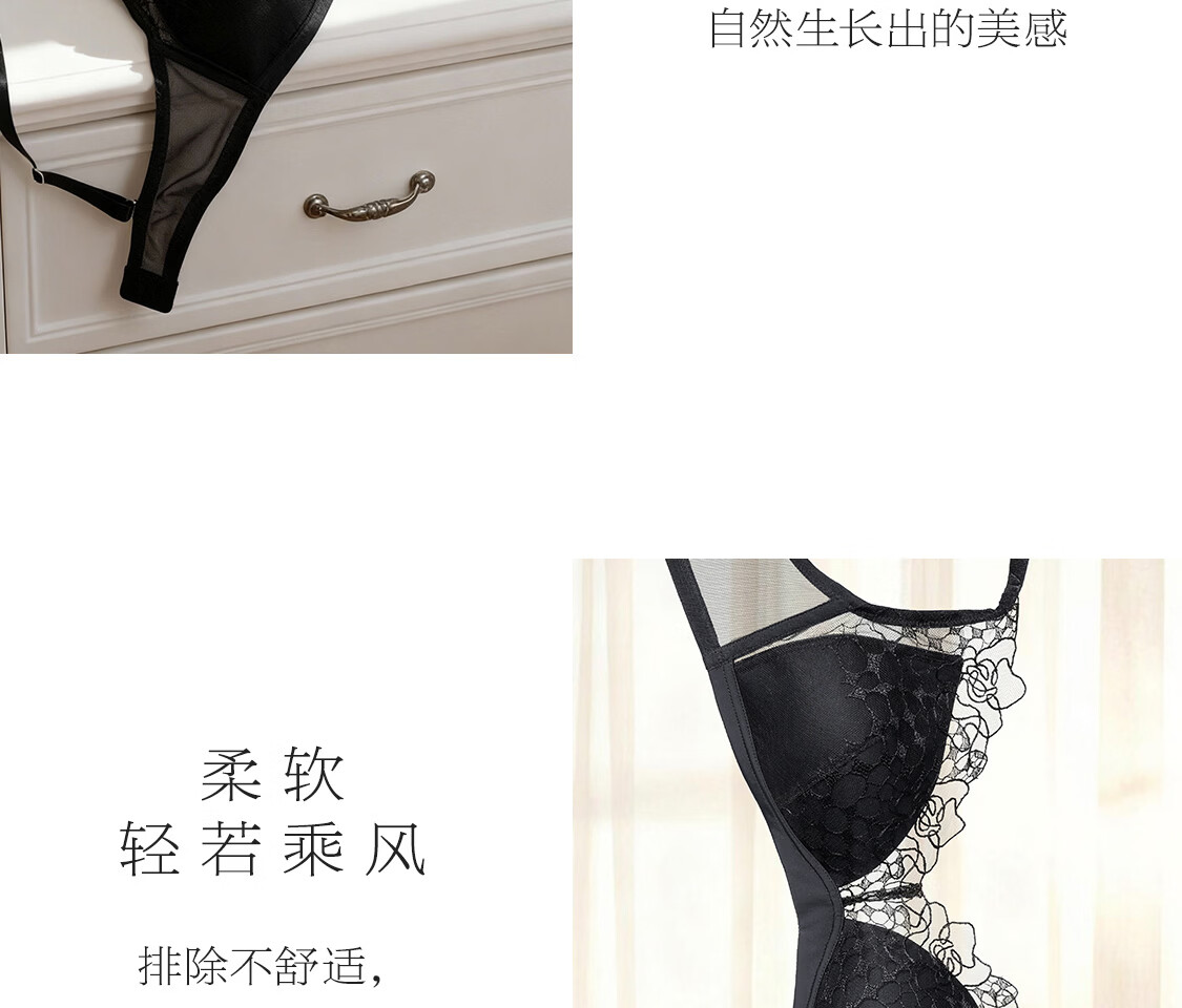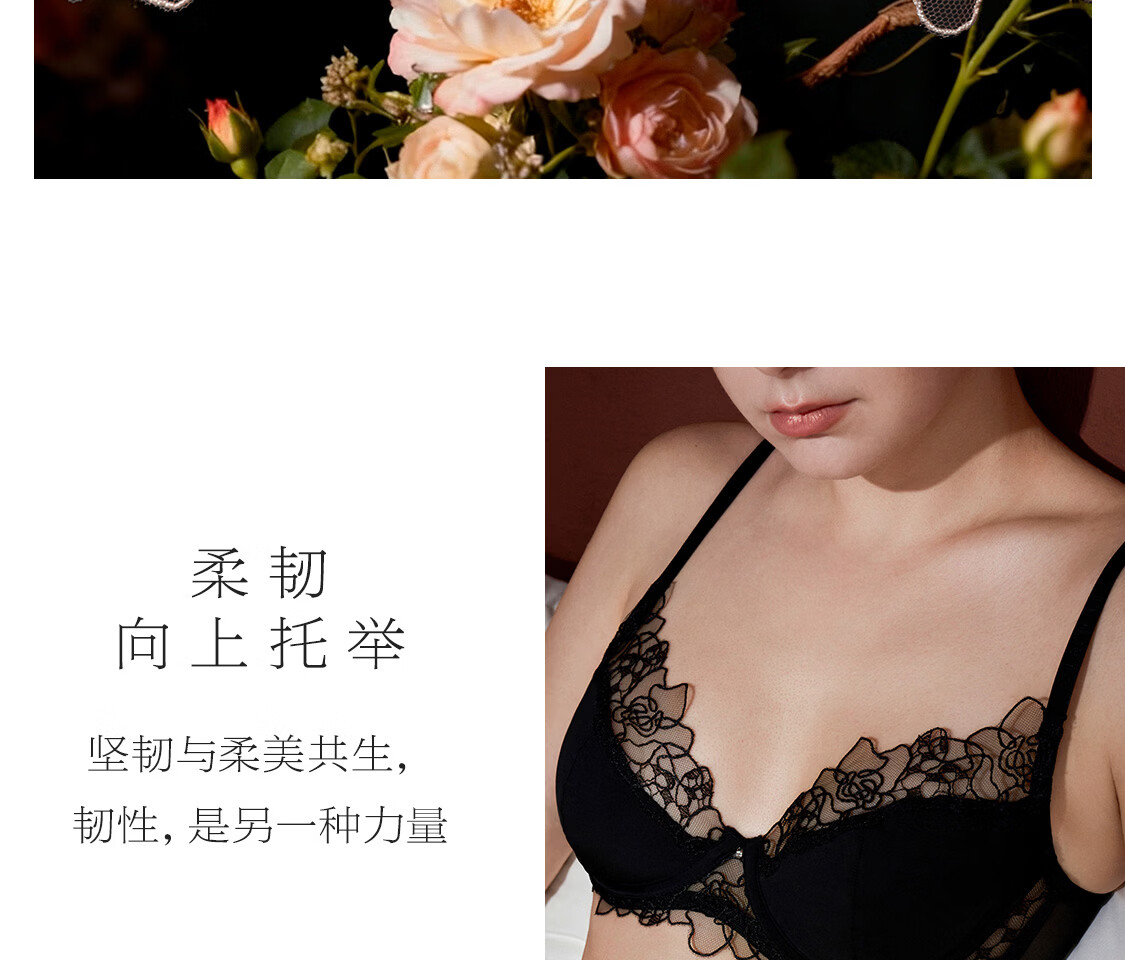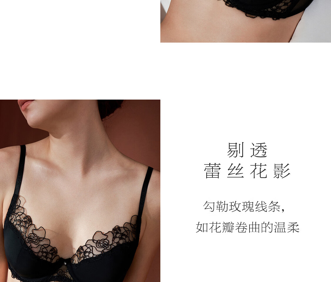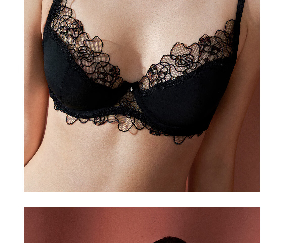 LA CLOVER25AW Wilderness Rose Series Underwear Women's Embroidered Stripes Sexy Underwear Bra Panty Set LC2025203 Black - Embroidered Breathable Thin Cup Bra Set 75B L