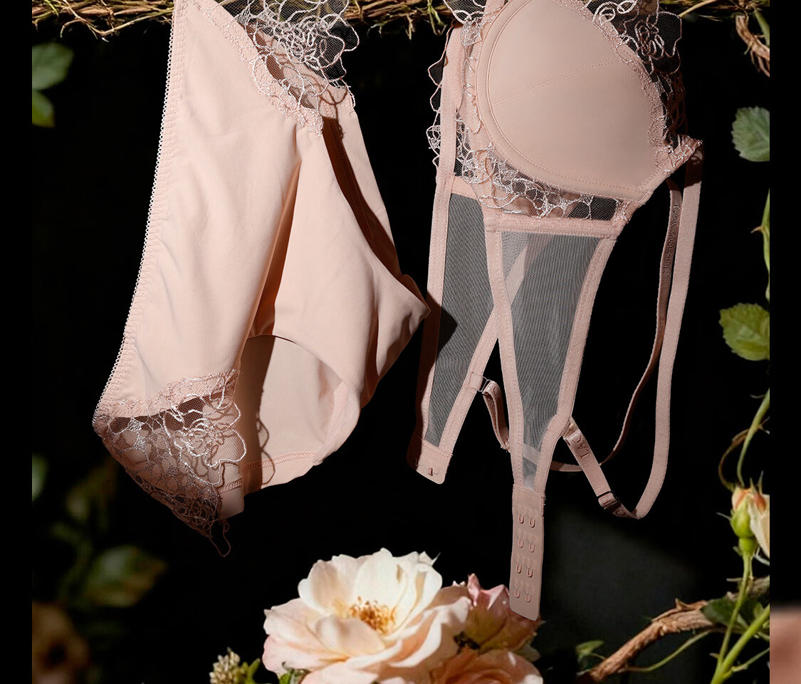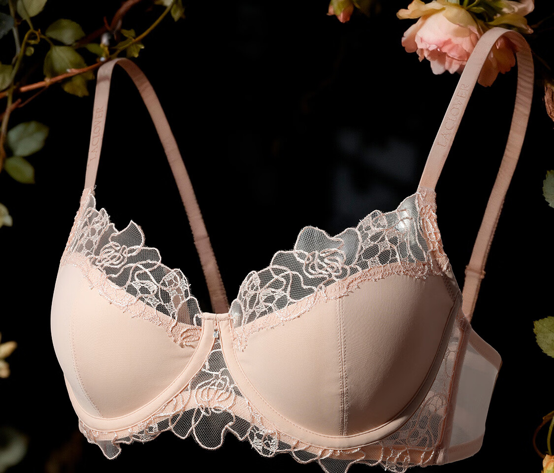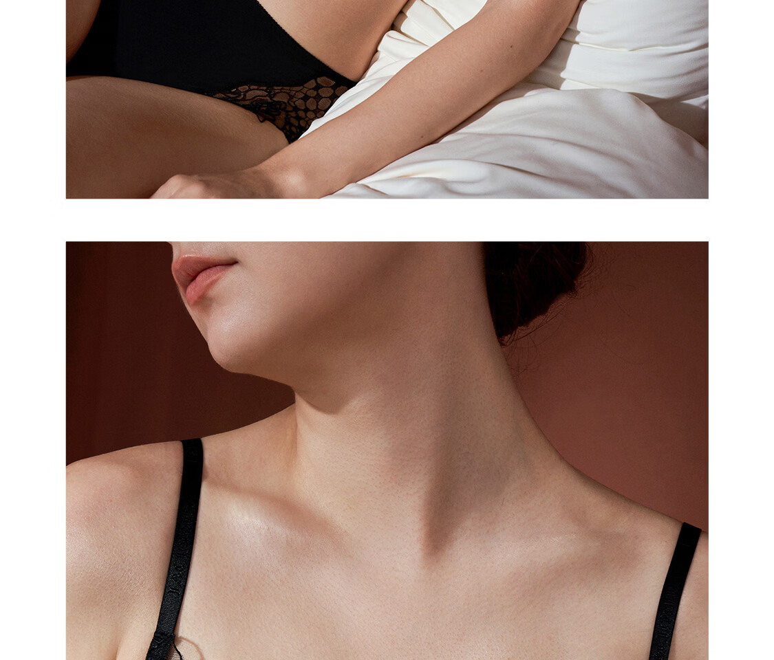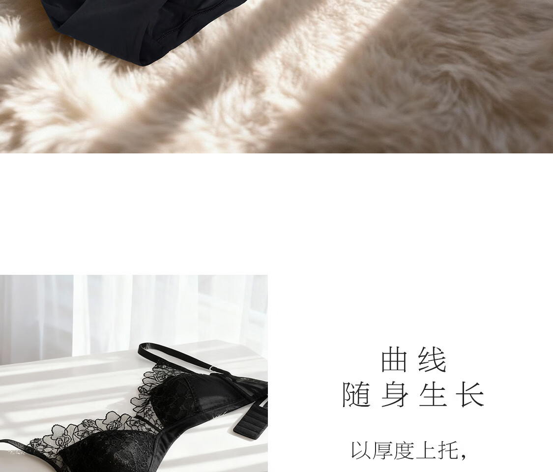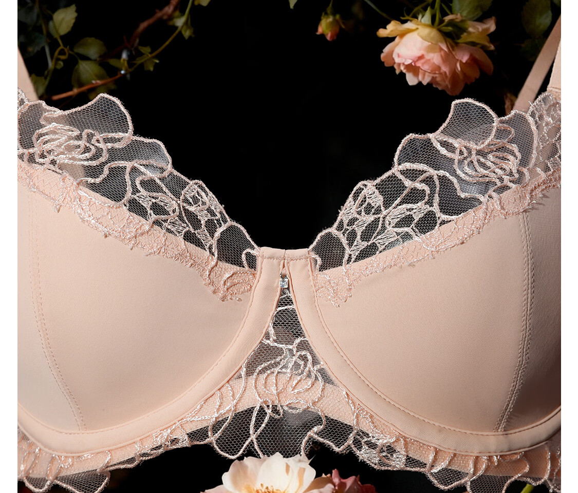 LA CLOVER25AW Wilderness Rose Series Underwear Women's Embroidered Stripes Sexy Underwear Bra Panty Set LC2025203 Black - Embroidered Breathable Thin Cup Bra Set 75B L