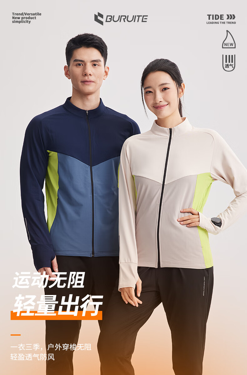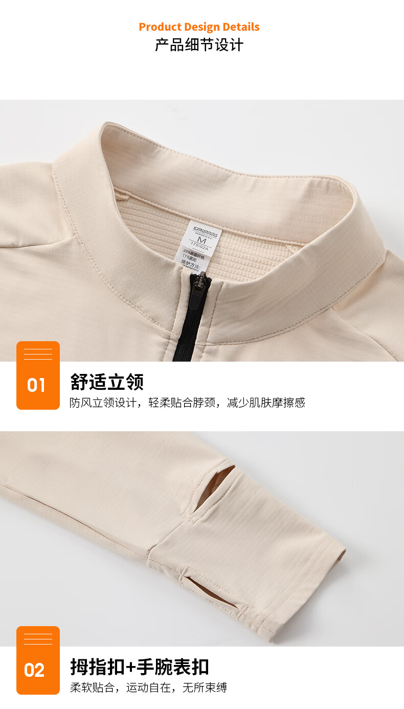 BURUITE sports jacket men's spring and autumn 2025 new long-sleeved T-shirt running sportswear quick-drying clothing cycling jacket light khaki M recommended 90-110Jin Jin equals 0.5 kg