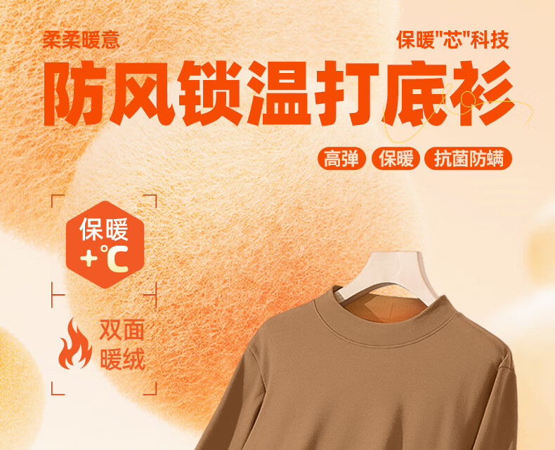 Jeanswest German velvet long-sleeved T-shirt 7A grade antibacterial winter warm inner wear autumn clothes for men and women double-sided velvet bottoming shirt black #ZS solid color 2XL