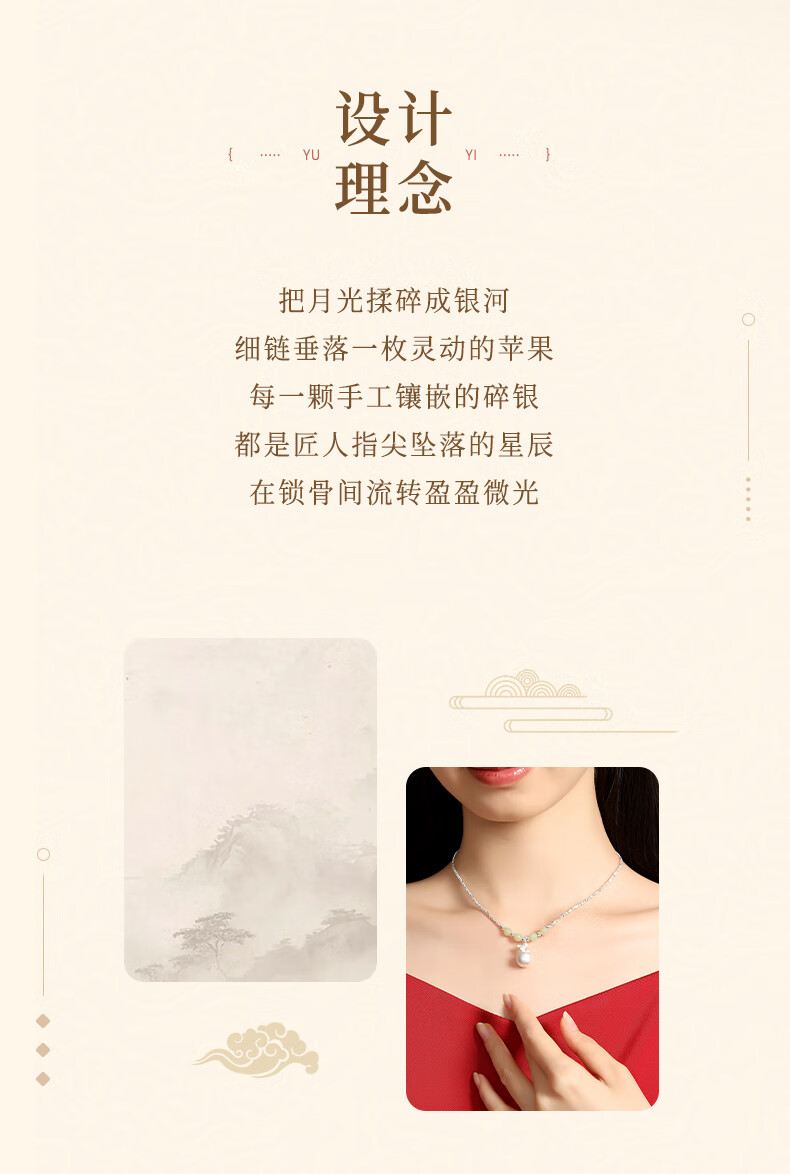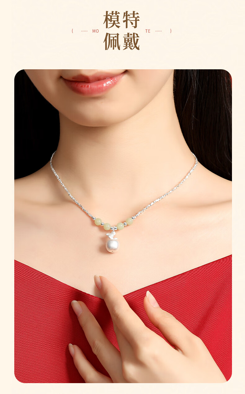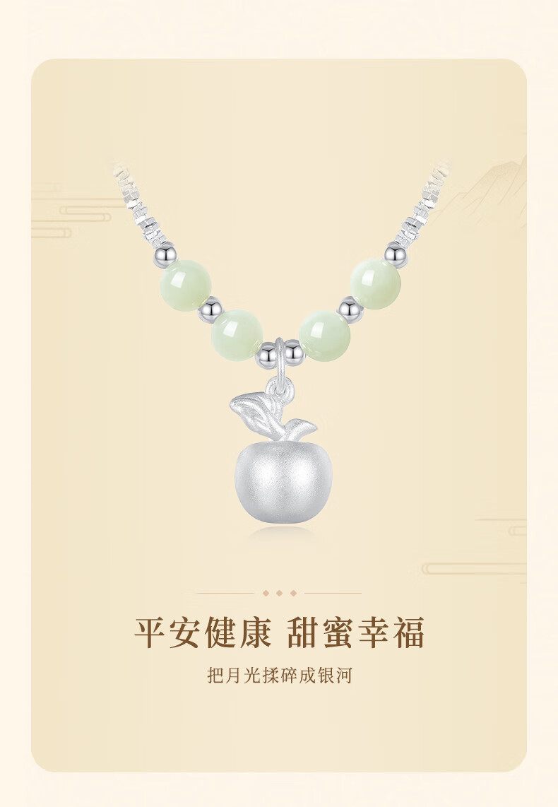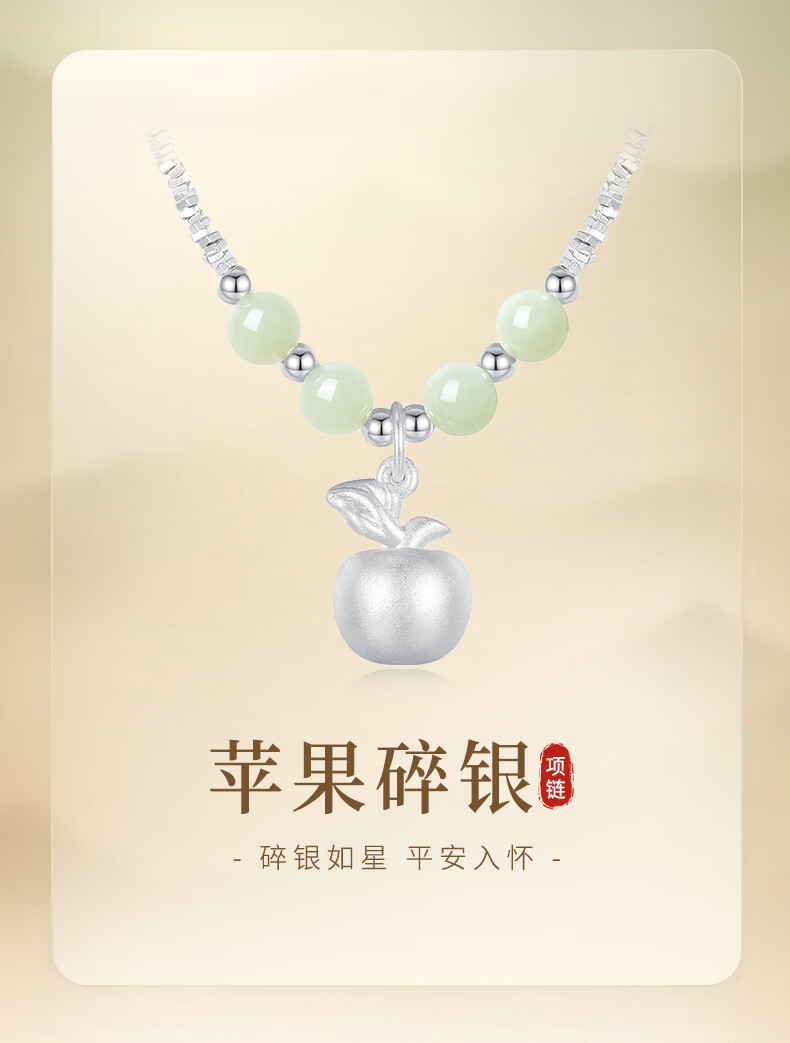 Lao Fengxiang Christmas Eve Apple Necklace Broken Silver Couple Women's Sterling Silver Niche Hetian Jade Pendant Birthday Christmas Gift for Girls Necklace/Free Ghostwriting Greeting Card*Customized Engraving