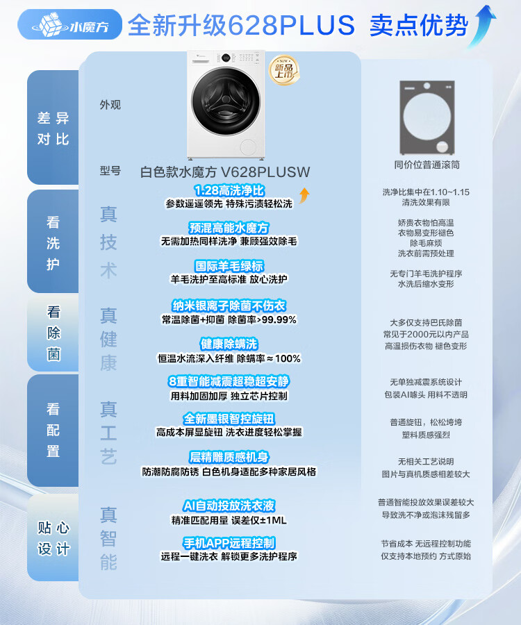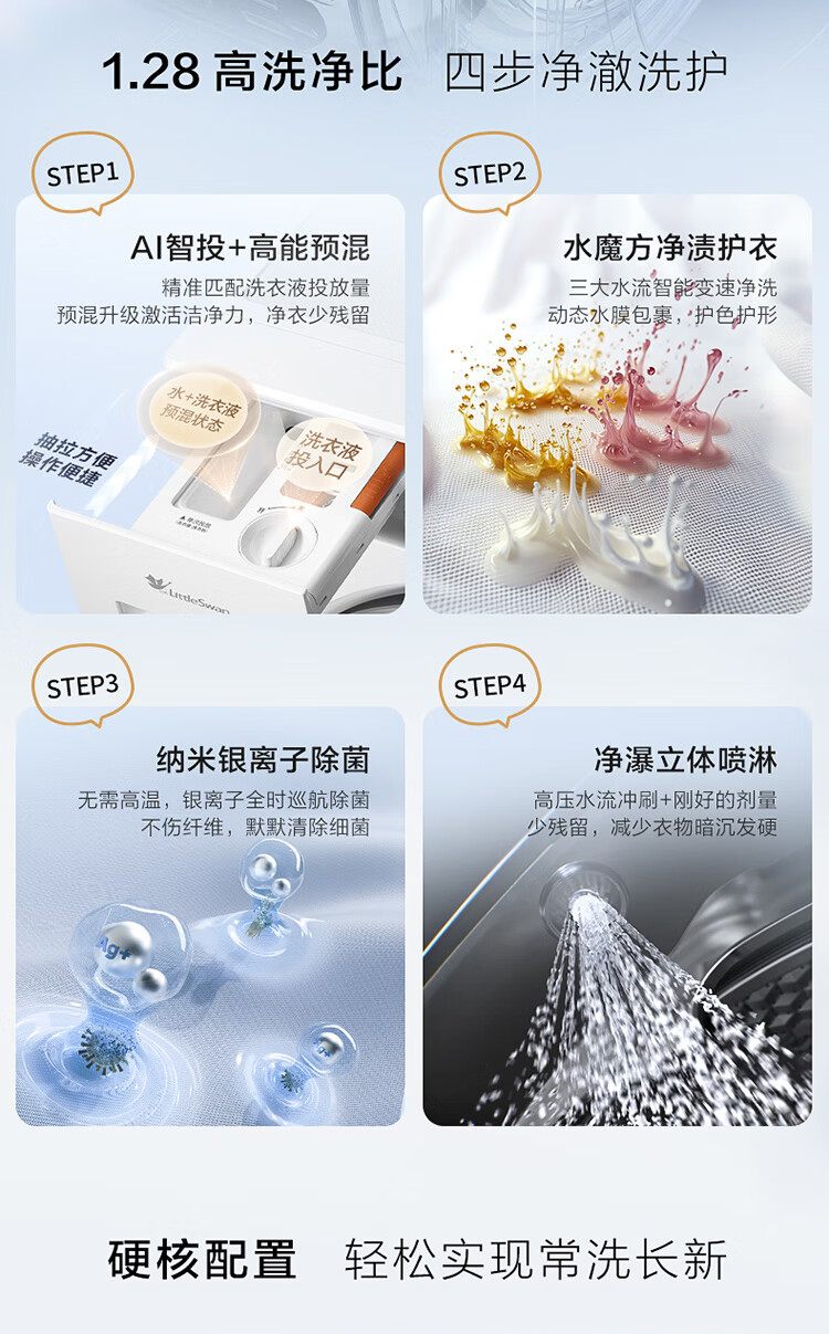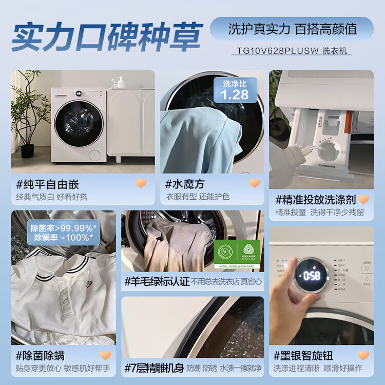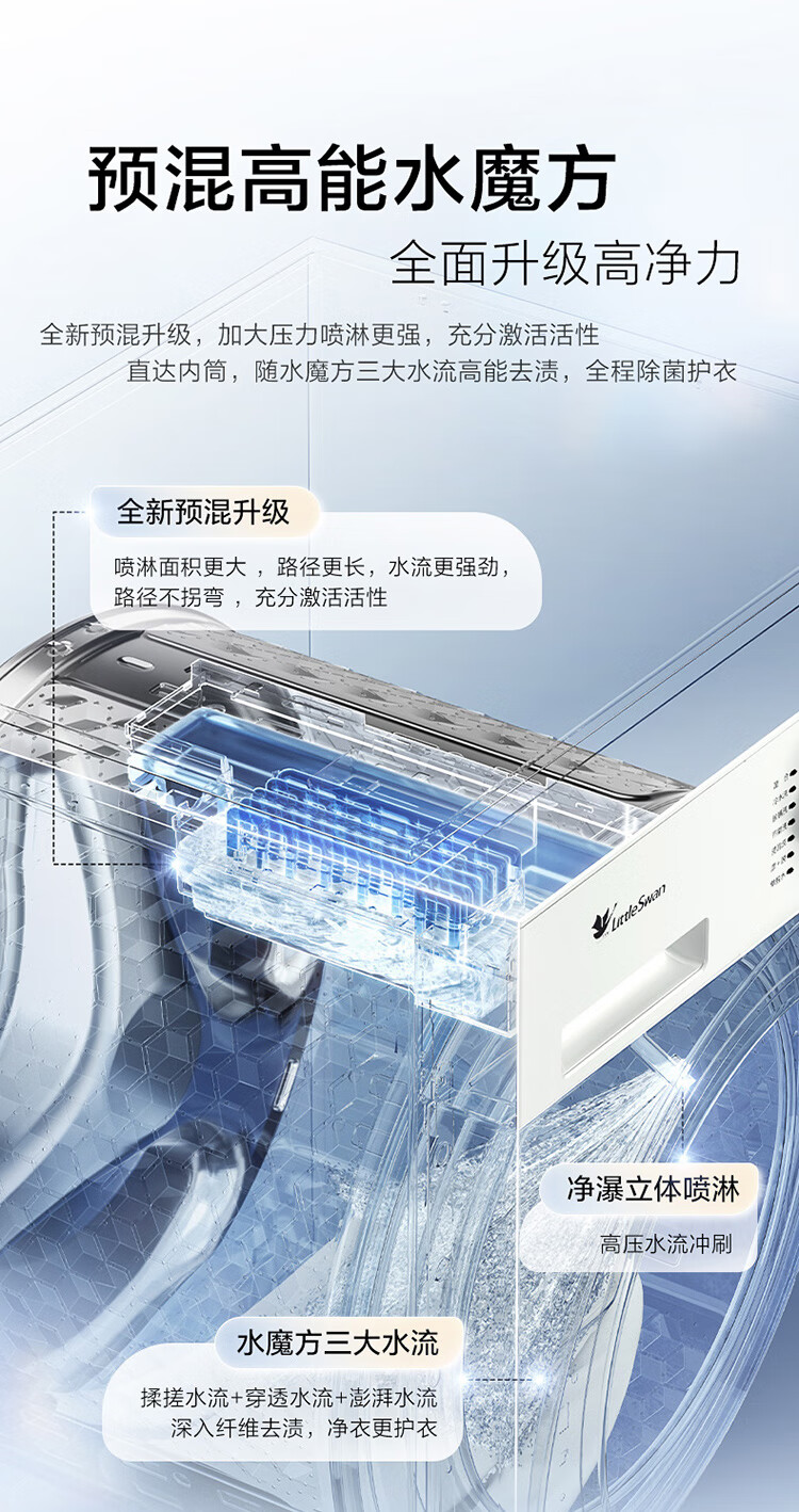 LittleSwan 10kg drum washing machine fully automatic household flat-screen free-standing white water cube with color and shape protection 1.28 wash ratio first-class energy efficiency TG10V628PLUSW single wash