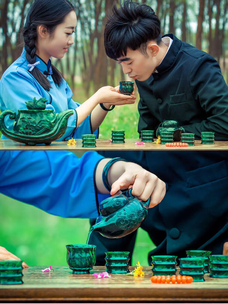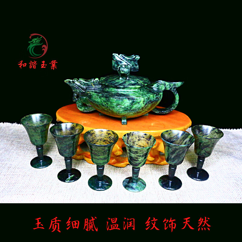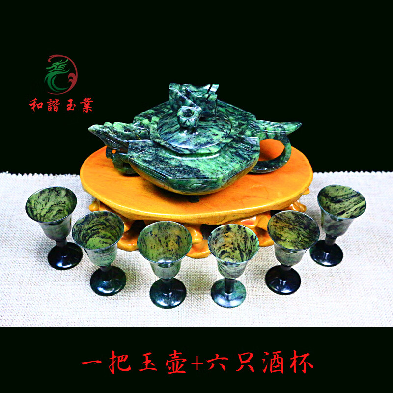 Plum Blossom Pot Jade Wine Set Hidden Jade Medicine King Stone Jiuquan Luminous Cup Qilian Ink Jade Authentic Gansu Wushan Mandarin Duck Jade Translucent Plum Blossom Pot + 6 Cups Gift Box