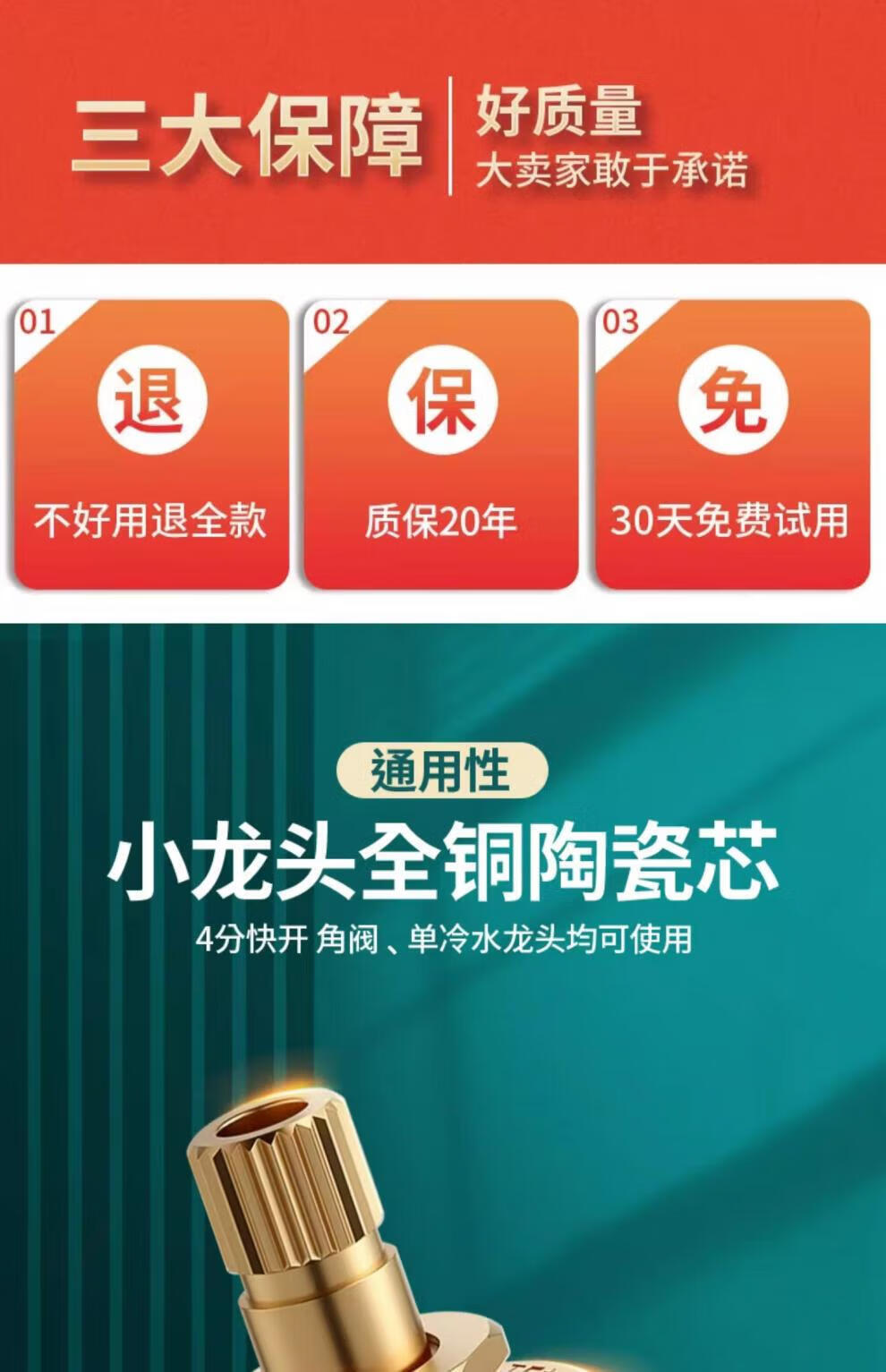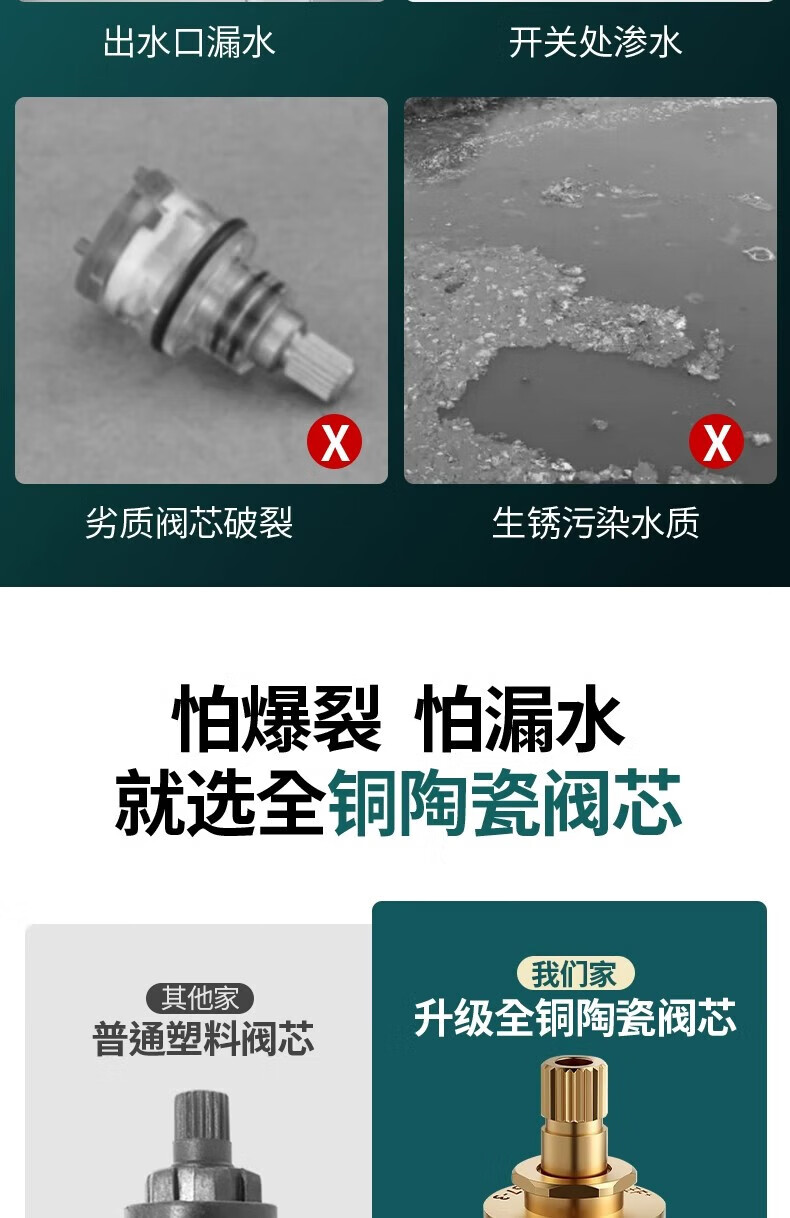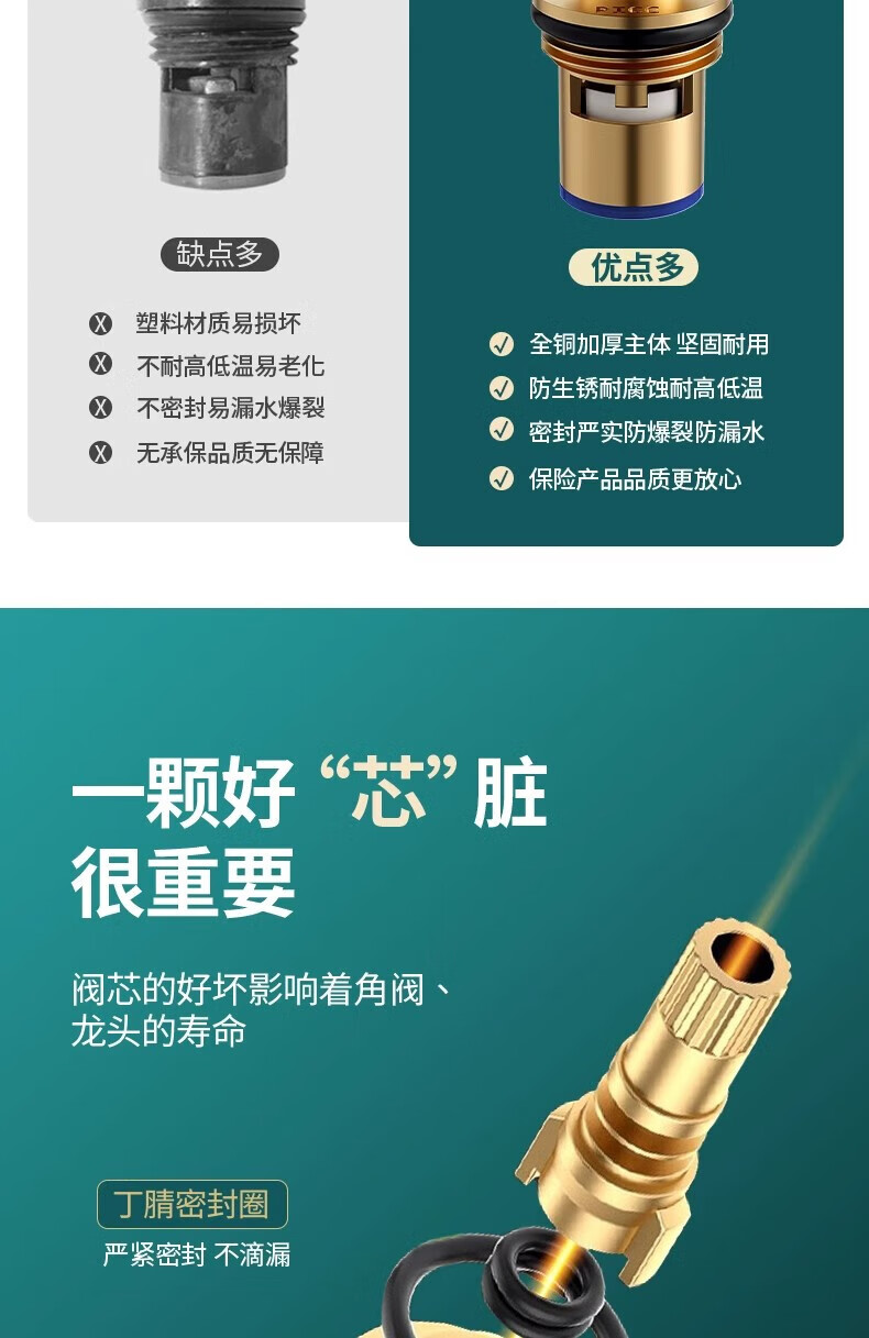 JOMOO faucet adapted to fine copper valve core for kitchen and bathroom single hot and cold universal quick-open faucet inner core all-copper accessories thickened with copper 2 pack PICC underwriting warranty