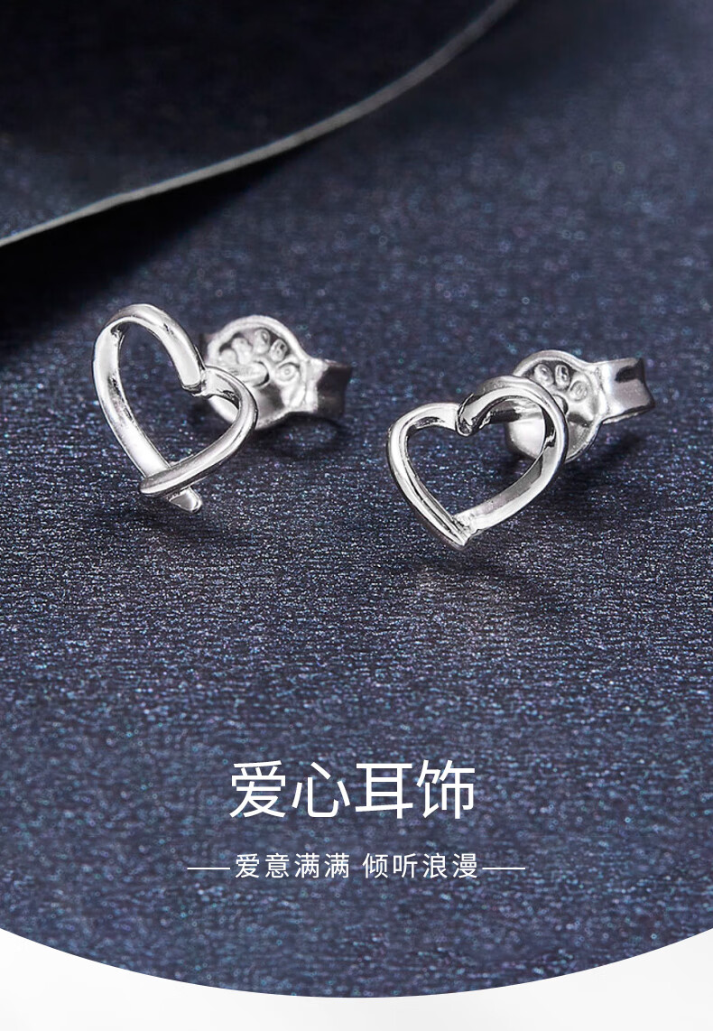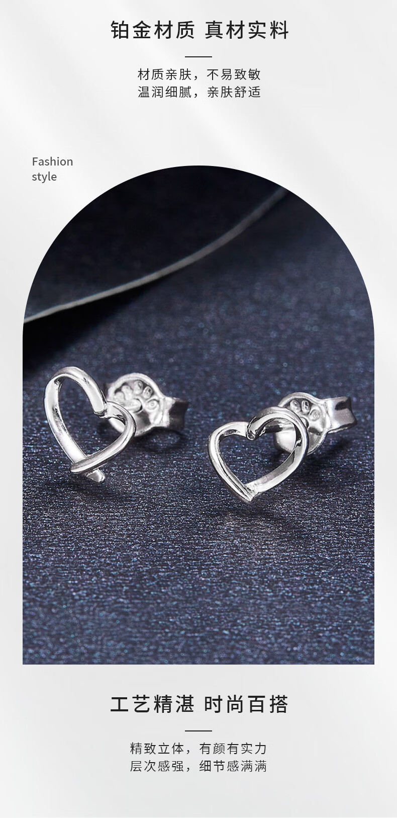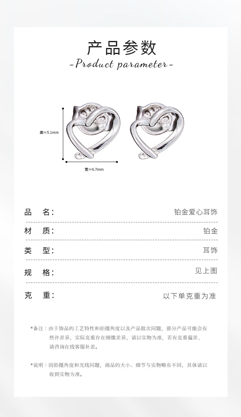 Laofu gold platinum earrings, love earrings, gifts for girlfriends, about 0.95g
