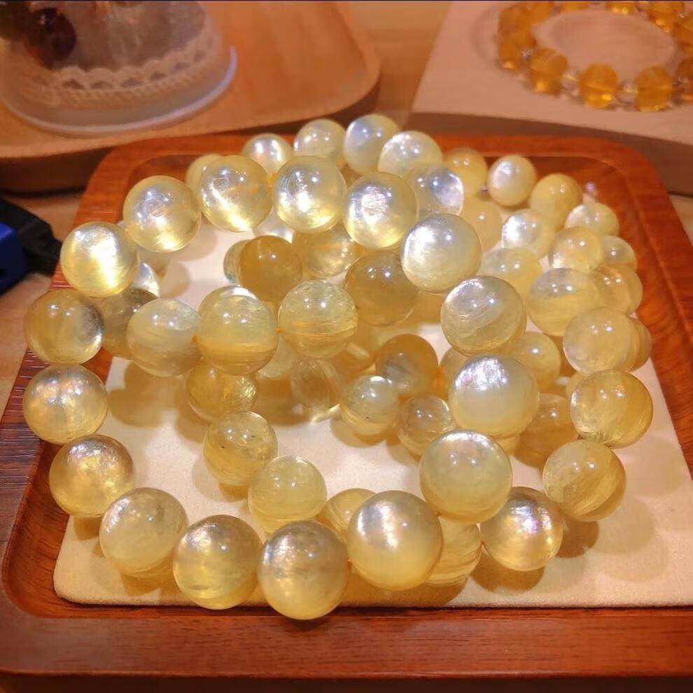 Wanke Natural Golden Dragon Mica Gold Lepidolite Yellow Grandmother Crystal Bracelet Crystal Gemstone Mother's Day Gift for Men and Women Collection Grade Gold Lepidolite 9mm