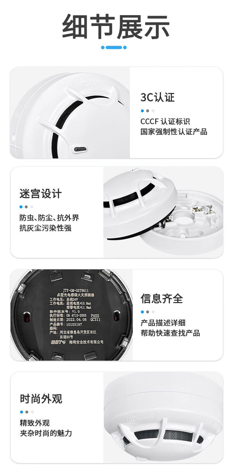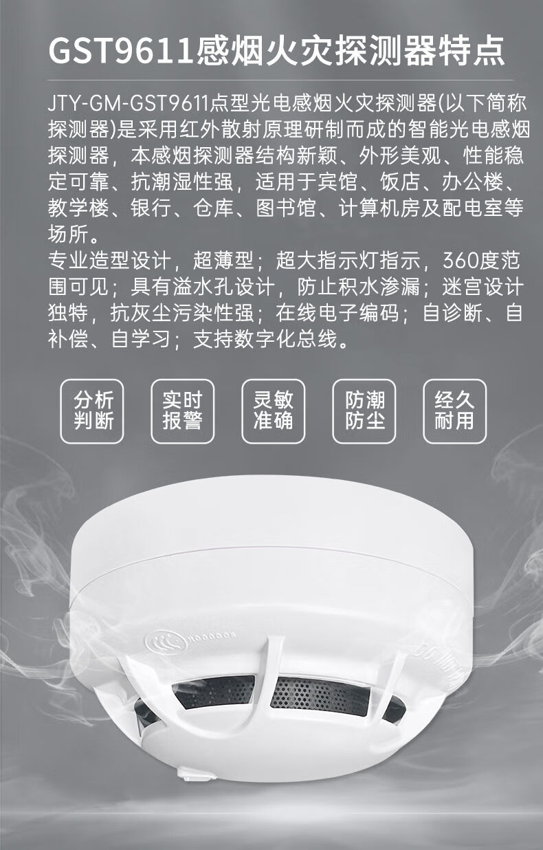 Bay smoke coded JTY-GM-GST9611 point type photoelectric smoke fire detector with base