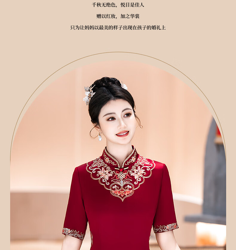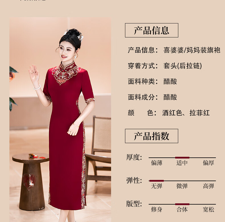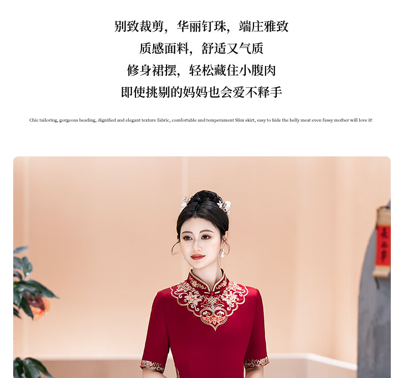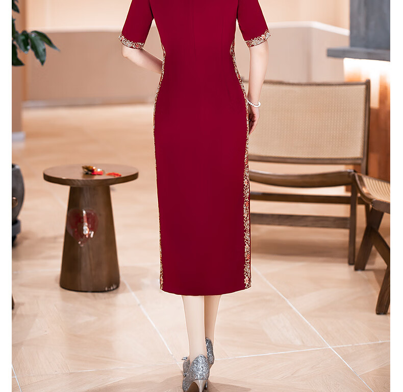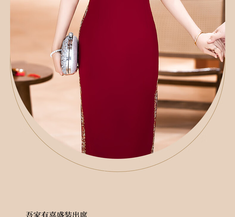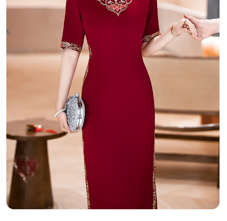 Rabbit style etiquette dress cheongsam Ao Dai cheongsam dress improved version cheongsam catwalk performance long cheongsam dress burgundy 2XL