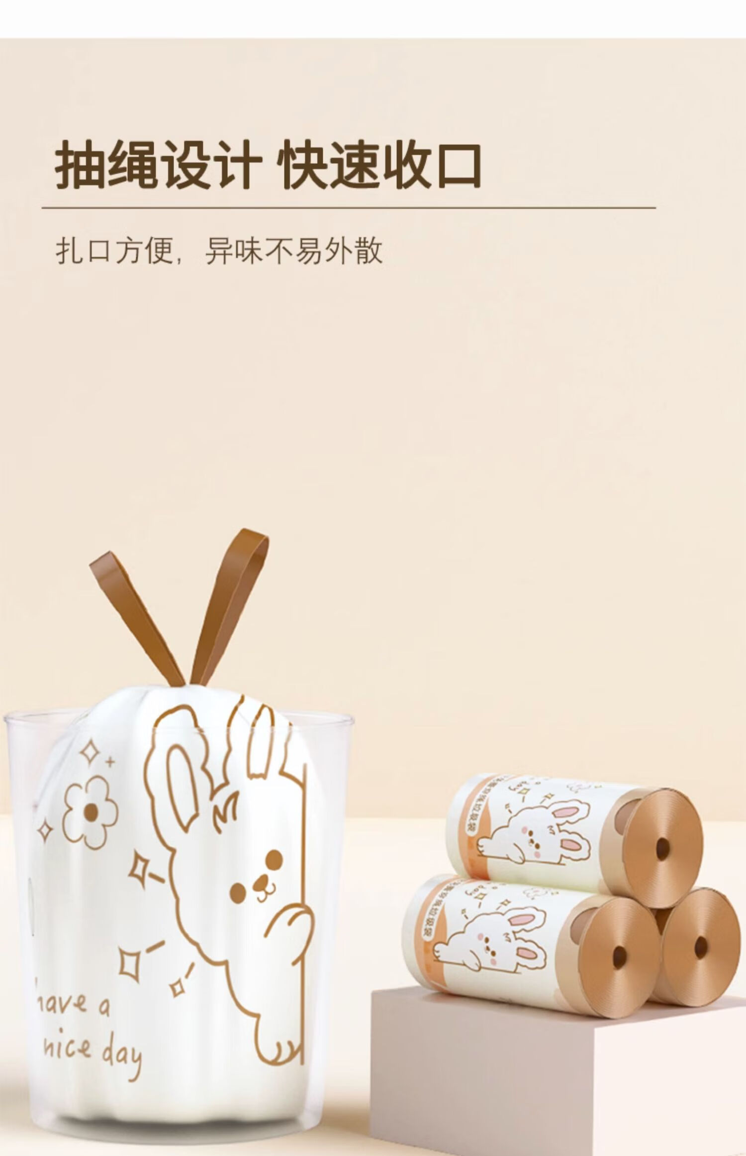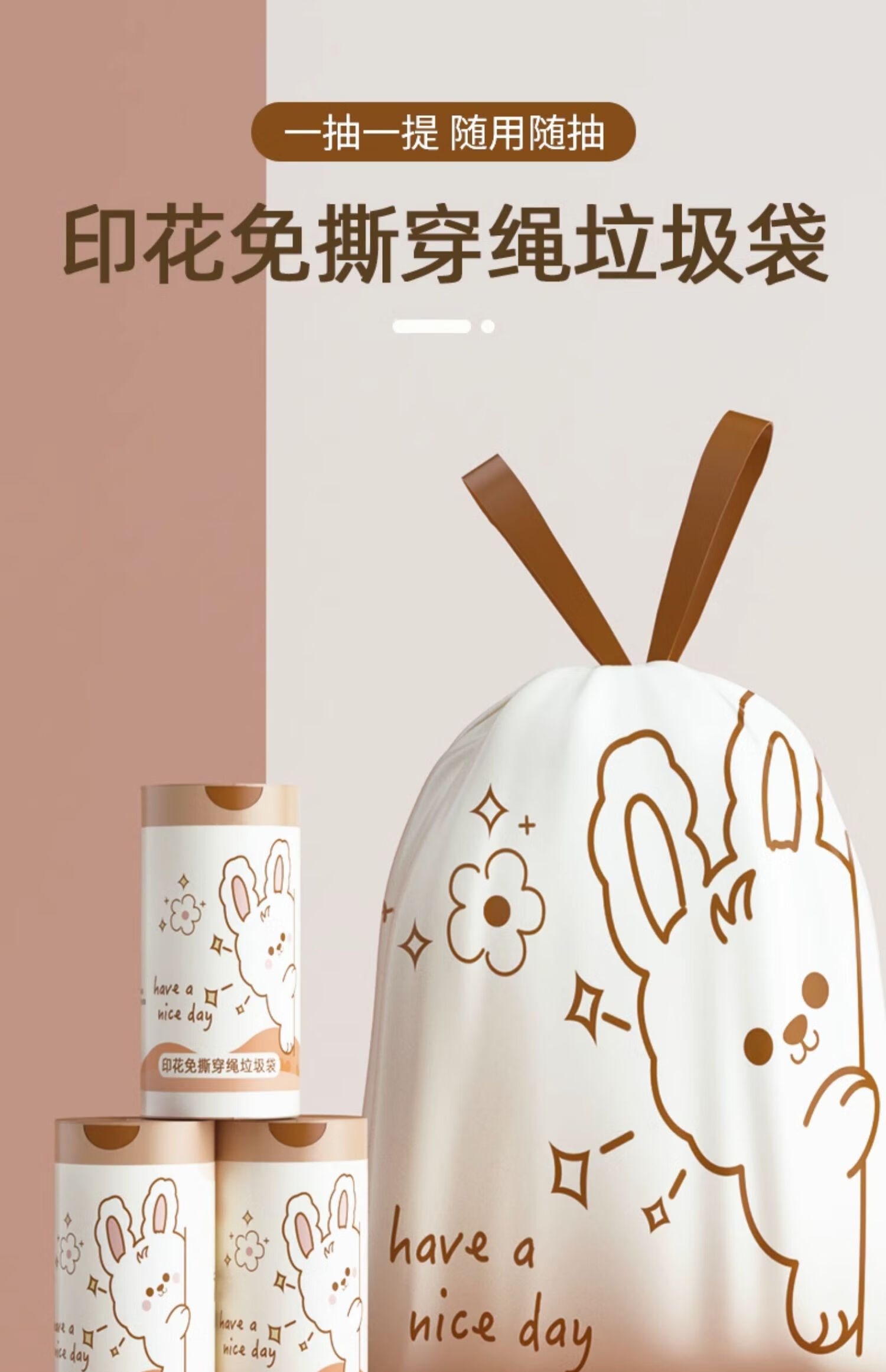 Mixed American garbage bag household portable thickened extra thick kitchen special drawstring affordable tear-free small closure large plastic bag cartoon garbage bag 5 rolls