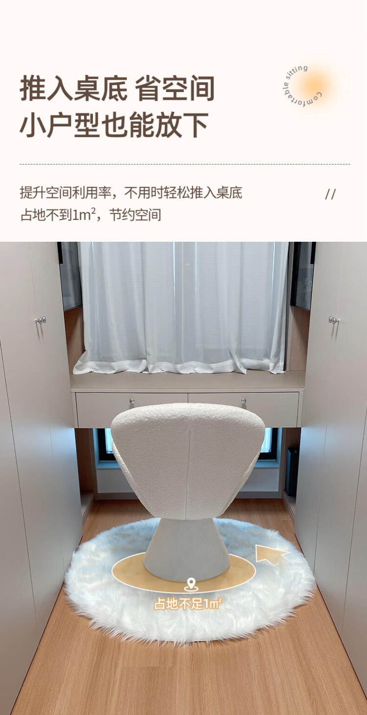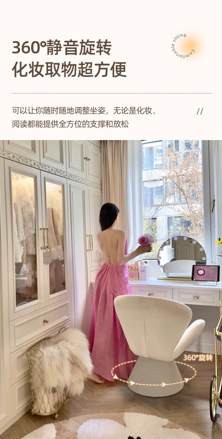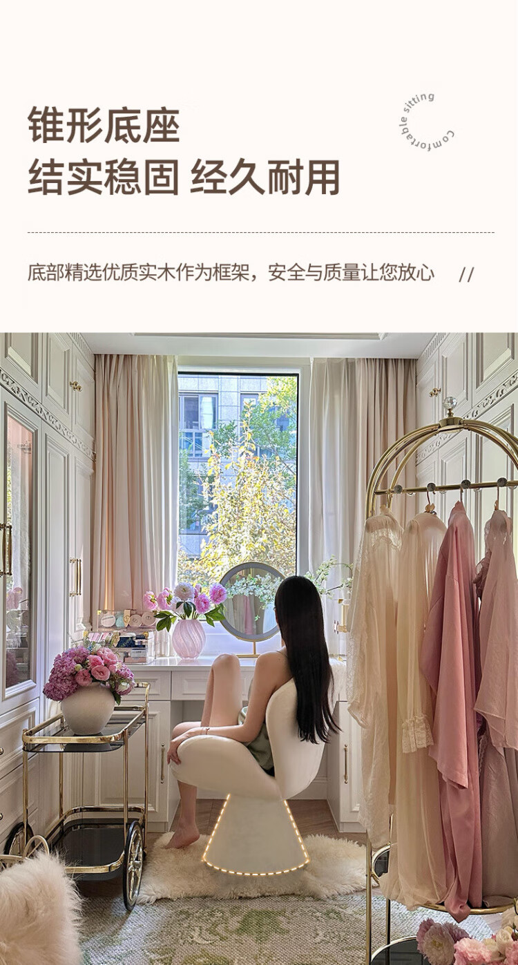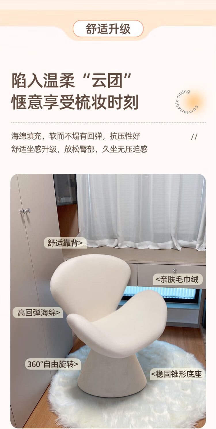 Menile cream style makeup stool Internet celebrity dressing stool home bedroom dressing table chair designer rotatable creative shell chair off-white skin-friendly towel velvet