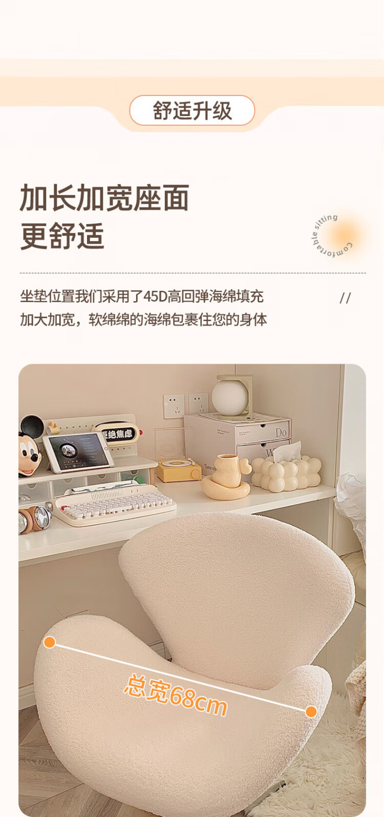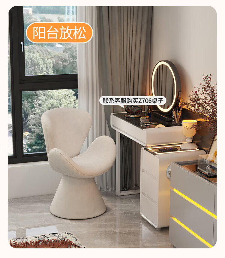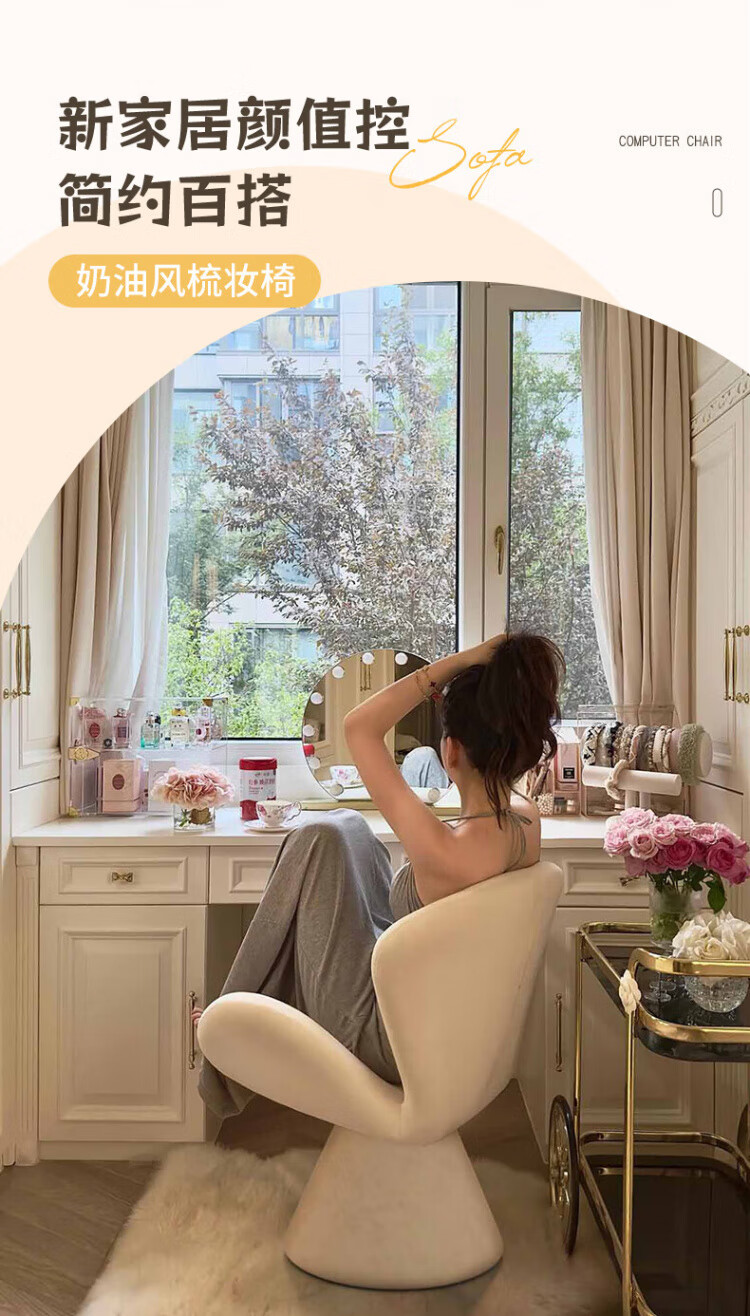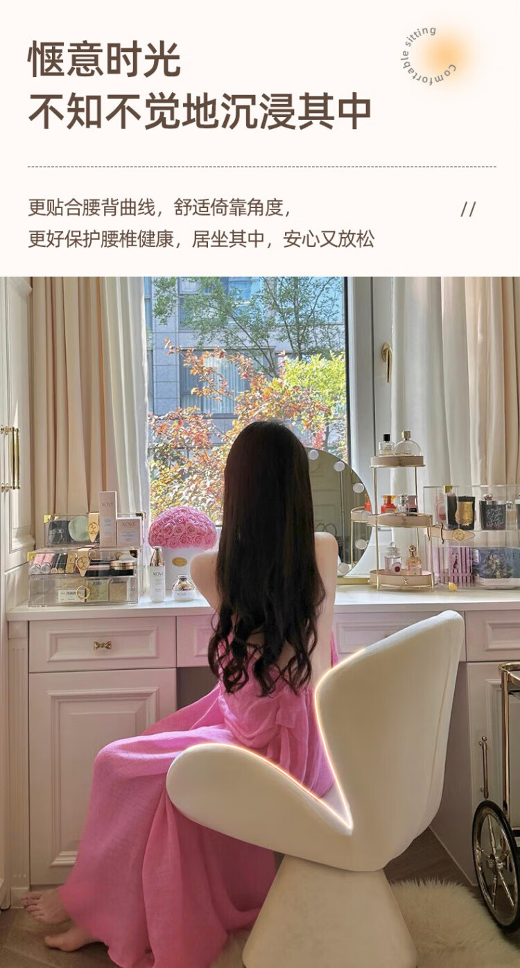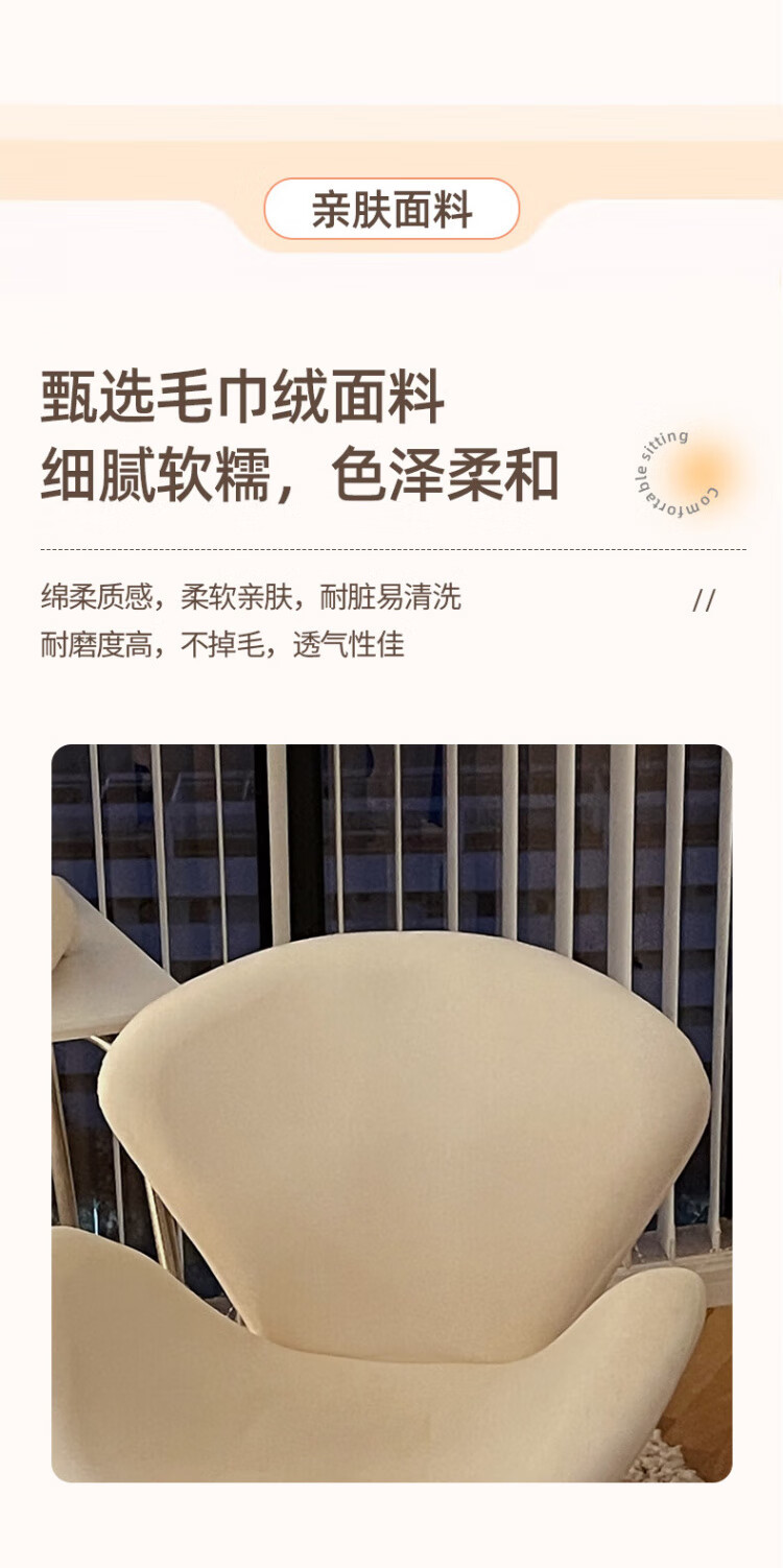 Menile cream style makeup stool Internet celebrity dressing stool home bedroom dressing table chair designer rotatable creative shell chair off-white skin-friendly towel velvet