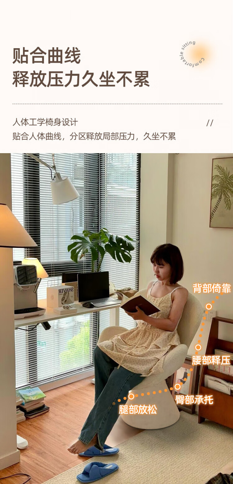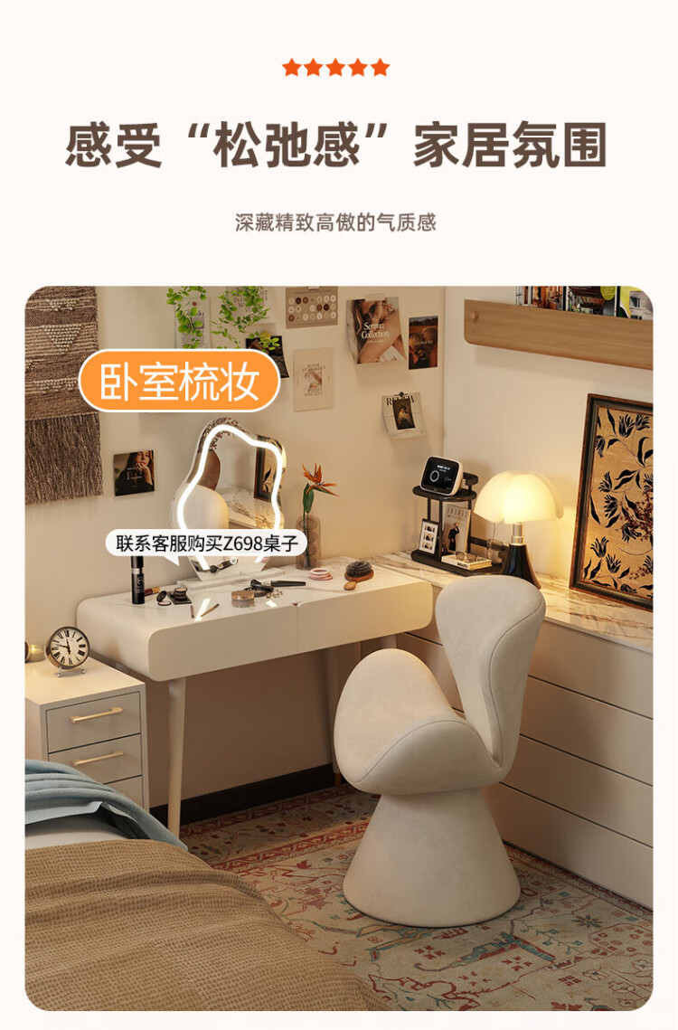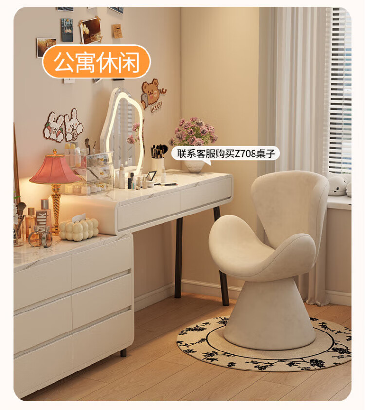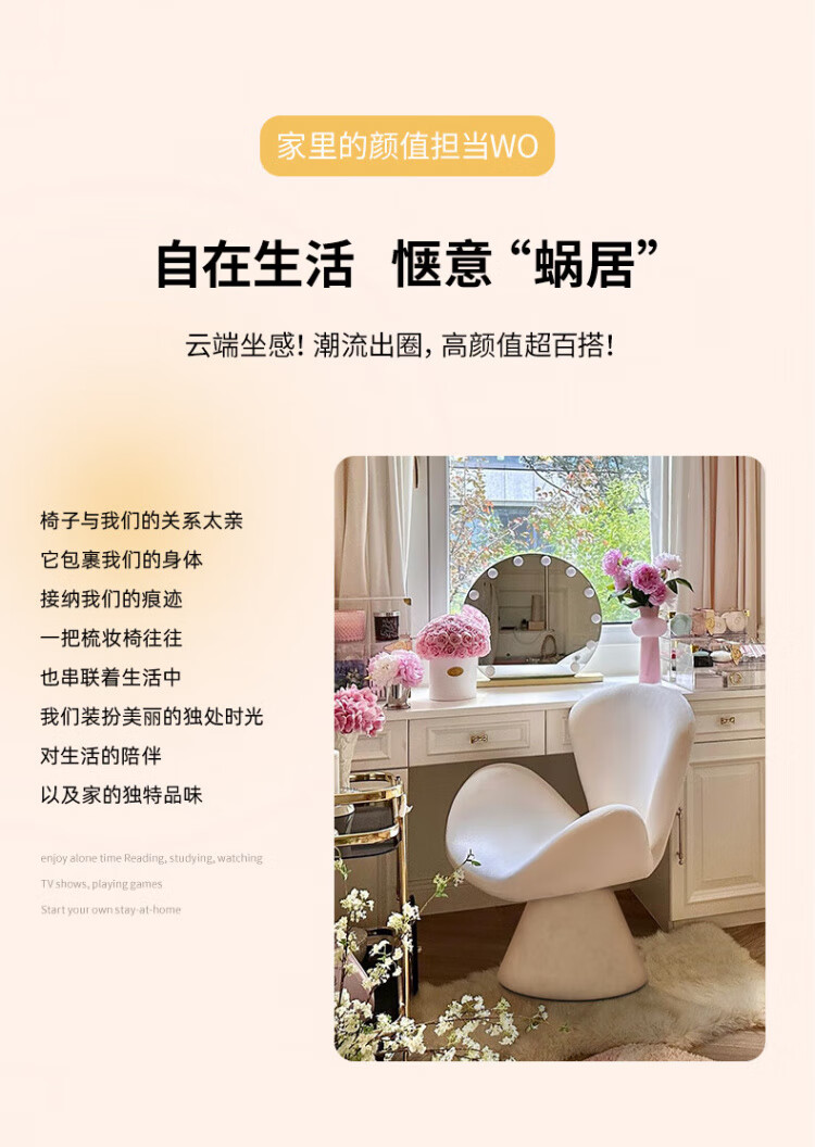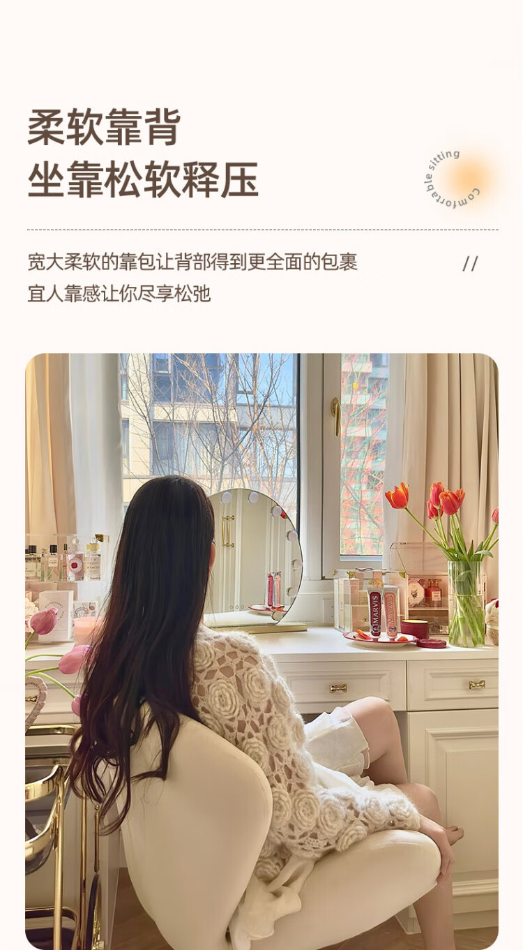 Menile cream style makeup stool Internet celebrity dressing stool home bedroom dressing table chair designer rotatable creative shell chair off-white skin-friendly towel velvet