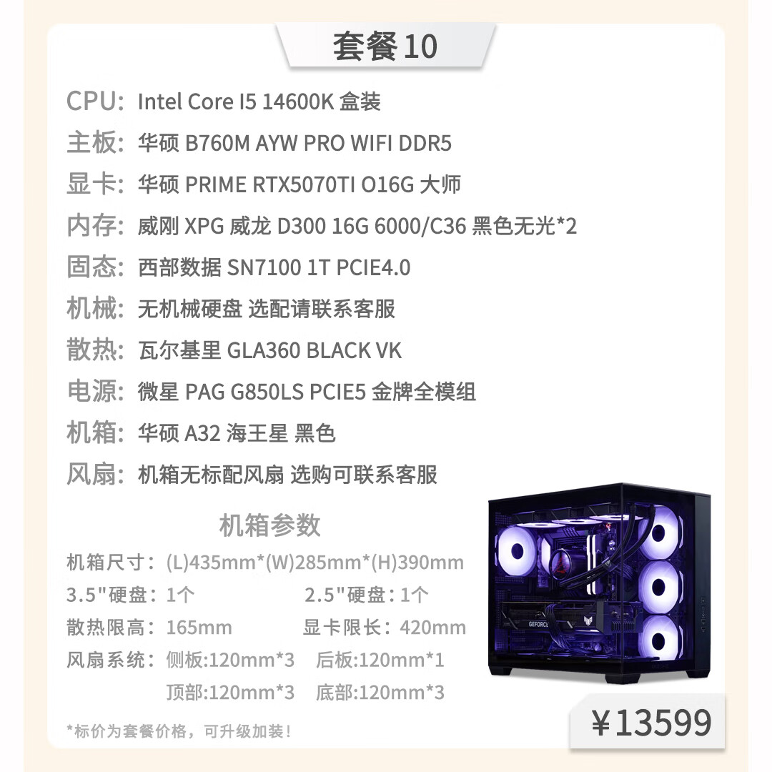 ASUS hardware tea talk Intel Core Ultra7 265K independent display ASUS RTX5070TI card game live broadcast design and assembly computer host desktop DIY complete machine package three 12600KF+RTX5060