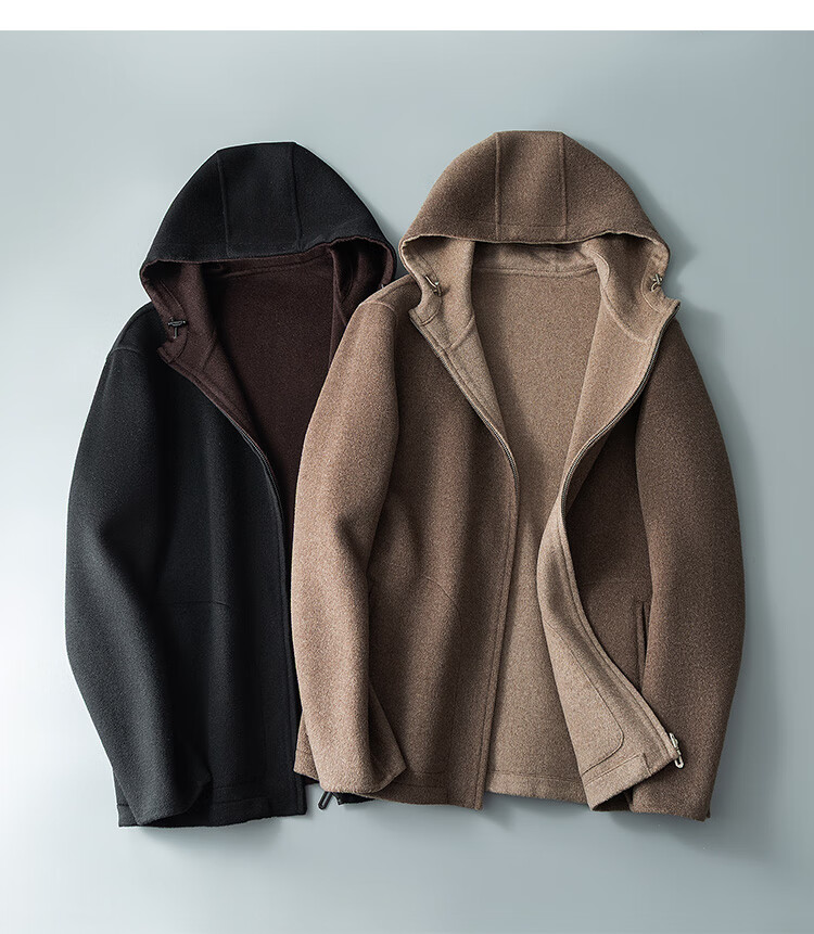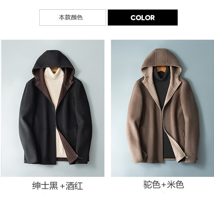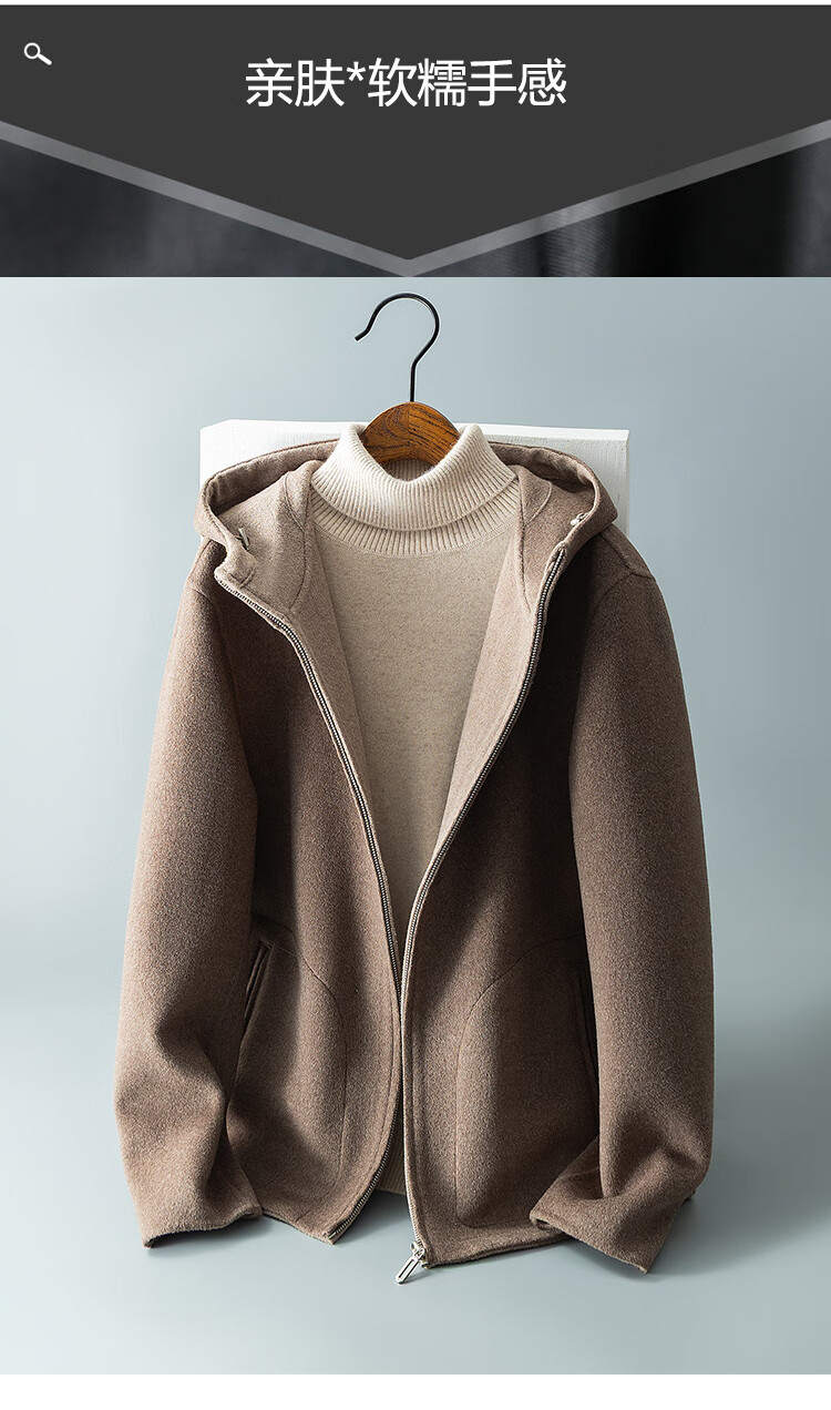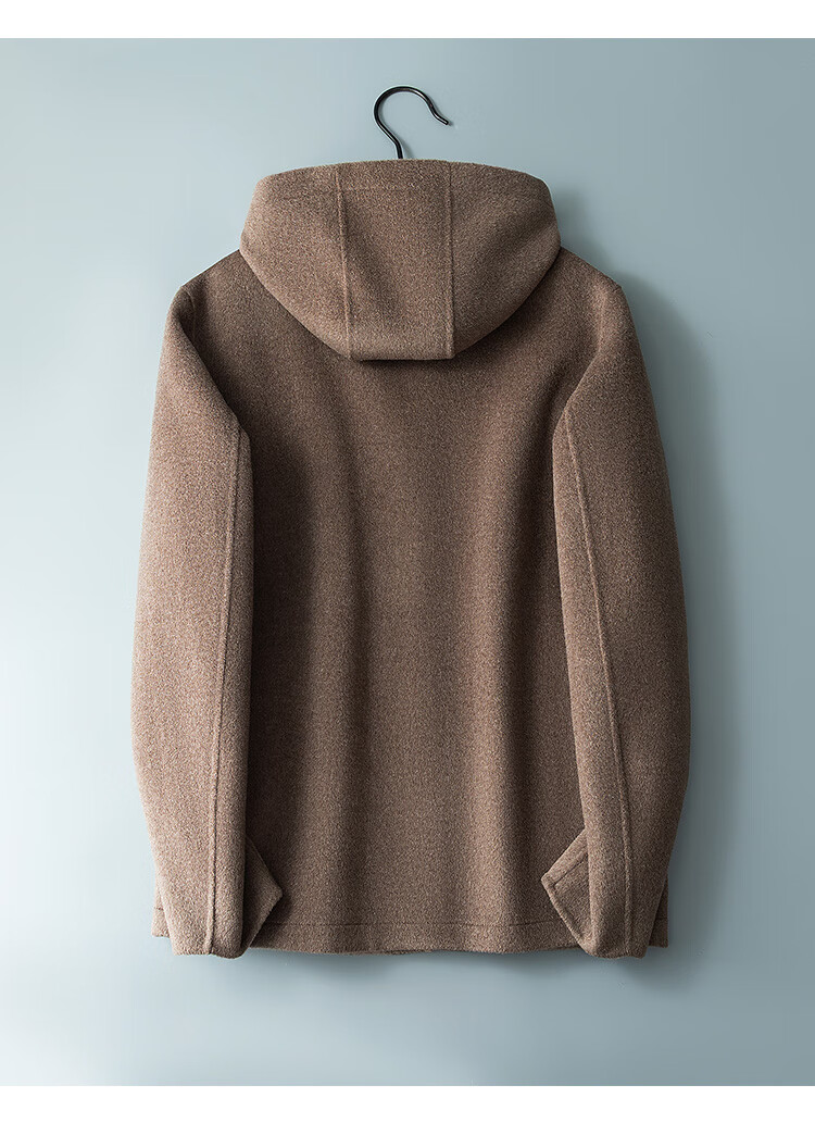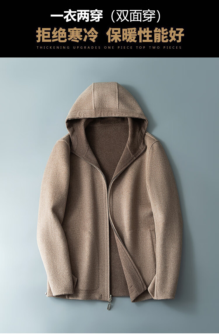 DK reversible 100% wool short coat men's reversible woolen coat hooded woolen jacket autumn and winter contrast color versatile camel+beige M (170) suitable for 100-130Jin Jin equals 0.5 kg
