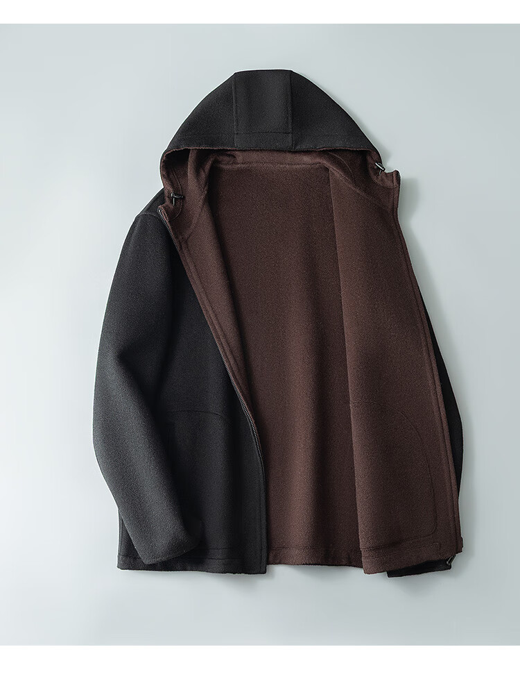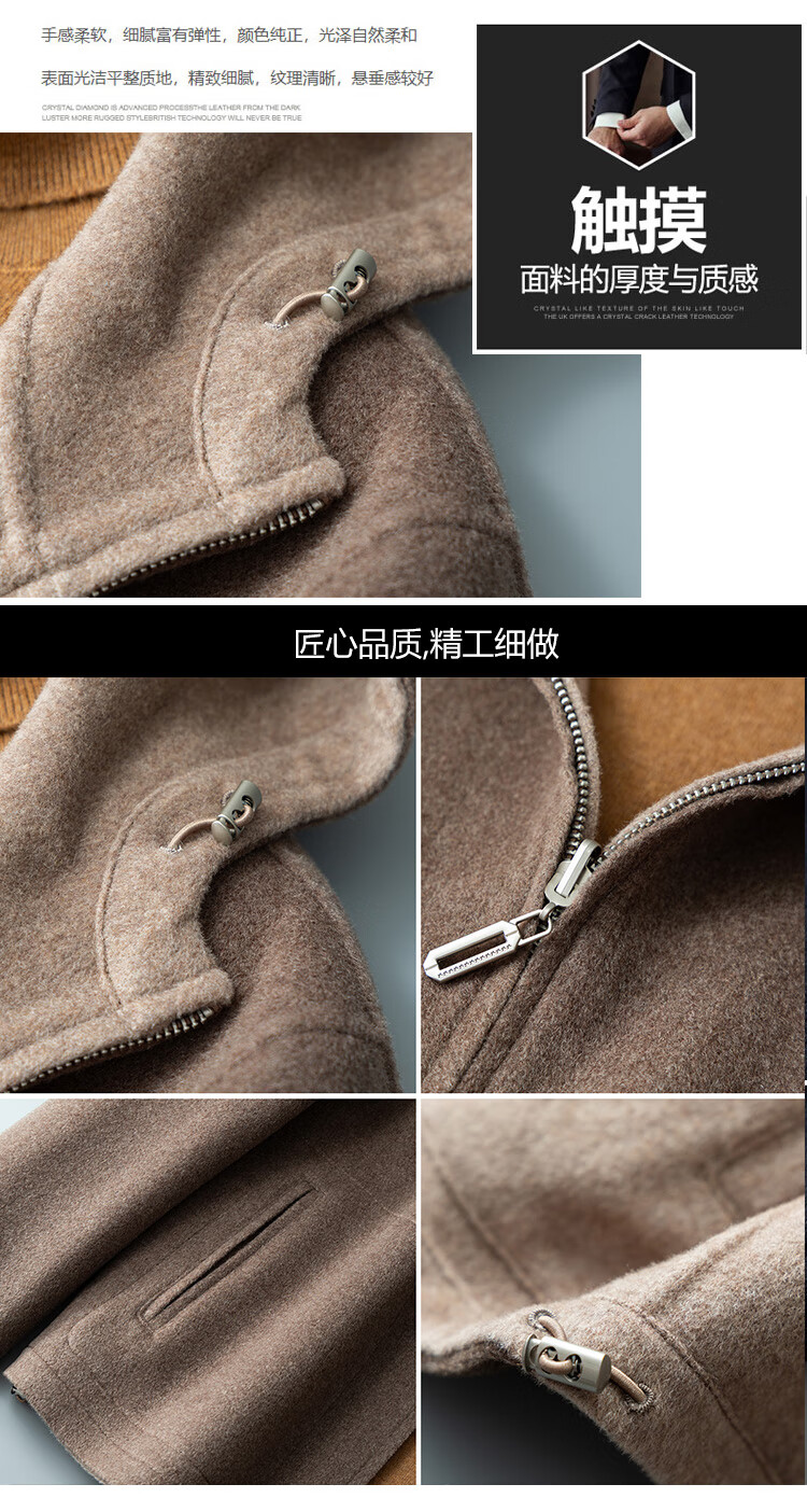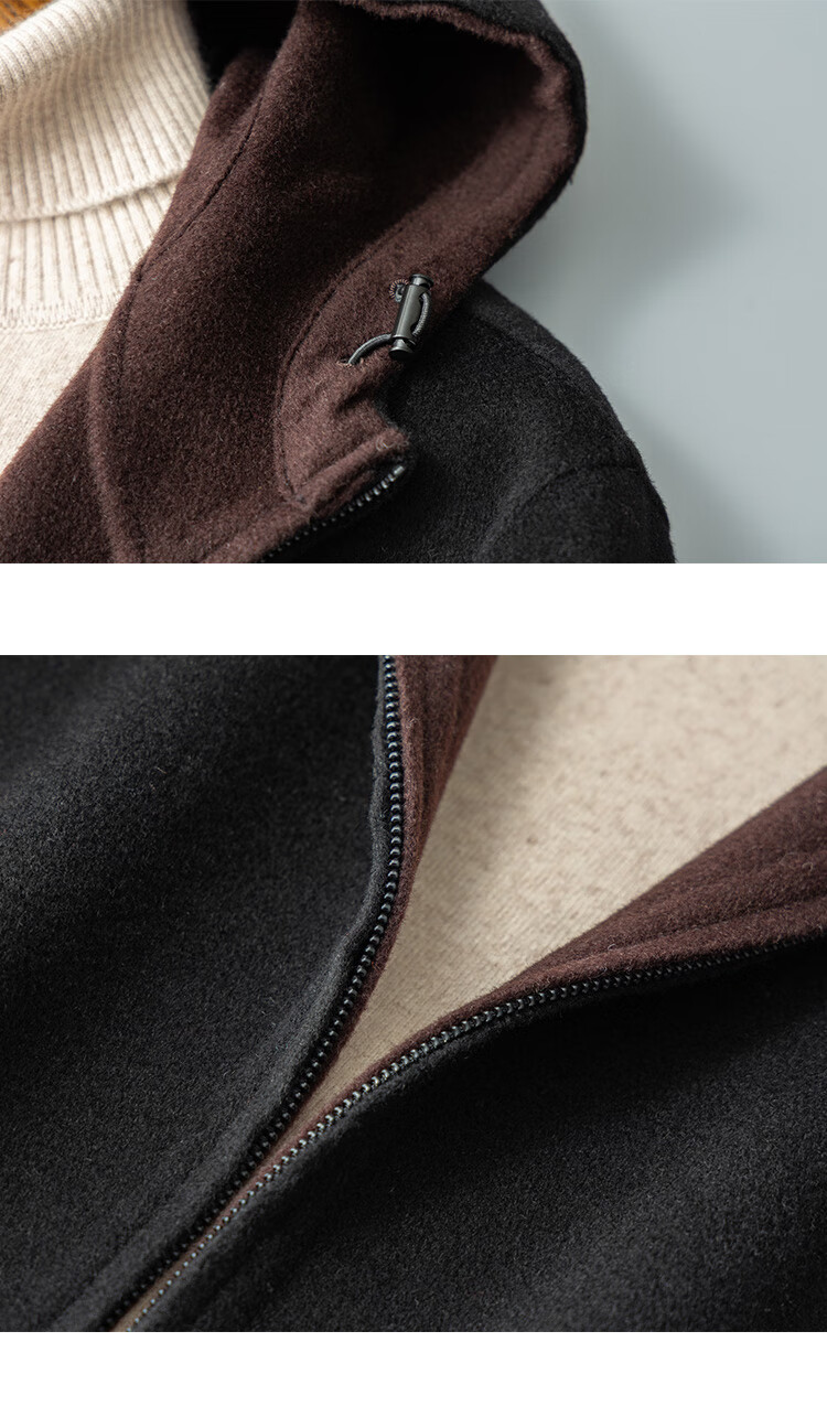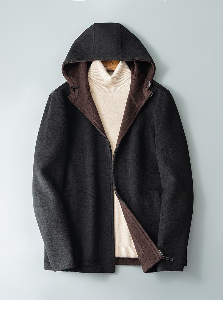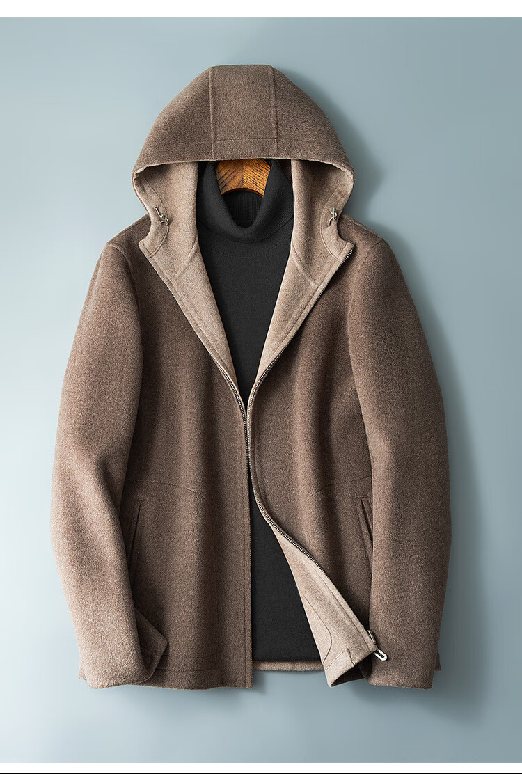 DK reversible 100% wool short coat men's reversible woolen coat hooded woolen jacket autumn and winter contrast color versatile camel+beige M (170) suitable for 100-130Jin Jin equals 0.5 kg