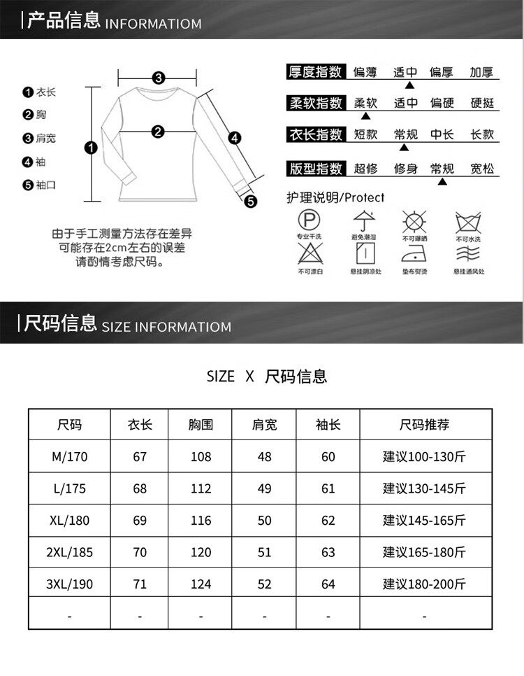 China (cm) 165 / 88-90 170 / 96-98 175 / 108-110 180 / 118-122 185 / 126-130