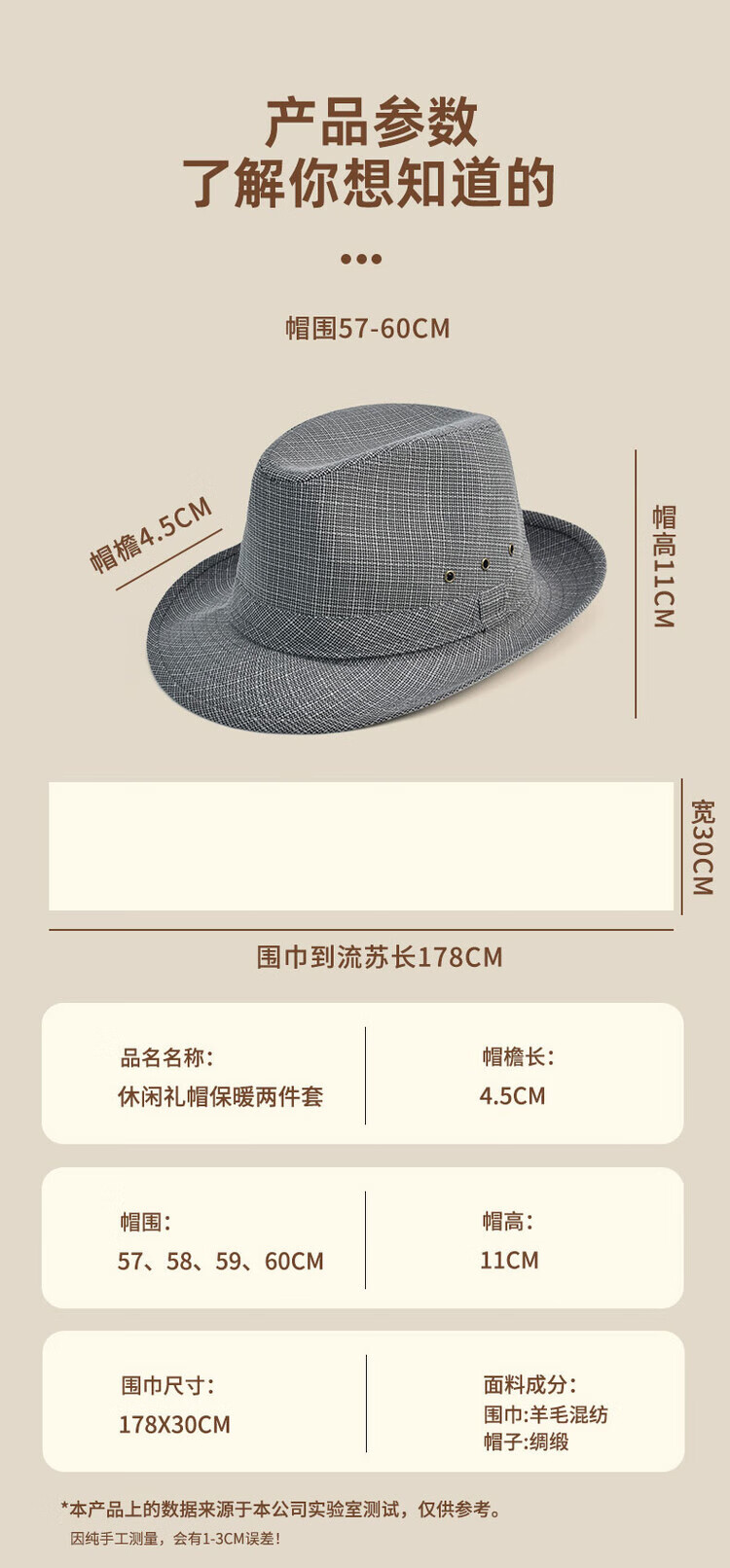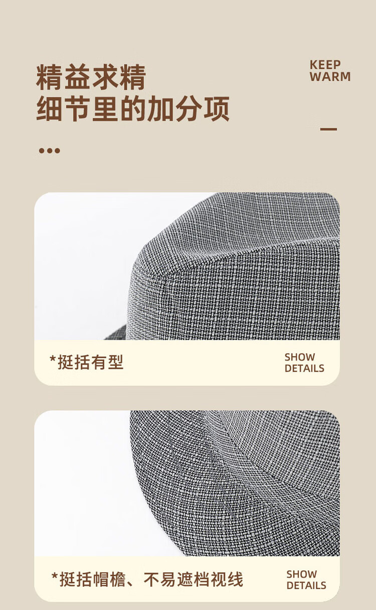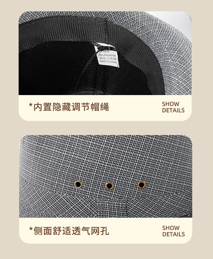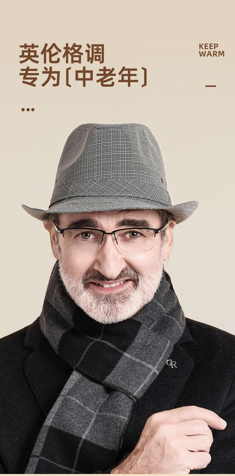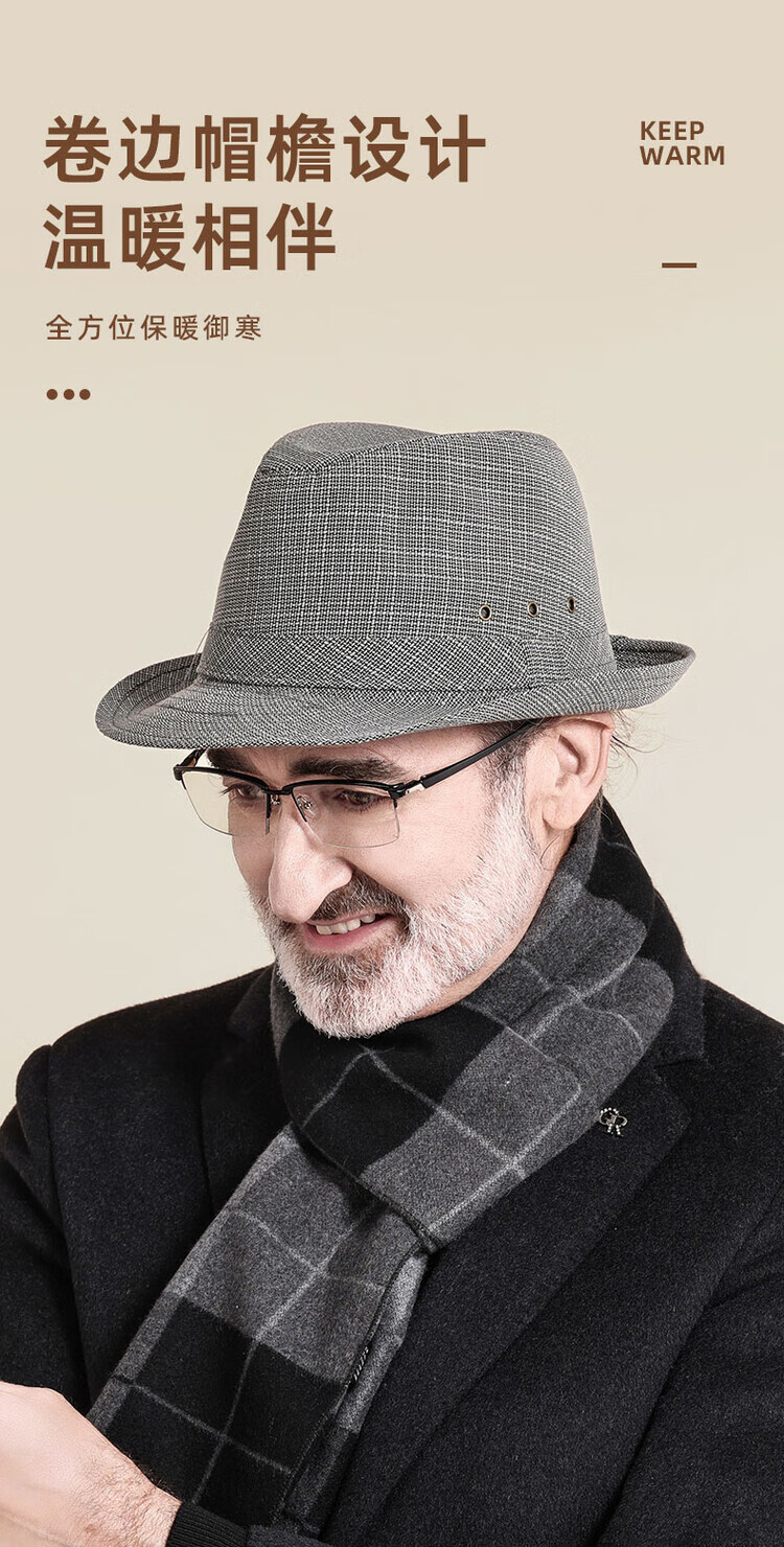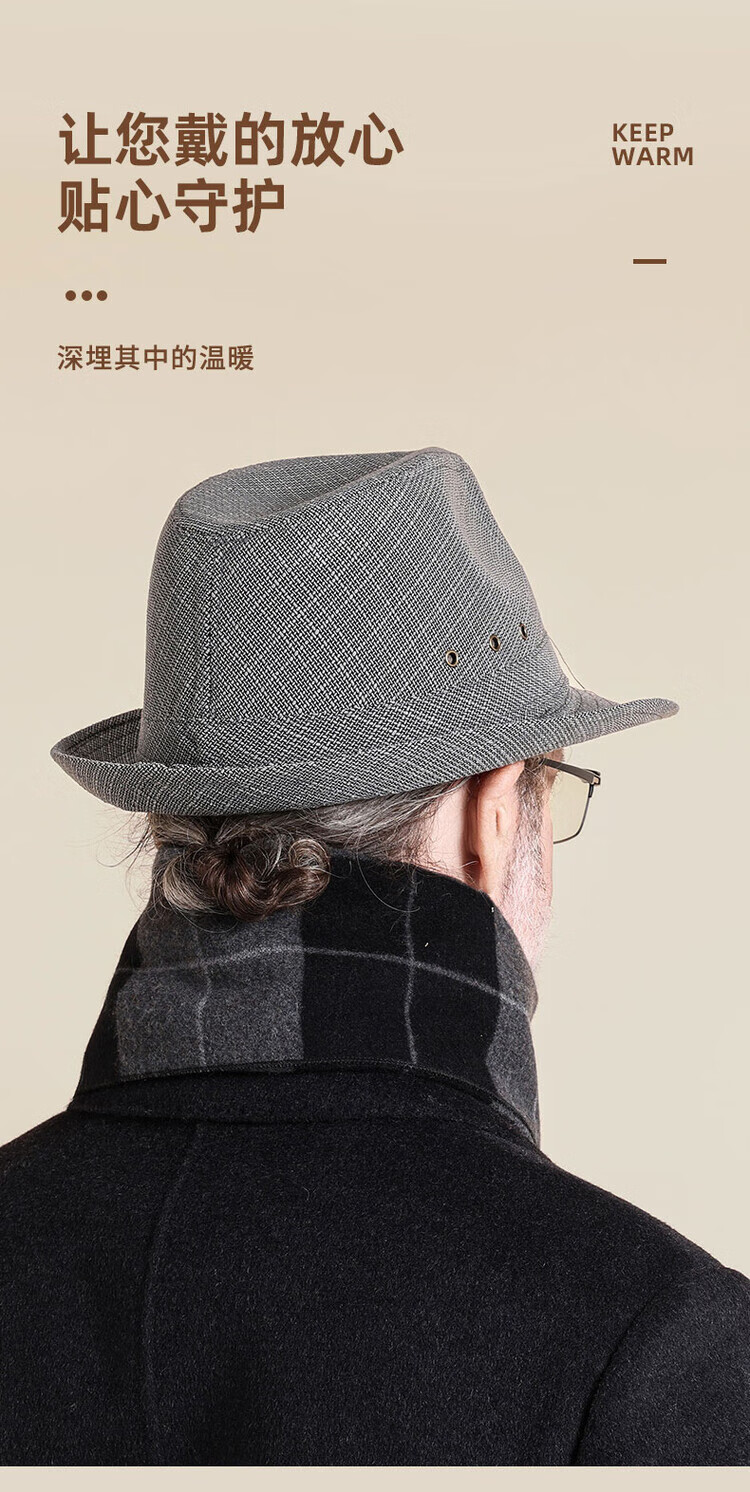 QIPEIER Dad Hat Men's 2025 Autumn and Winter New Middle-aged and Elderly Top Hat Grandpa Fashion Retro British Jazz Hat Hemp Dark Gray 57CM