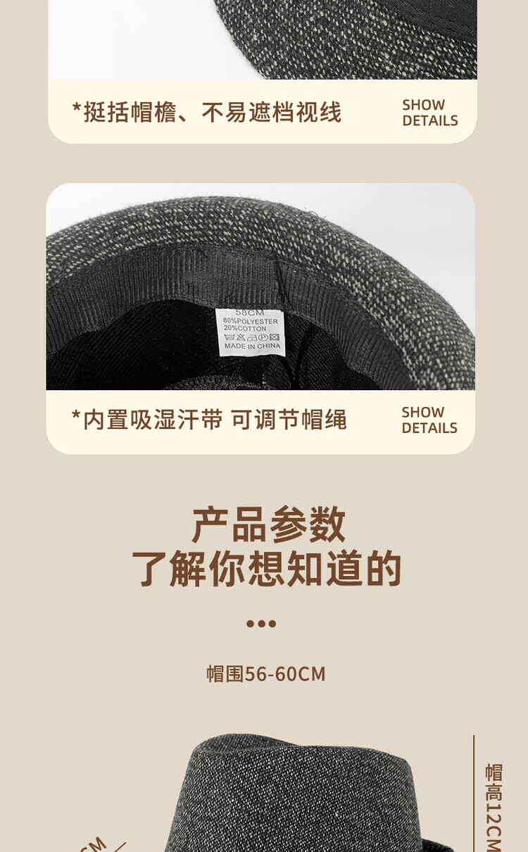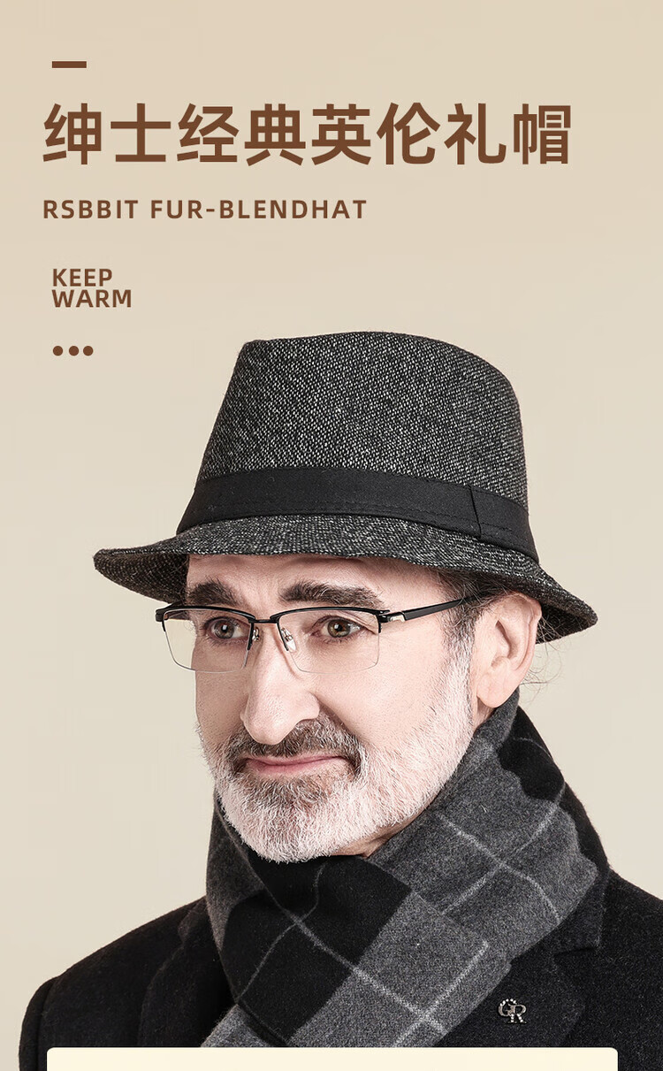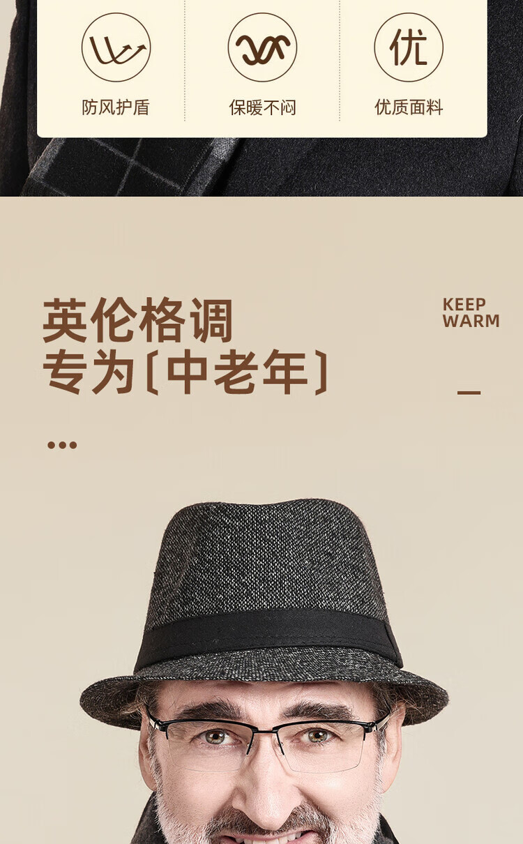 QIPEIER Dad Hat Autumn and Winter Windproof and Cold Warm Top Hat Elderly Grandpa British Retro Casual Gentleman Hat Black One Size (56-58CM)