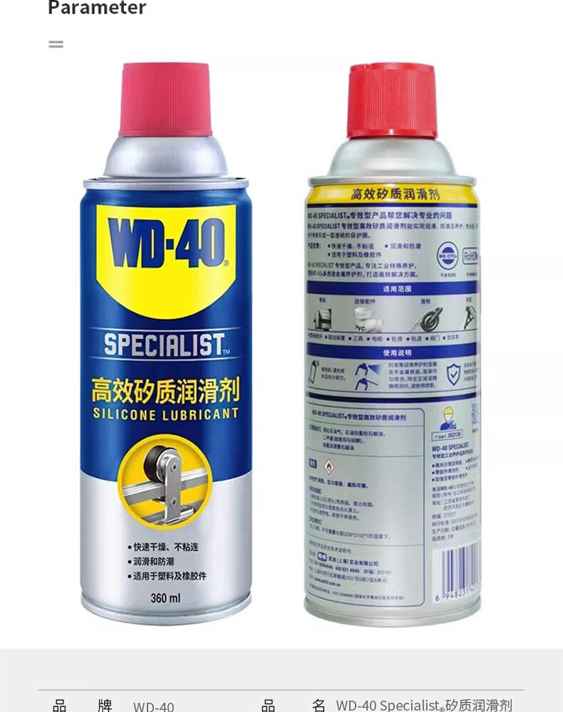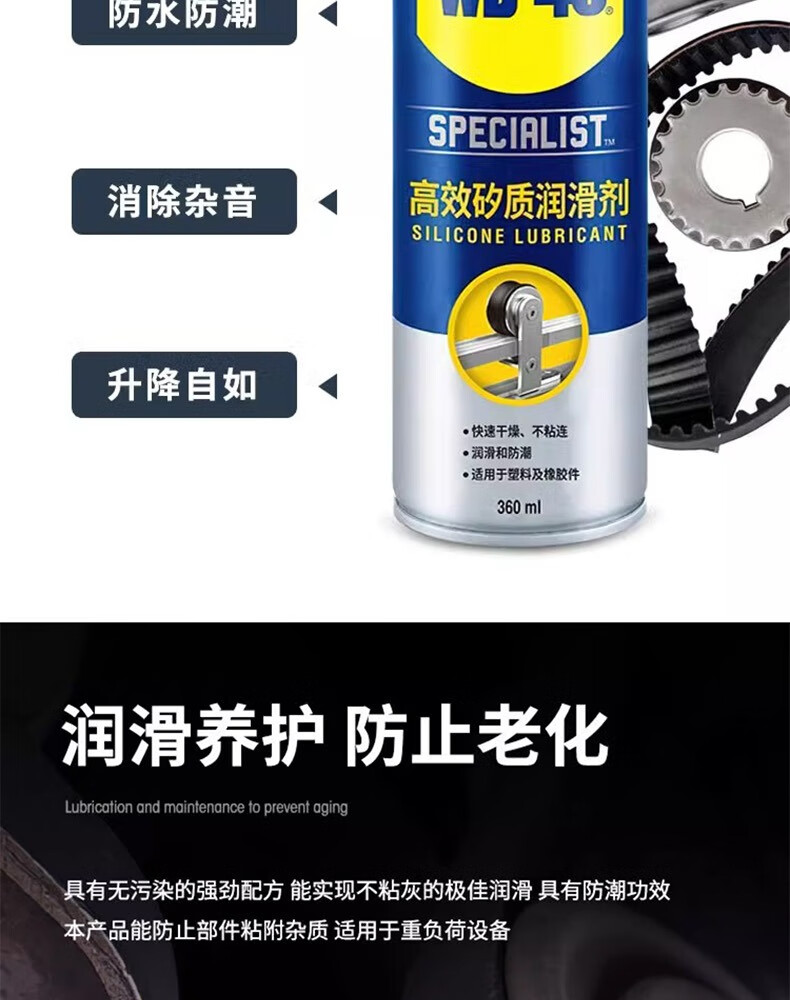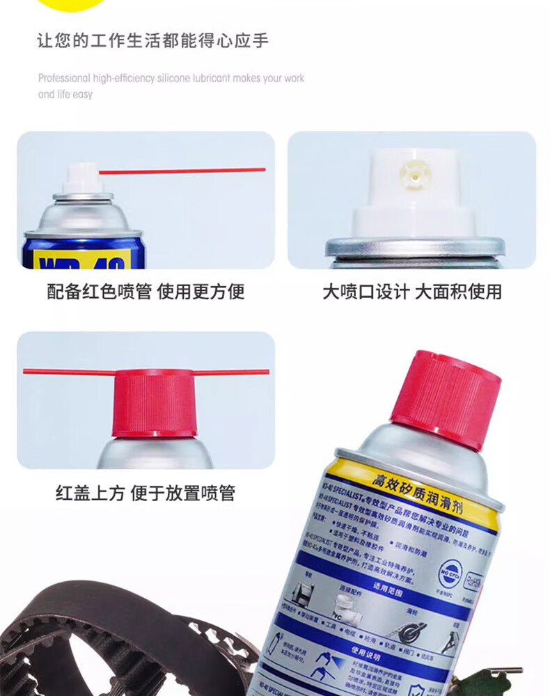 WD-40 Special-purpose high-efficiency silicone lubricant, plastic and rubber parts linkage device, tool, cable, slide, track, valve, lock, maintenance, car belt strip, aging plastic lubricant spray, high-efficiency silicone lubricant 852136 1 bottle