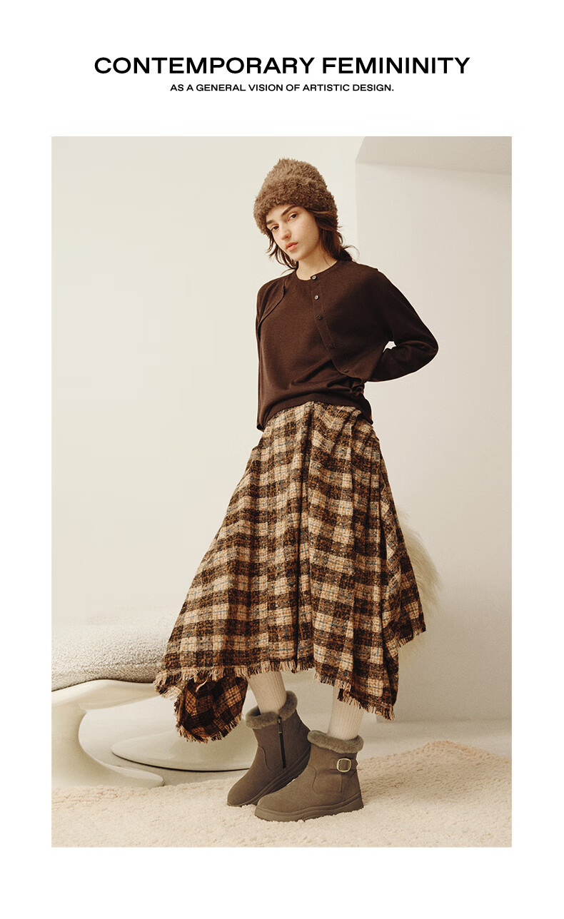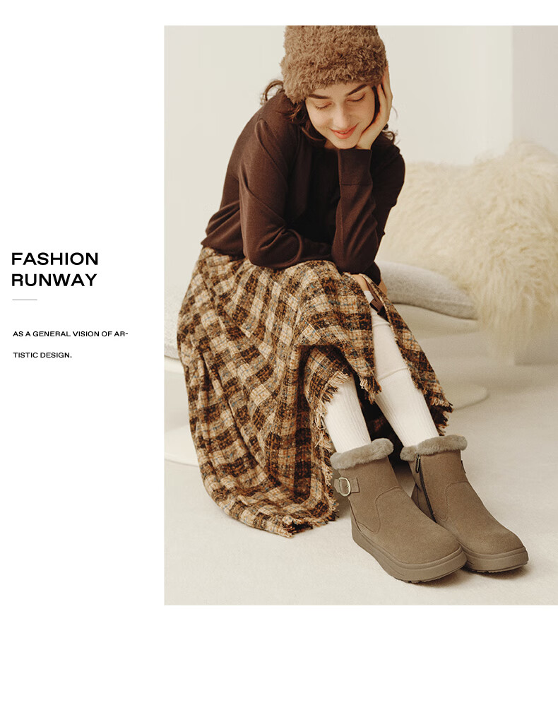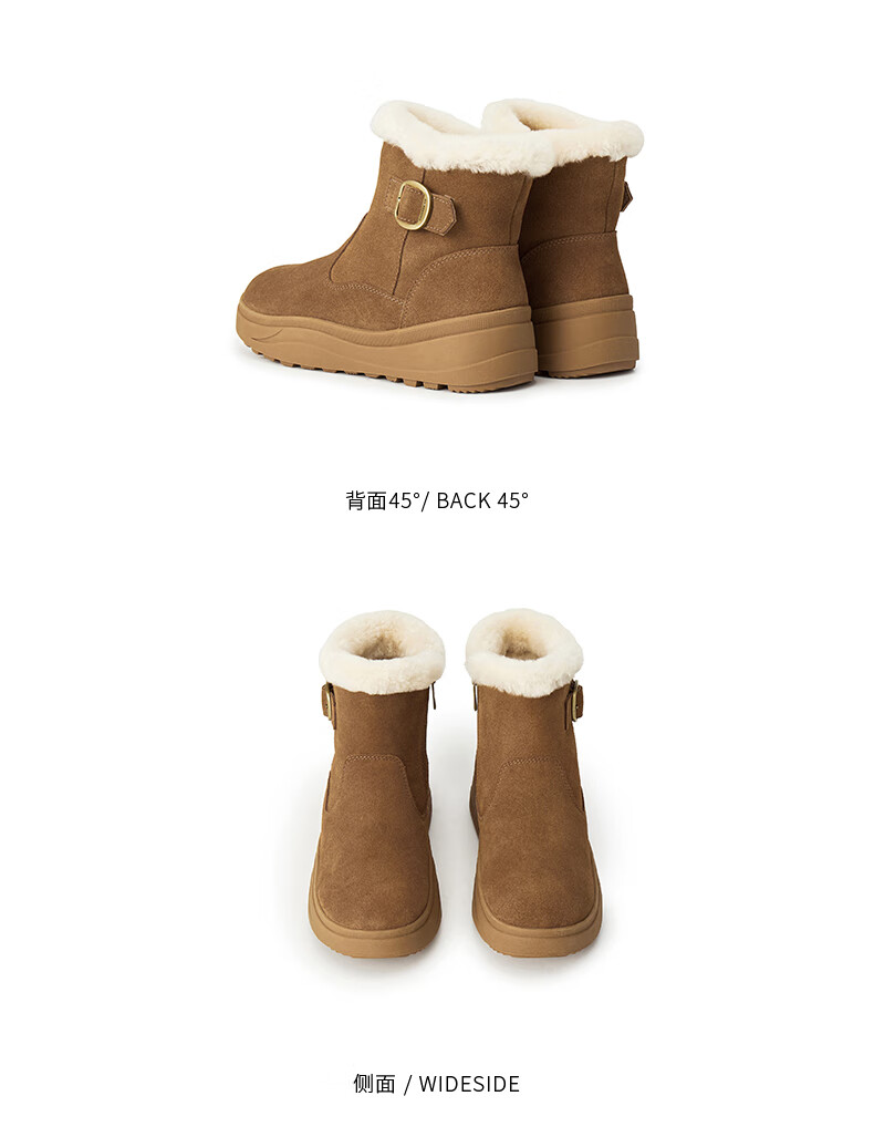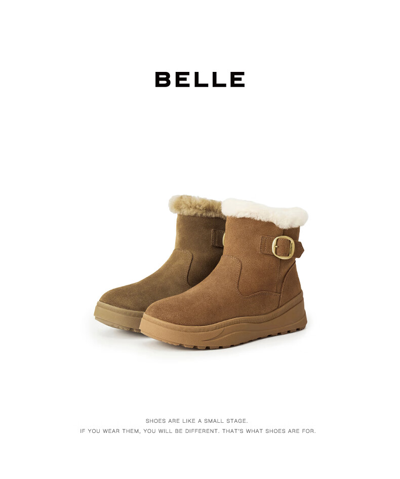 Belle Thick Sole Heightening Snow Boots Women's 2025 Winter New Shopping Mall Same Style Furry Warm Short Boots E6W1DDD5 Brown 37
