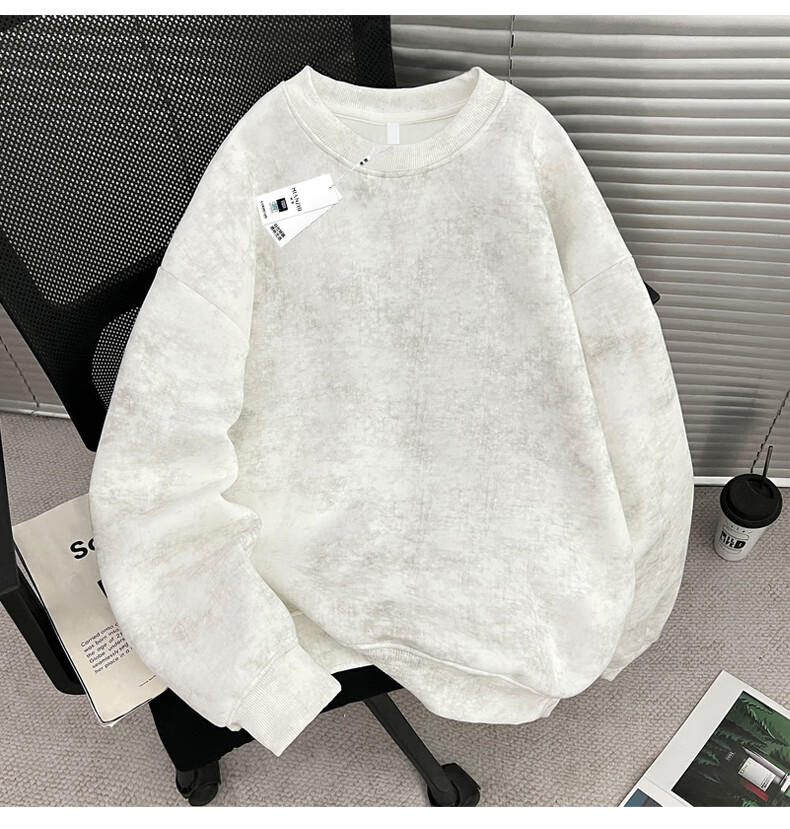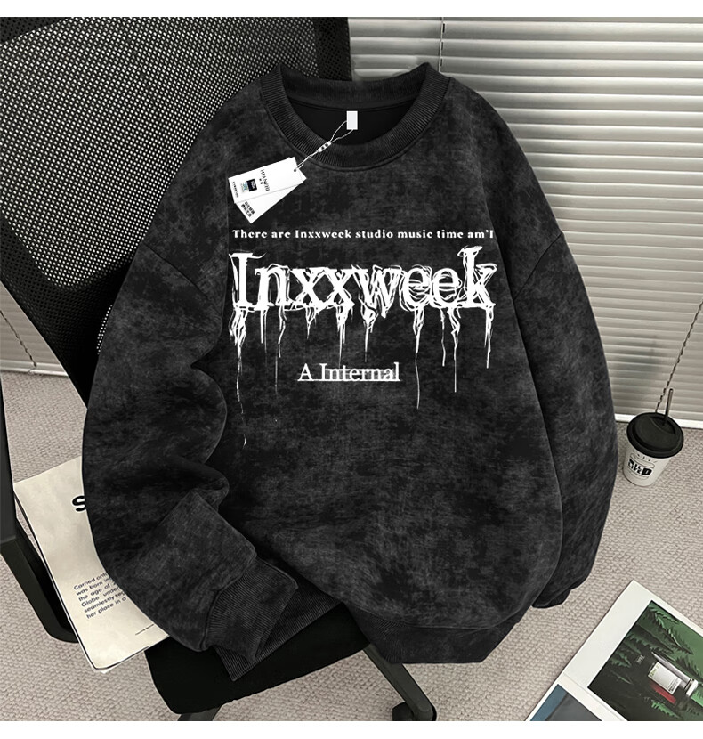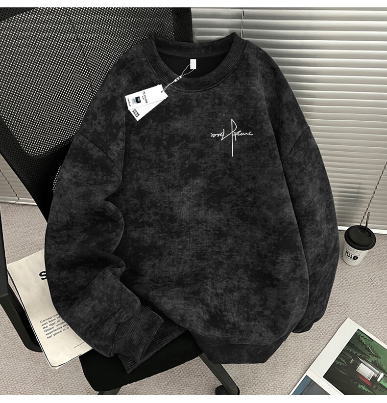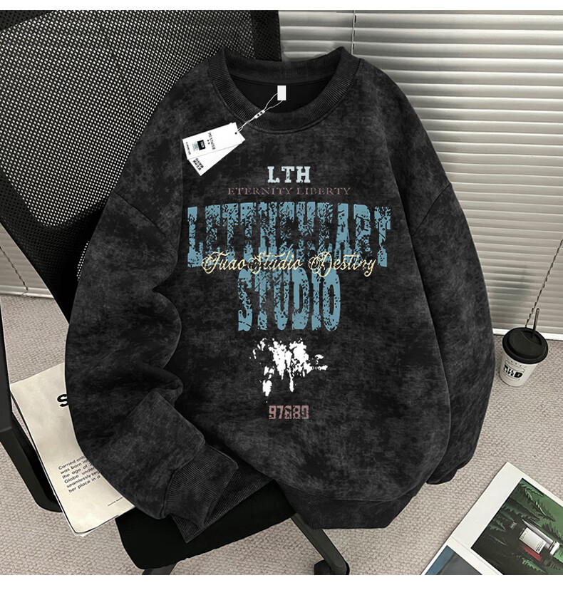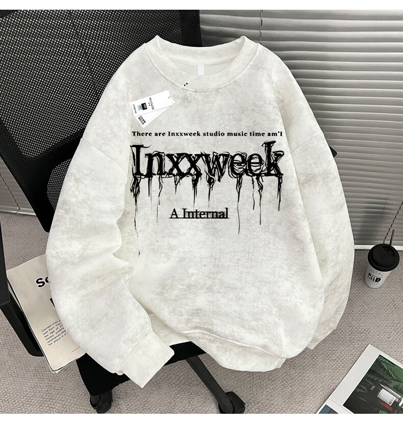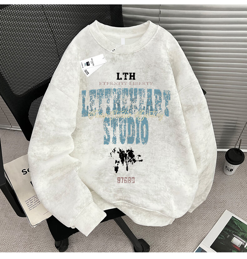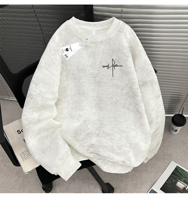 Cotton American tie-dye heavyweight sweatshirt for men 2025 autumn and winter new style plus velvet loose long-sleeved T-shirt top base layer white (ZYL03 black letter) L 115-130Jin Jin equals 0.5 kg