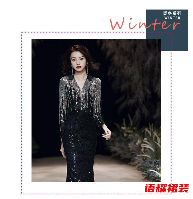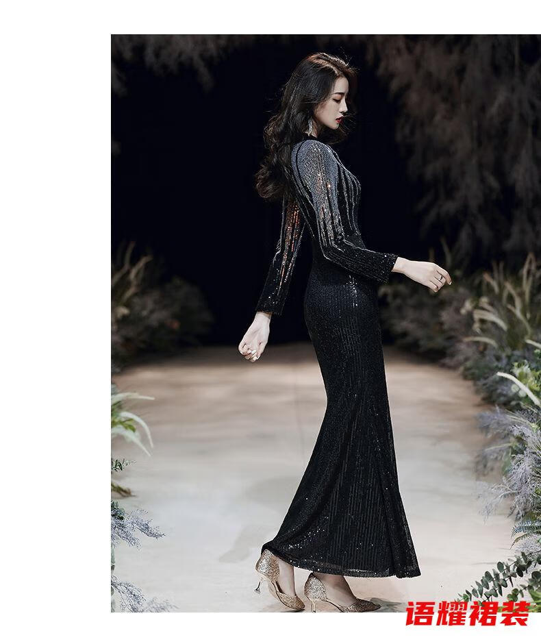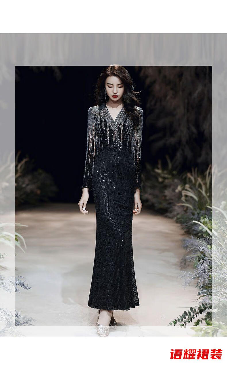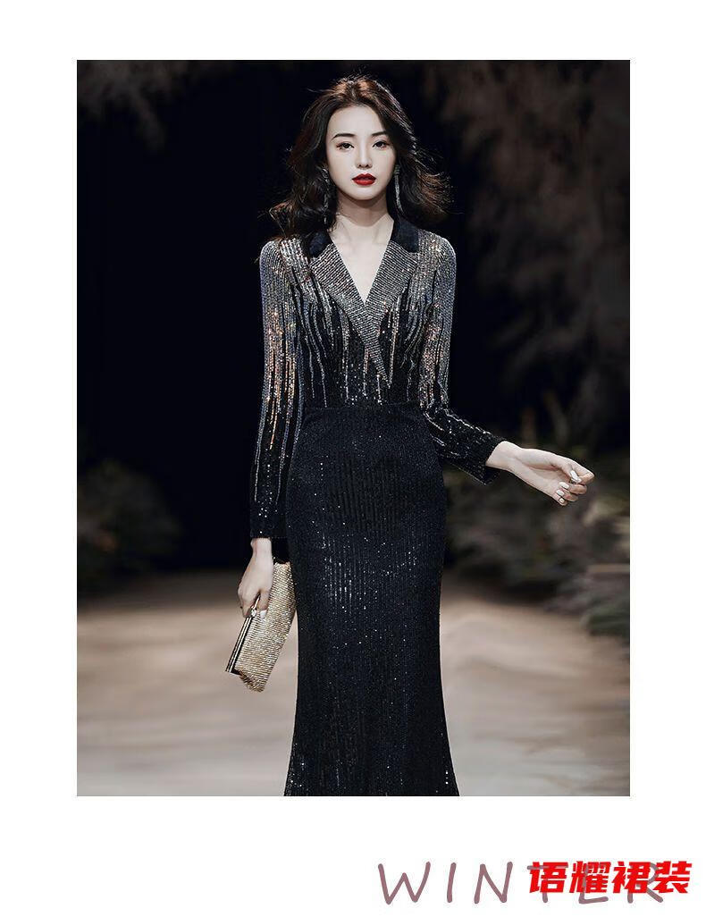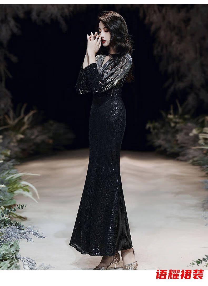 Feng Xiaowei evening dress women's new high-end elegant slimming fishtail skirt annual meeting banquet wearable elegant black L