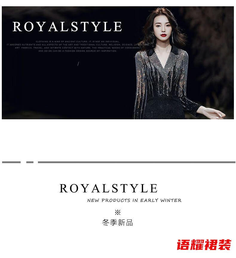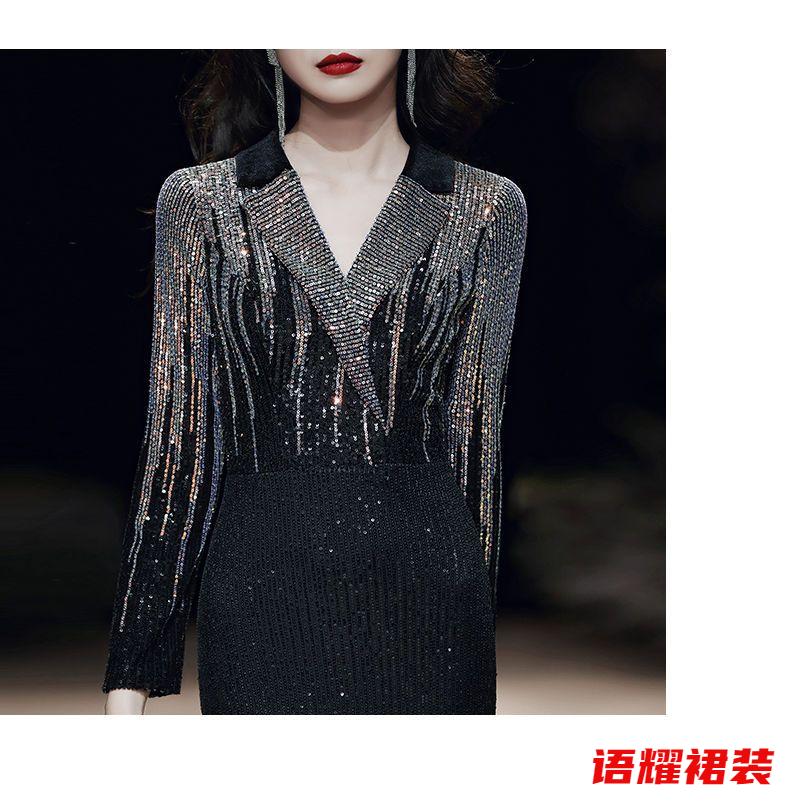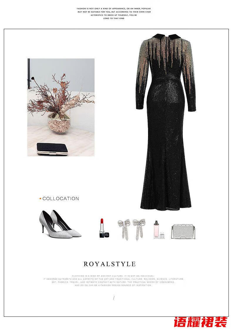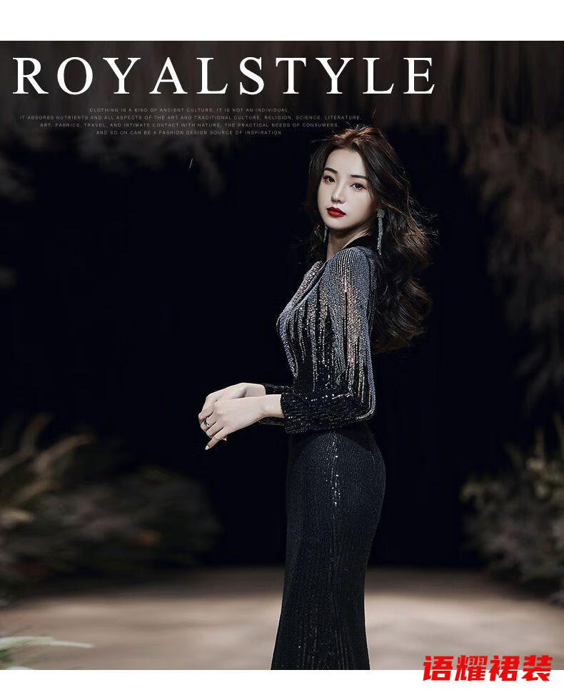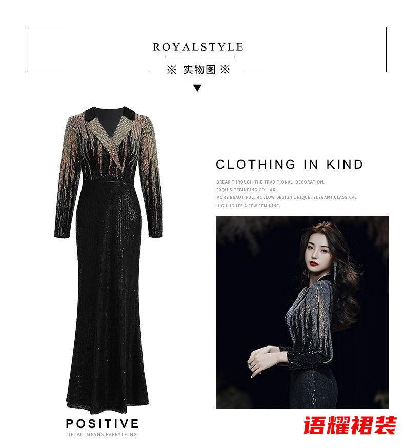 Feng Xiaowei evening dress women's new high-end elegant slimming fishtail skirt annual meeting banquet wearable elegant black L