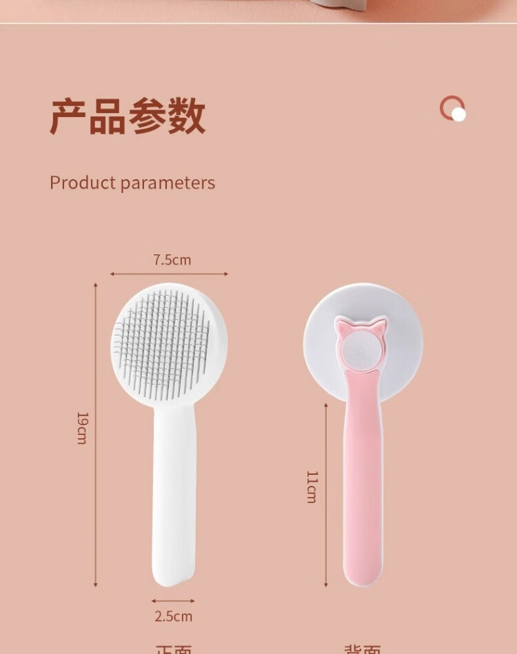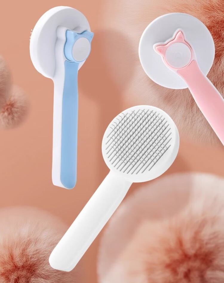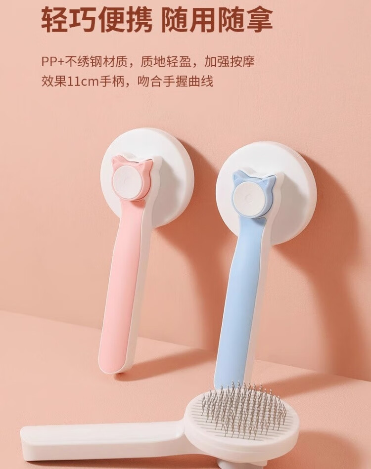 Junkiss Cat Hair Comb Long Hair Brush Cat Hair Removal Dog Hair Comb Brush Massage Pet Cat Hair Artifact Remover Supplies Peach Powder 19cm*7.5cm