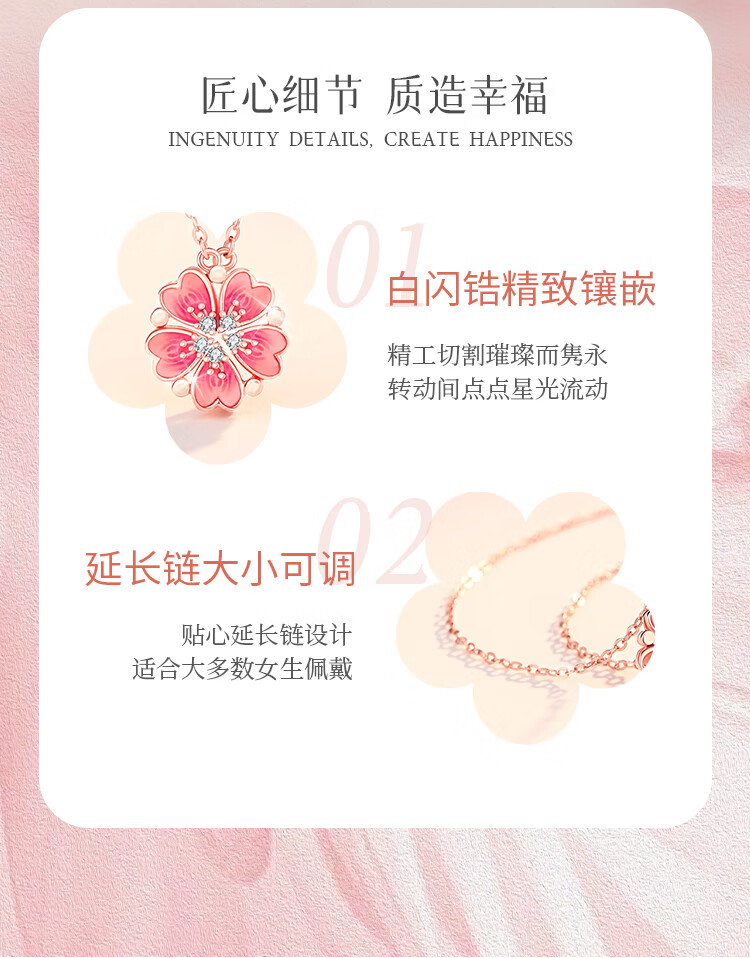 Gin Chie Swarovski zirconium 999 sterling silver necklace for women 2025 new light luxury pendant birthday gift for girlfriend Two-wear peach blossom necklace inlaid with Swarovski zirconium + seven warehouse delivery/next day delivery Valentine's Day girl gift/with jewelry certificate/high-end rose gift box for wife